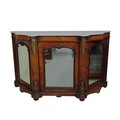 A WALNUT MARBLE TOP CREDENZA