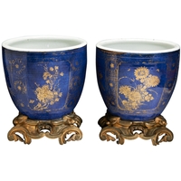 The decoration of these graceful lobed vases, incorporating bats and ruyi-heads is of the more curvilinear stylized manner, is similar to that found on the Qianlong mark and period vase sold at Sotheby's, Hong Kong, April 8, 2007, lot 708. For other examples incorporating angular kui-dragon scrolls, see the archaistic flask-form vase sold at Christie's, New York, March 28, 2006, lot 116, decorated with elaborate mirrored bands of kui-dragon scrolls to the neck, body and foot. For other examples of celadon-glazed vases with angular kui-dragon scrollwork in low relief, see the vases sold at Christie's, New York, March 20, 2014, lot 2181; Sotheby's, Hong Kong, April 8, 2009, lot 1652, and two similar bottle vases, sold Christie's, Hong Kong, April 8, 2011, lot 3018 and Christie's, New York, March 22, 2018, lot 771.