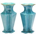 A RARE PAIR OF ROBINS-EGG GLAZED DOUBLE VASES