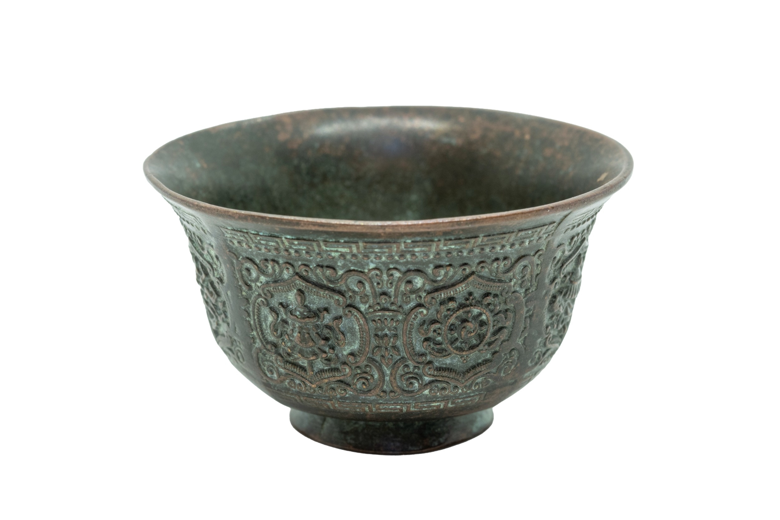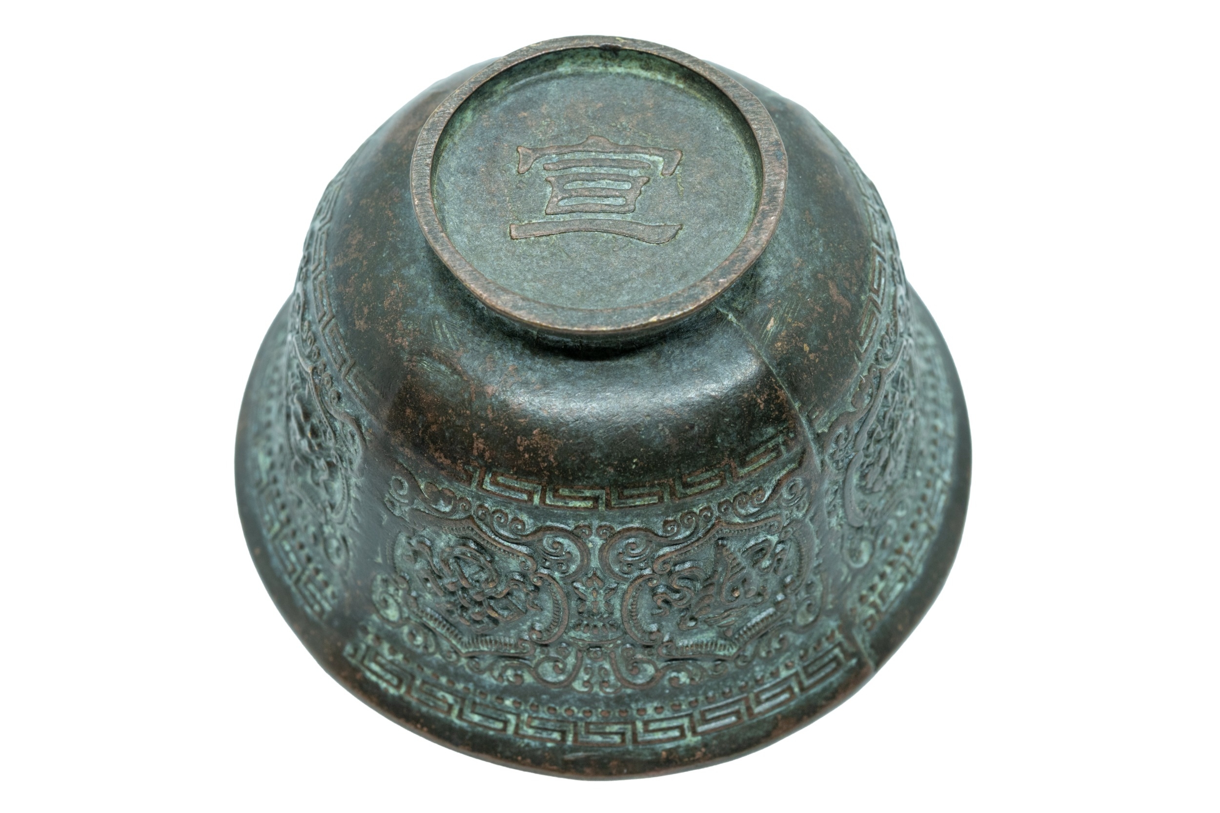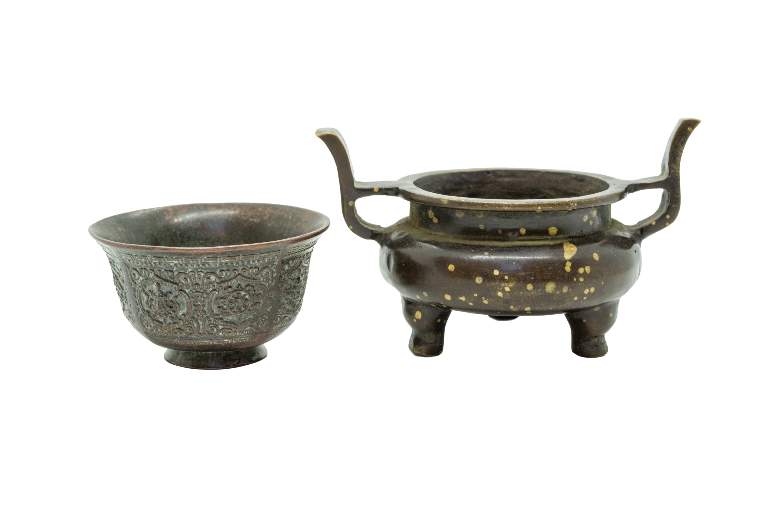 10cm wide; together with A SMALL CHINESE BRONZE BOWL, 20TH CENTURY, 6.5cm diam (2)