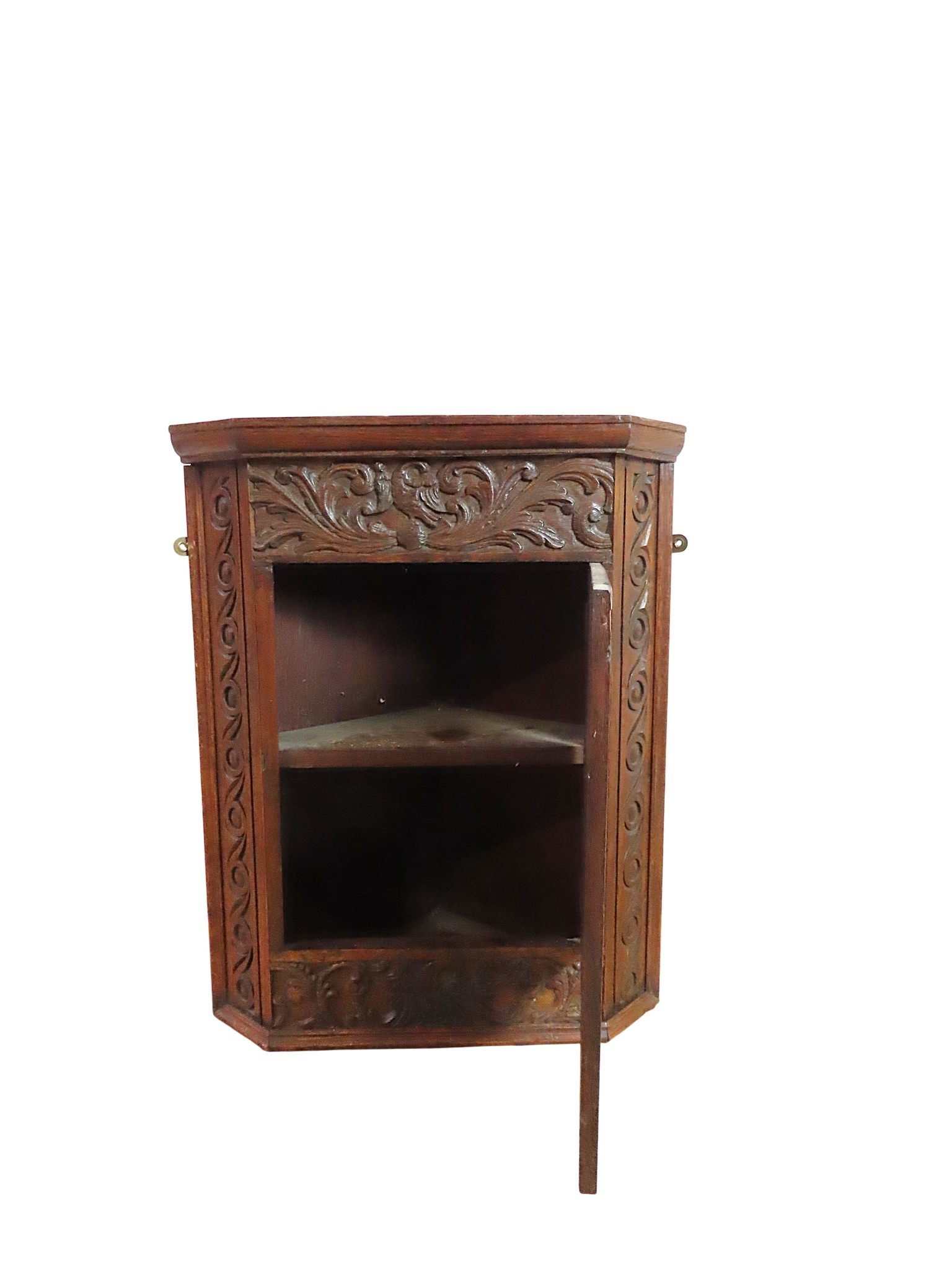 A SMALL OAK CORNER CUPBOARD