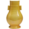 黄釉贯耳瓶 清 十八世纪