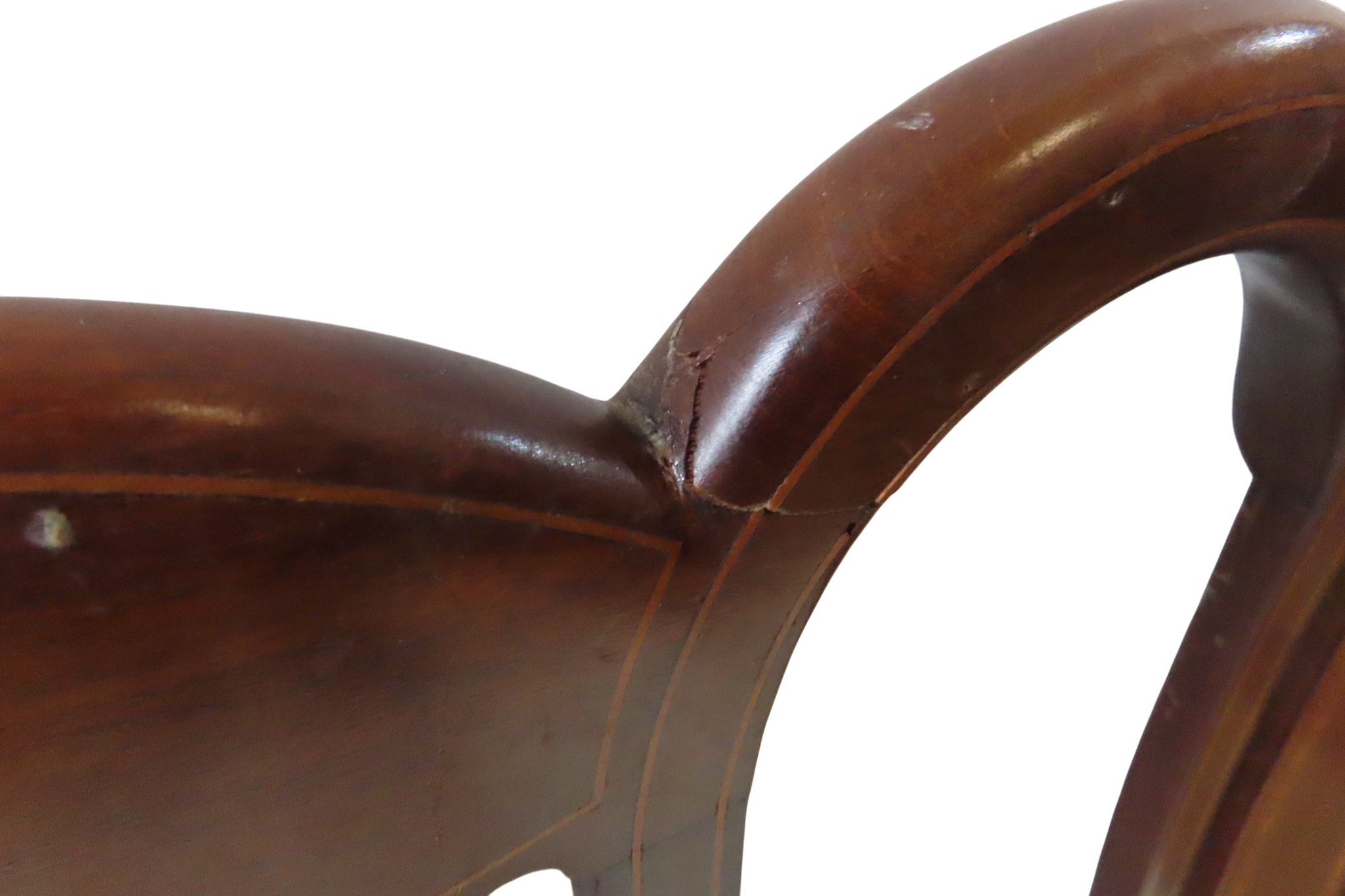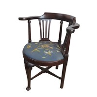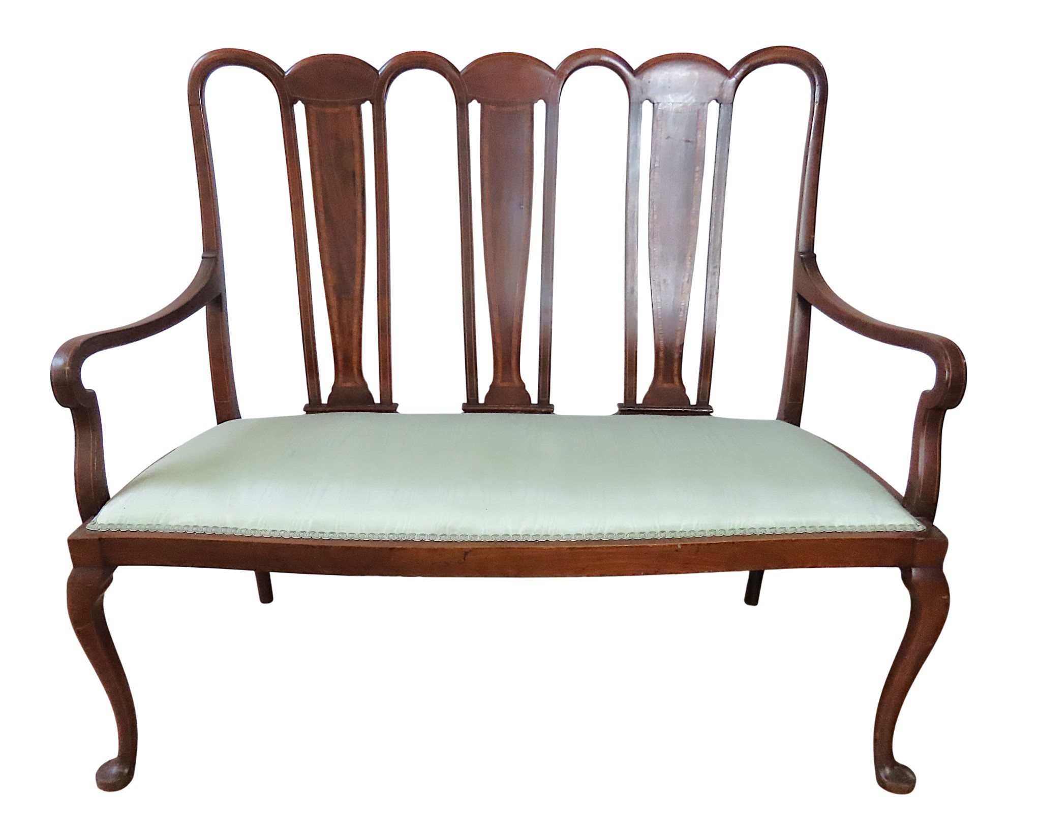 water silk covered seat panel flanked by scrolling arms, raised on cabriolet legs