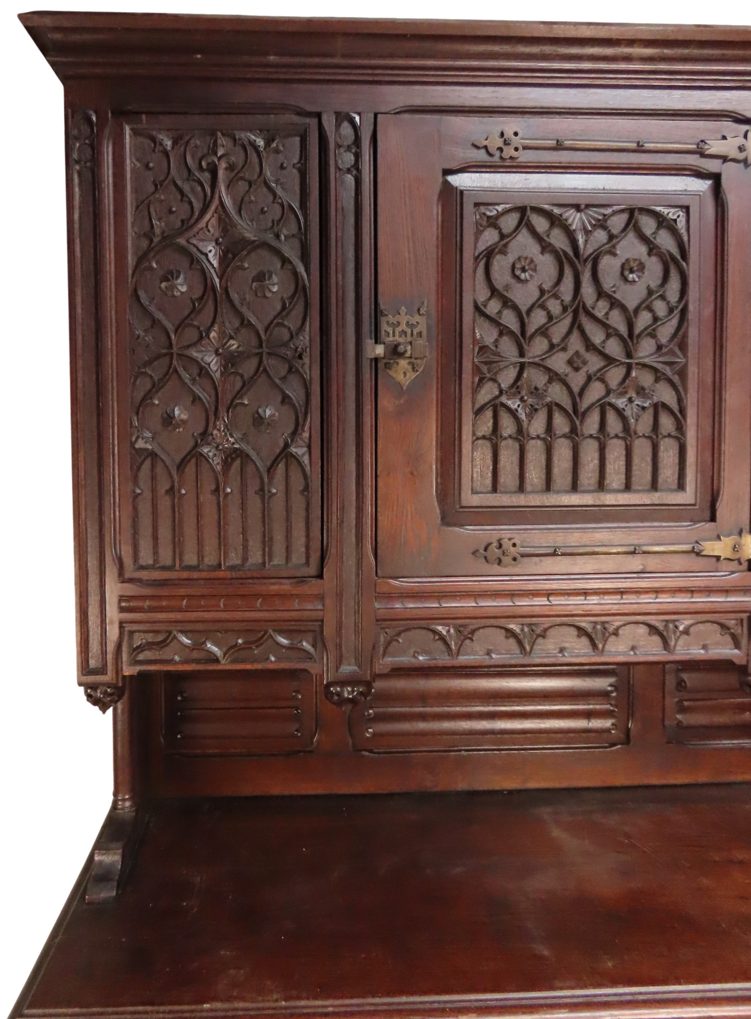 AN IMPRESSIVE OAK GOTHIC REVIVAL CABINET