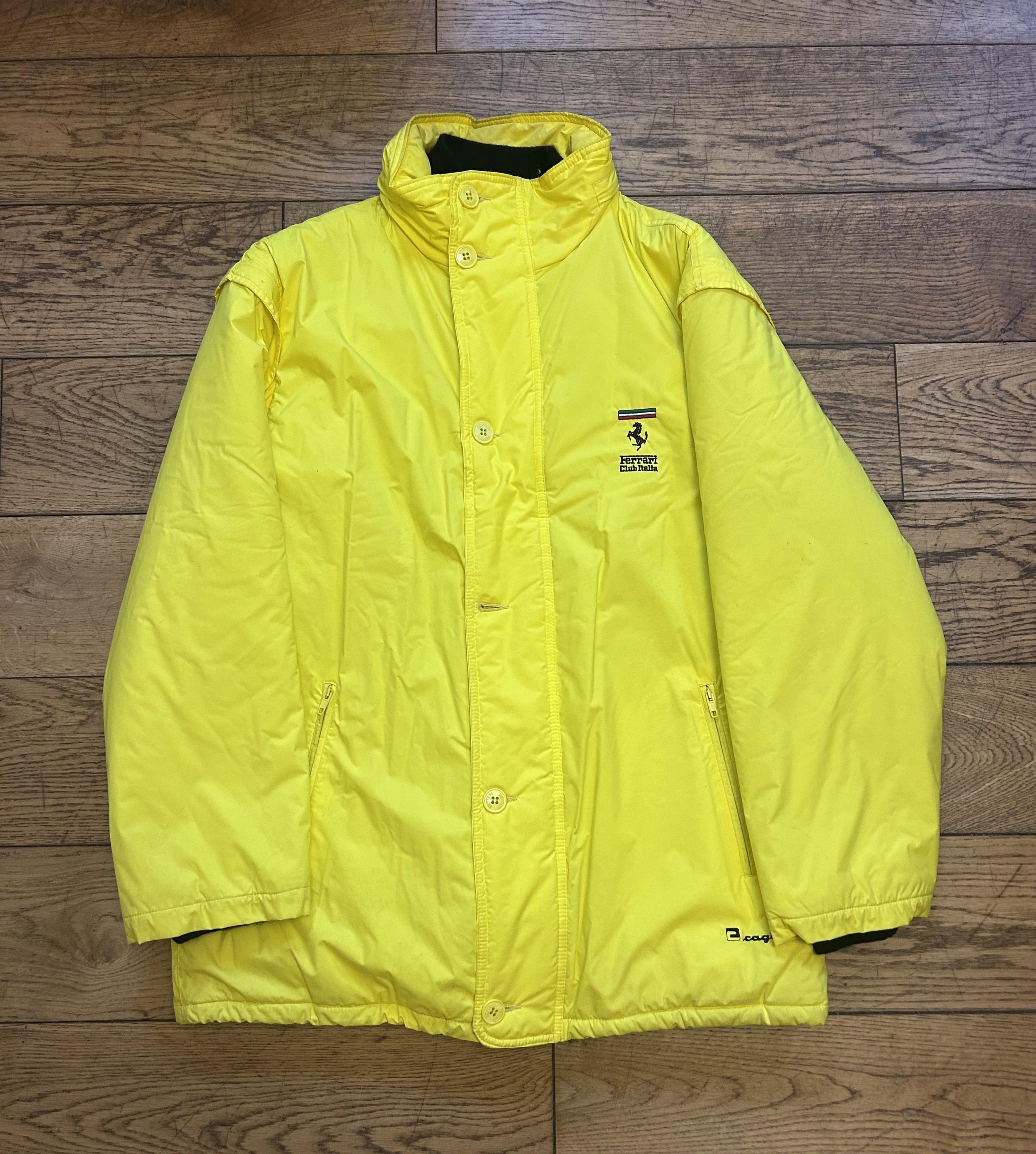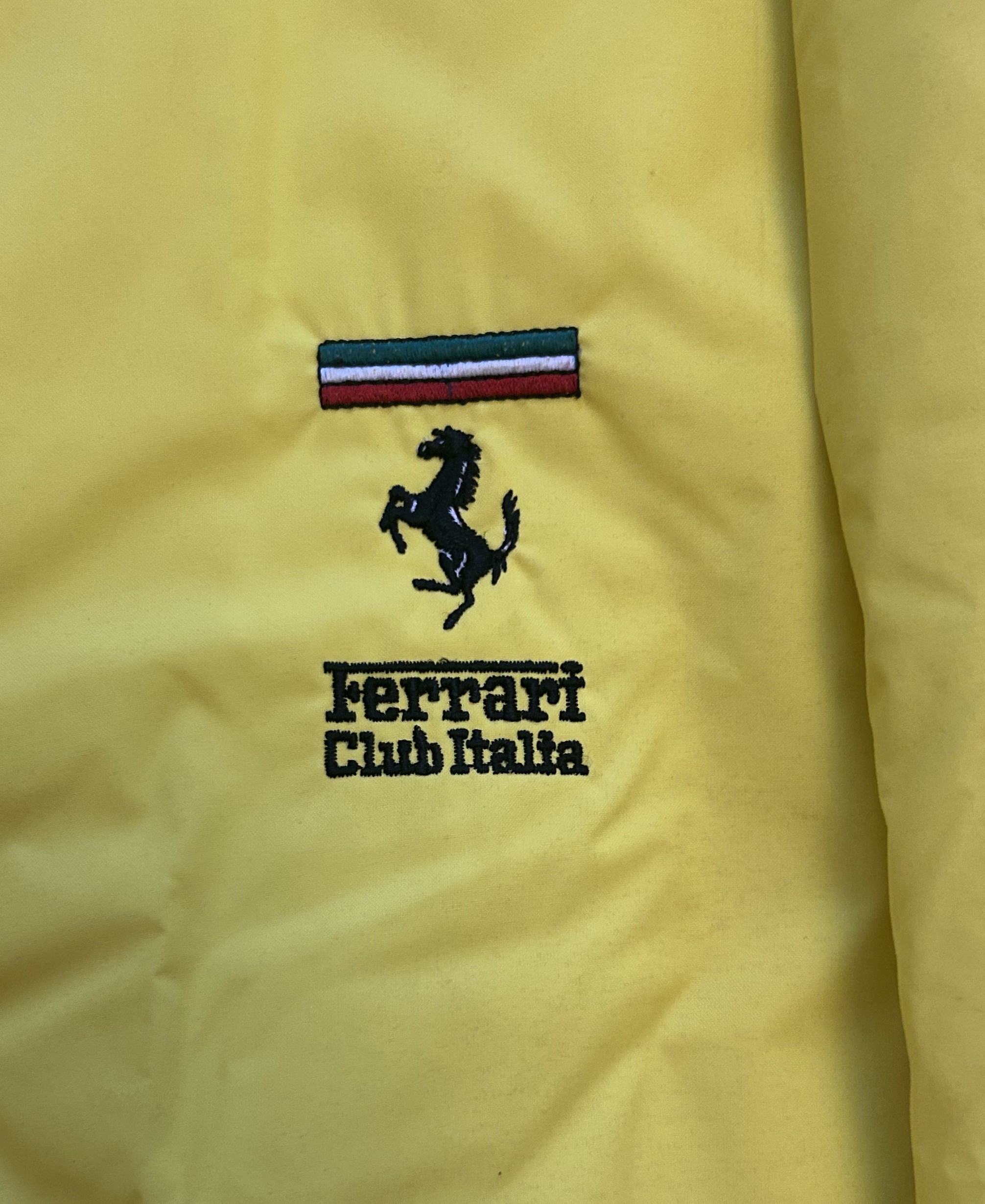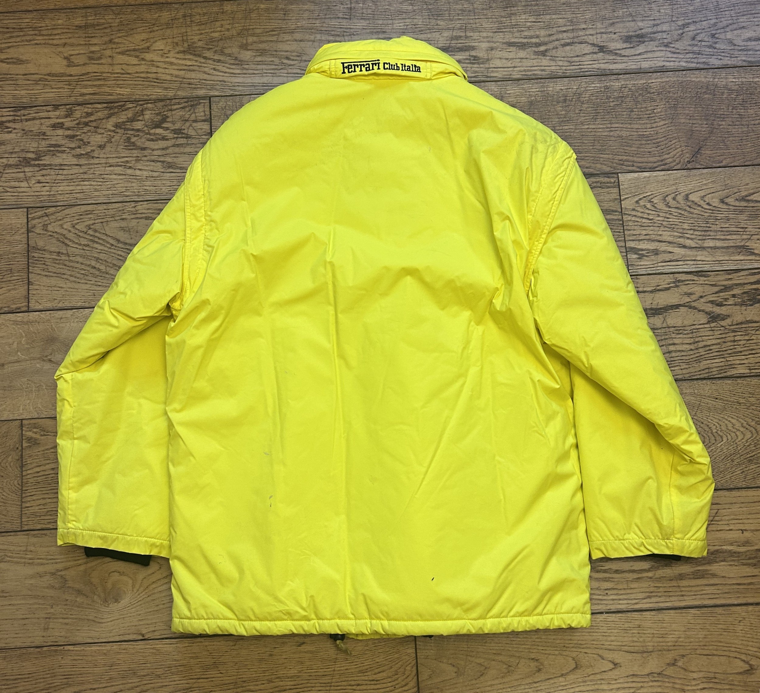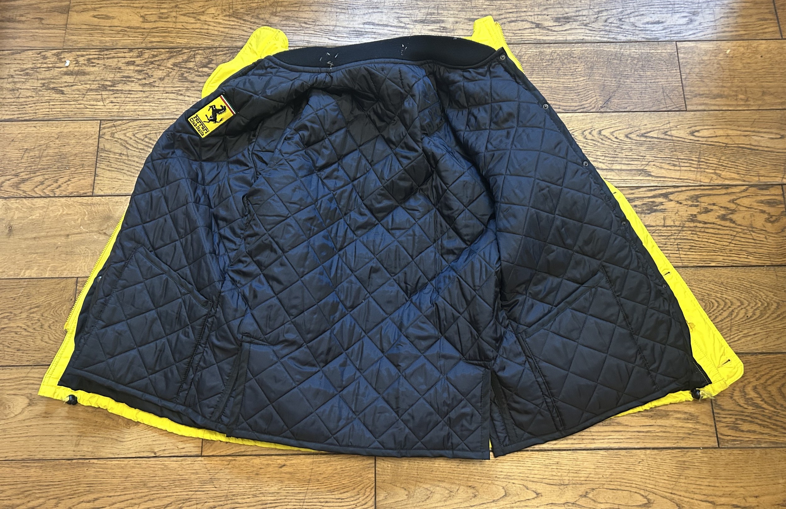 A yellow heavier weight Ferrari Club Italia jacket in yellow with additional removable black quilted jacket (used, size L)