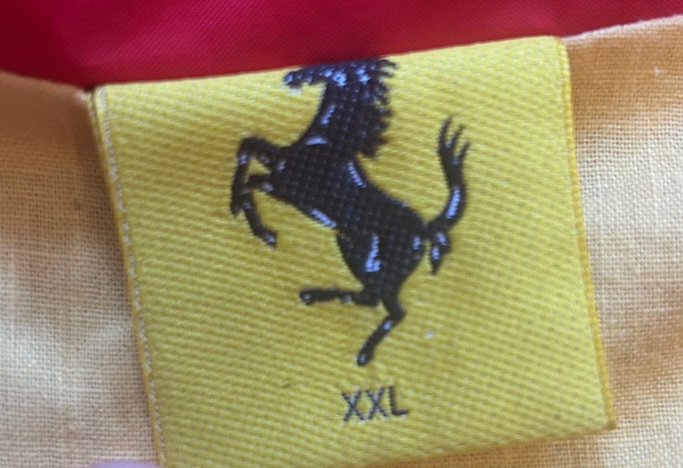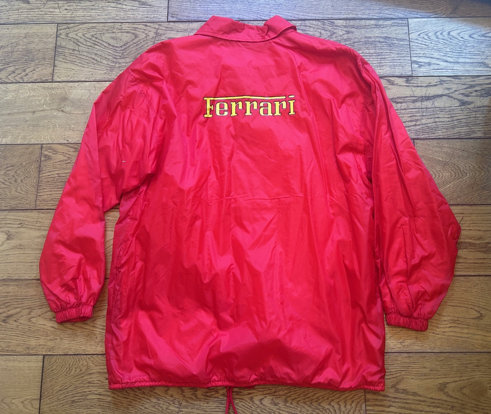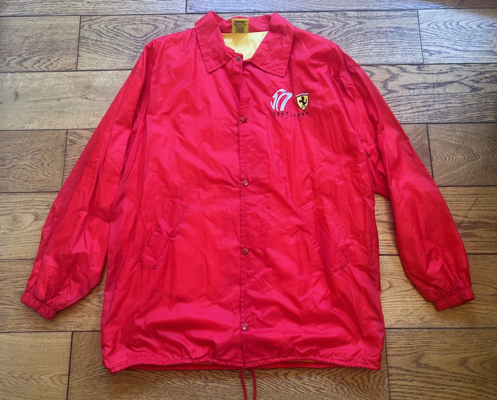 A 1997 trench coat in red for the Ferrari 50th Anniversary 1947 -1997 (used, size XXL).