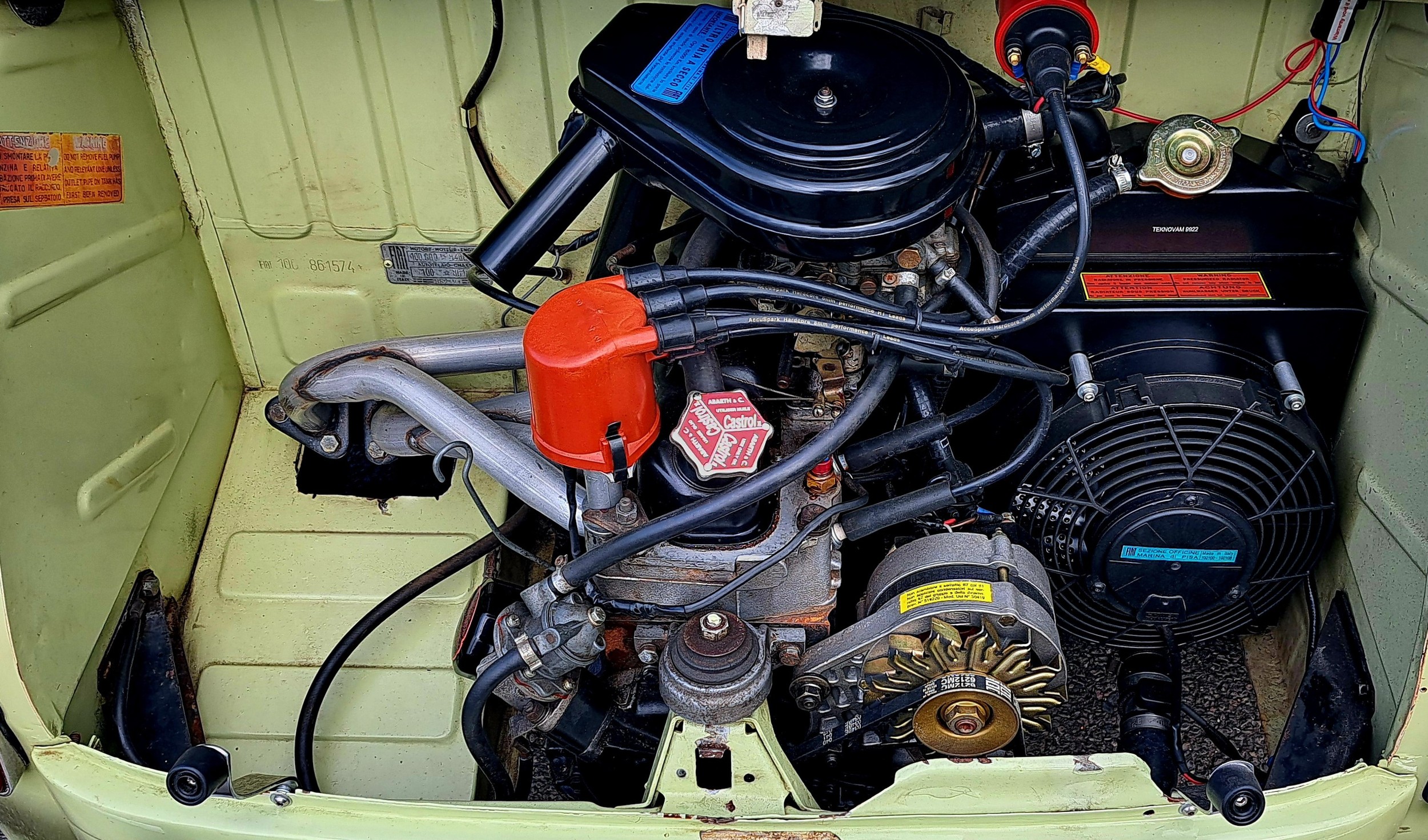 Our current owner purchased Lollo around a year ago, and quickly realised that, although the basic 903 Sport engine installation was sound, ancillaries and supporting components were not up to the job, plus the little front drum brakes were completely inadequate for the large power increase. Therefore he set about a programme of upgrades and refurbishment which made the car truly usable, and also great fun. The brief was to keep the car as standard-looking as possible, but with the Abarth upgrades fitted. The full list of upgrades and parts (£5,500+) are listed in the history file, and include a Fiat 850 Abarth Spider finned alloy sump pan (with baffle system and high flow oil pump), Abarth full sports exhaust system, also Abarth 850TC lowered front leaf spring with all new mounts. Cooling is improved with an upgraded alloy high flow radiator, high flow later style water pump, electric cooling fan conversion and full silicone hose set. Electronic ignition is now fitted, mated to an alternator in place of the original dynamo.