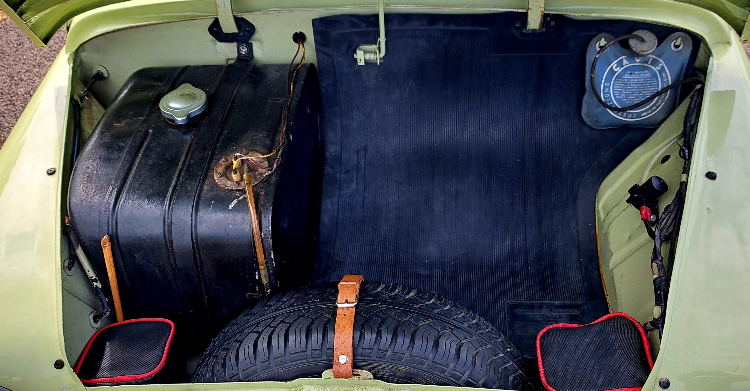 The suspension was then treated to all new steering rods, joints, arms and idler assembly, rare Fiat 850 Spider (5J x 13) wheels are fitted, with the correct hub caps. The car now stops very well with the assistance of a Fiat 850 S3 Spider disc brake assembly (including uprights), and the correct master cylinder upgrade for disc conversion. Lollo wears correct period-style Italian number plates (UK plates are also included). A number of new parts/spares are included with the car, such as rear lenses, cables and so on.