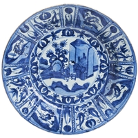 青花狩猎纹盘 康熙