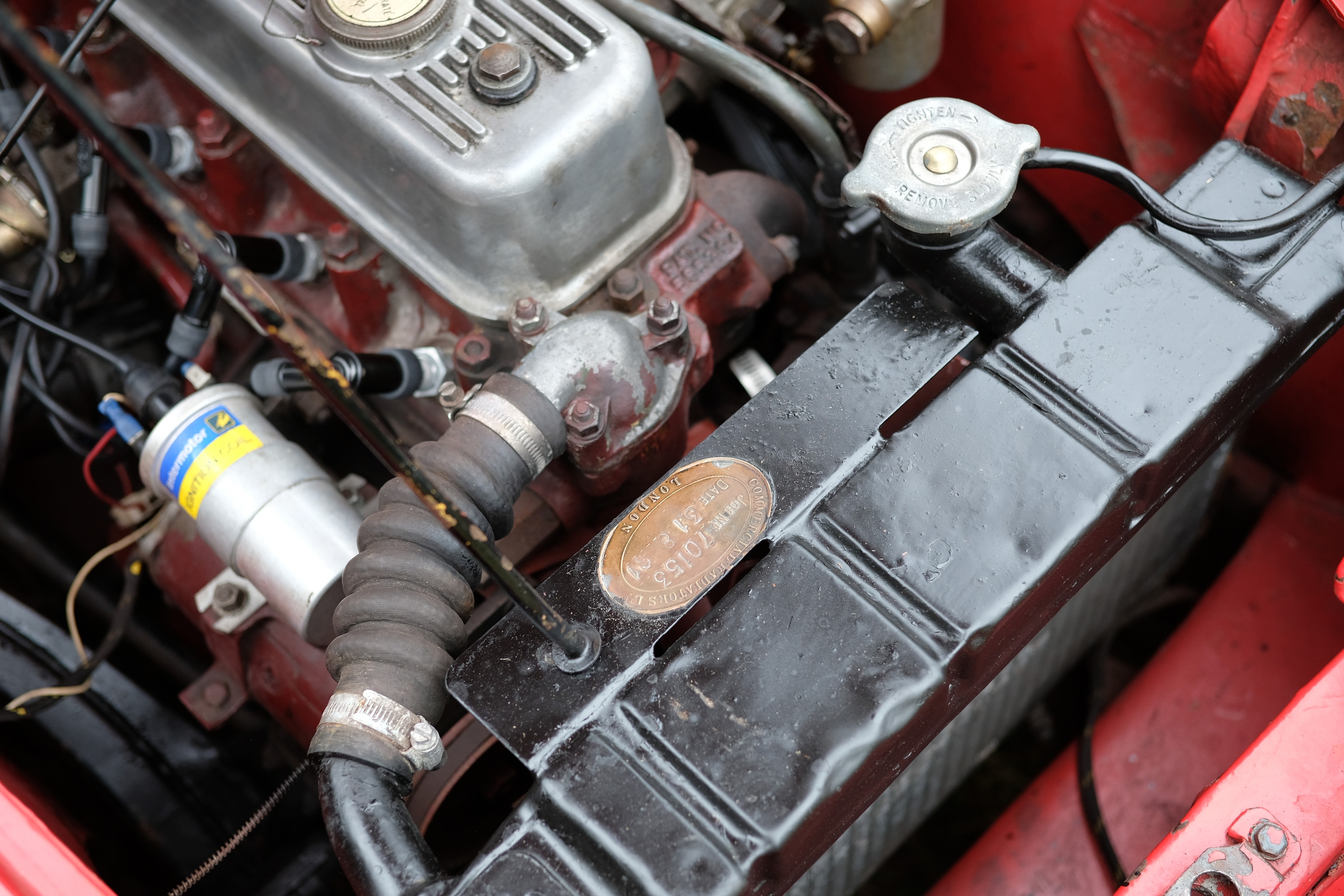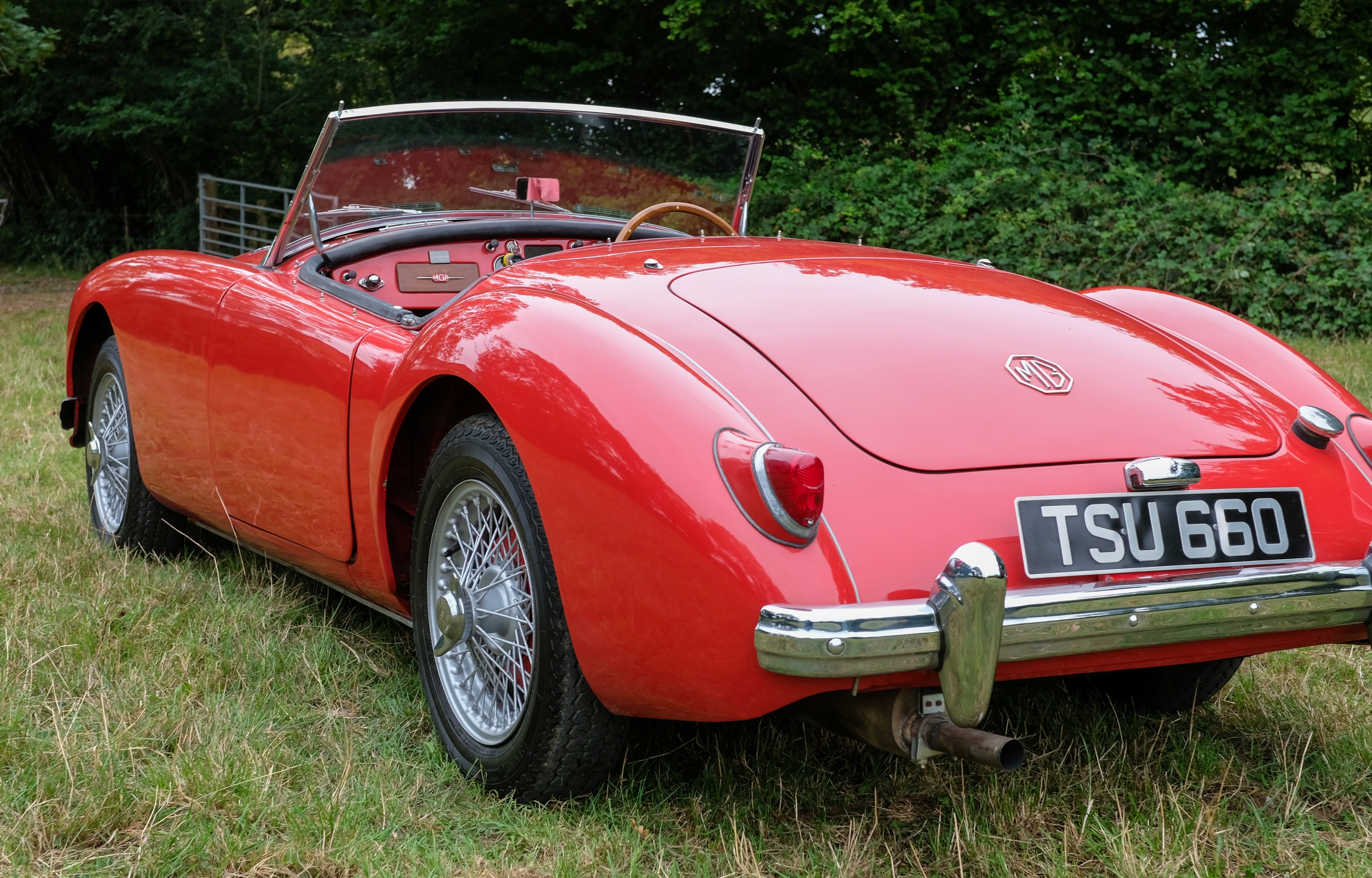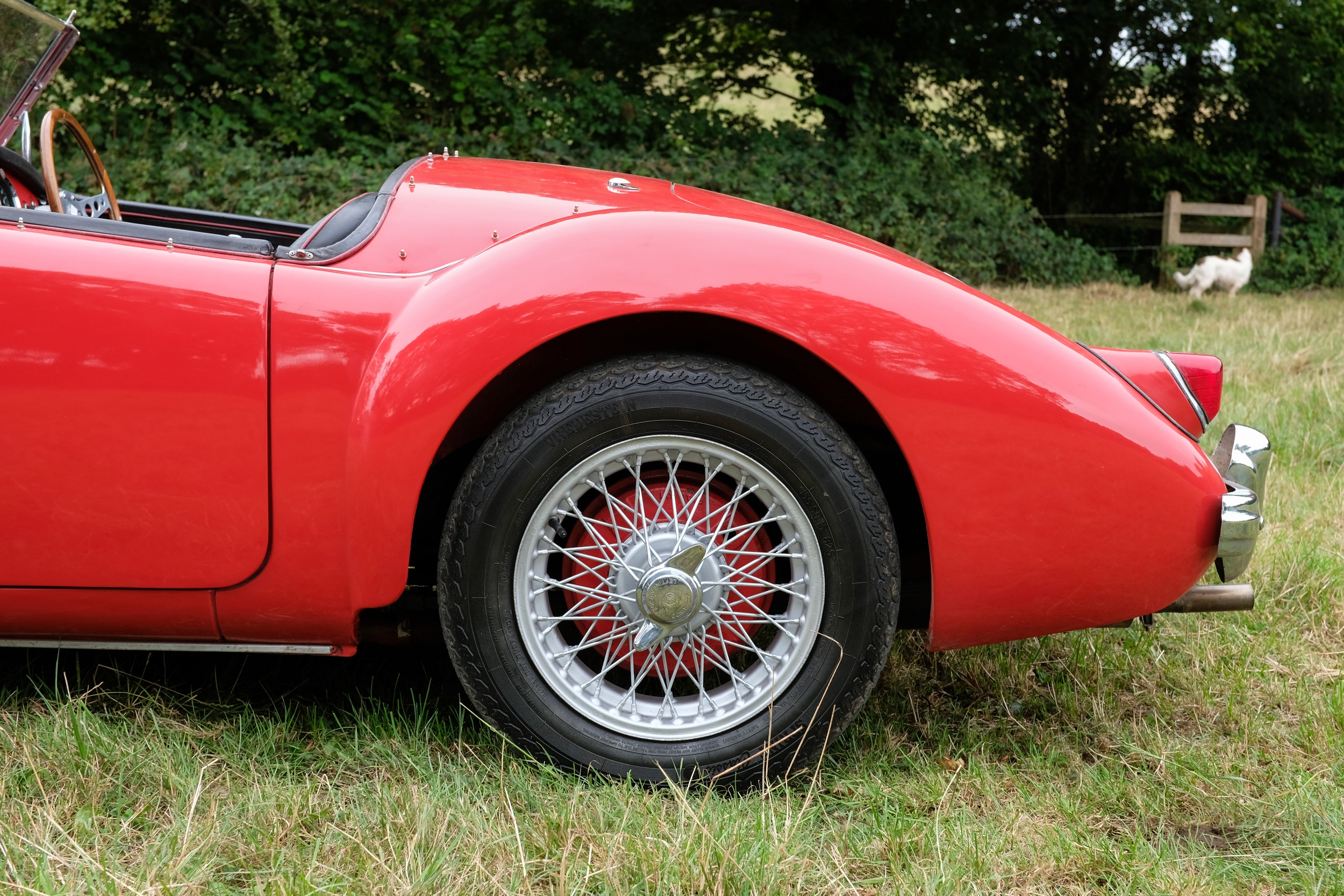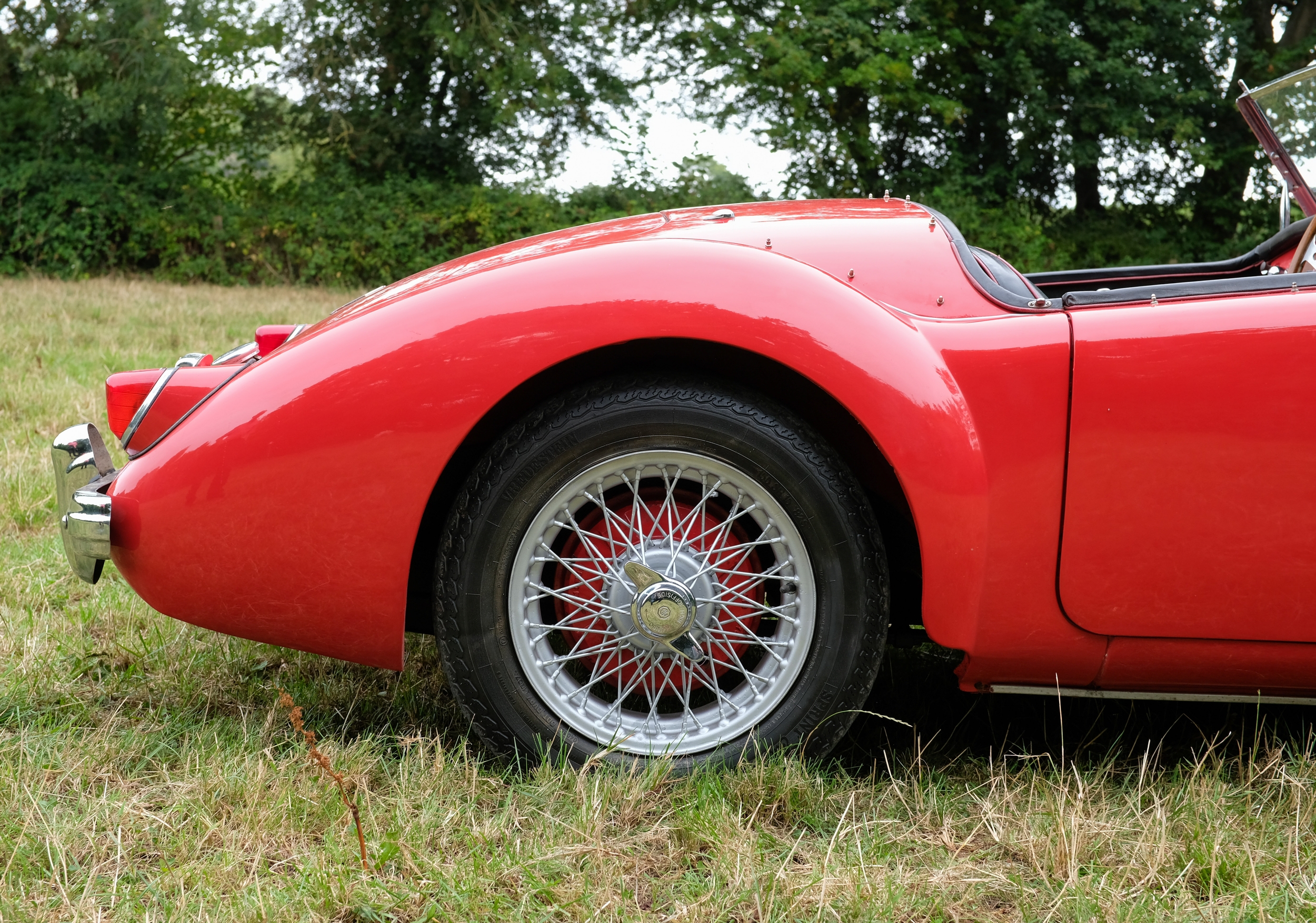 Finished in a vivid Orient Red, over black leather interior, the MGA sits beautifully on a set of 60-spoke wheels shod in excellent tyres. The detailing throughout is highly impressive, with excellent brightwork and rich deep glossy paintwork.