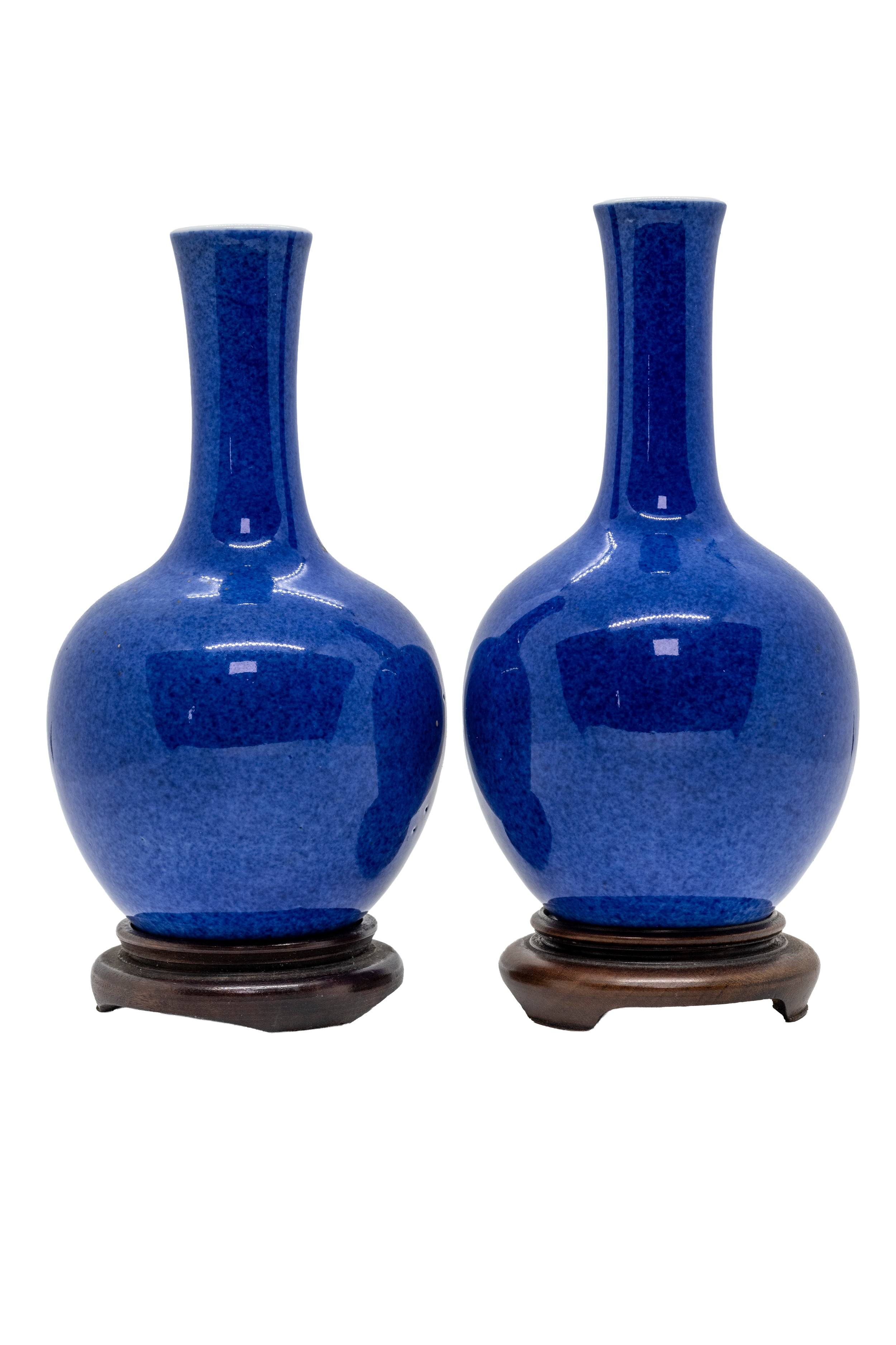 A PAIR OF MINIATURE POWDER-BLUE BOTTLE VASES