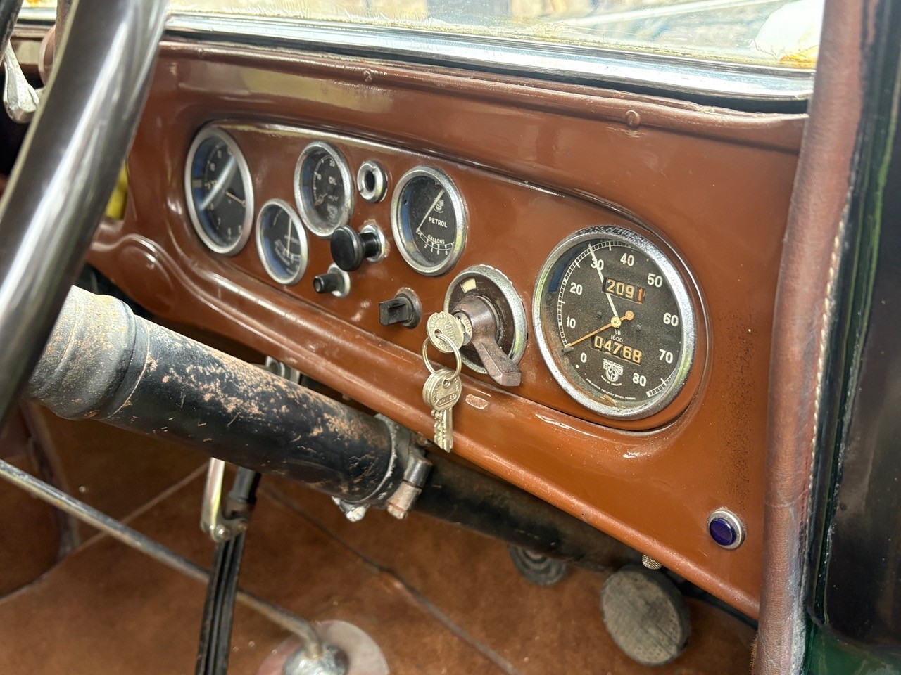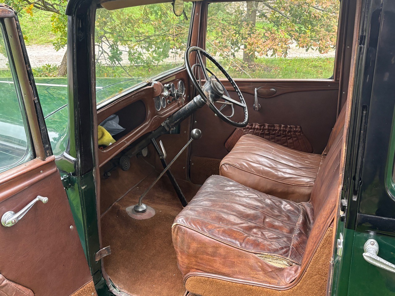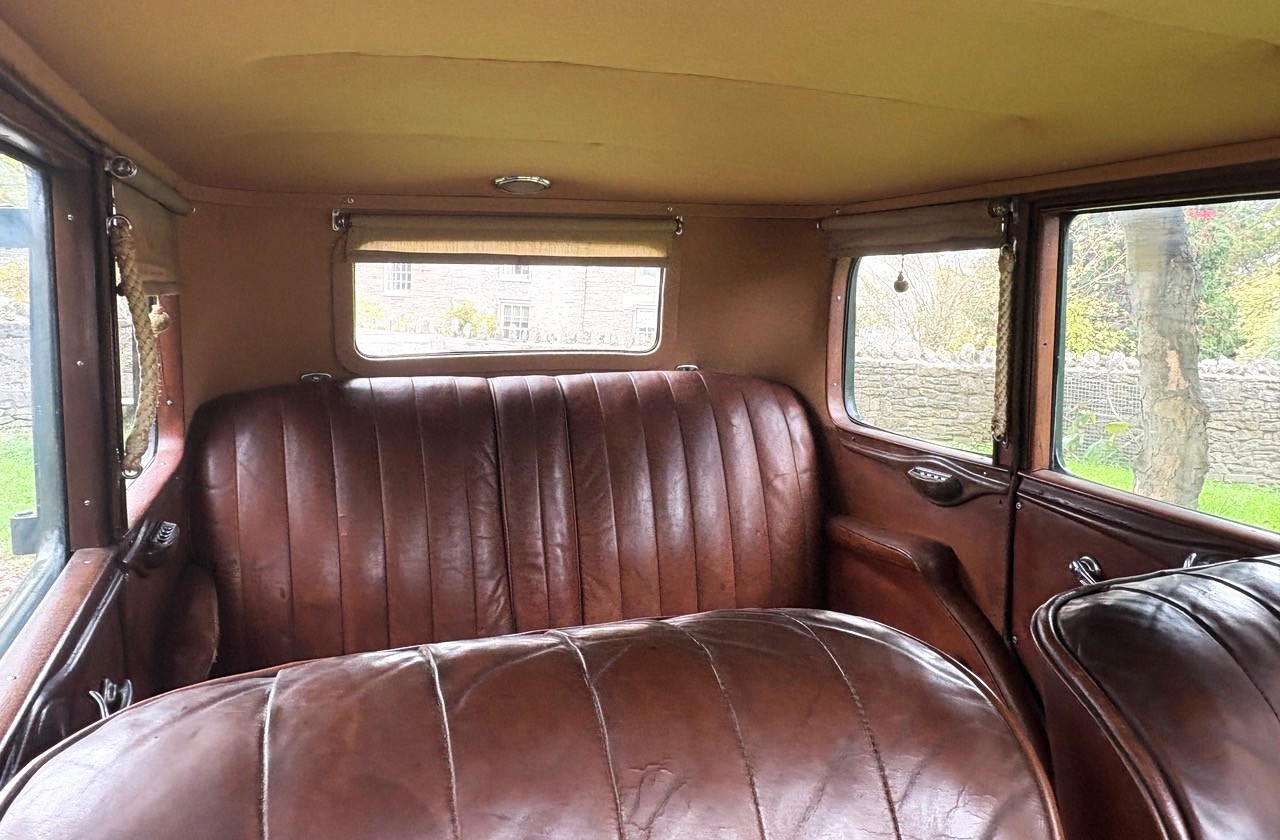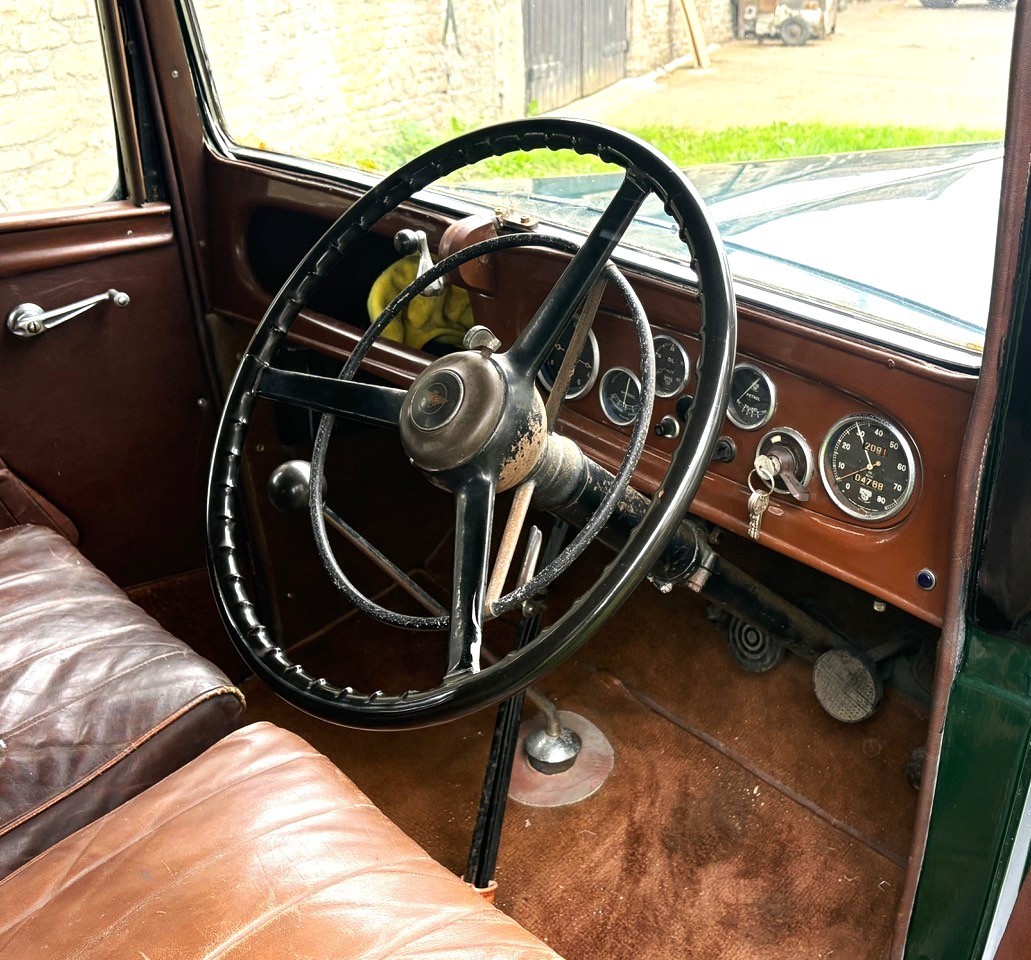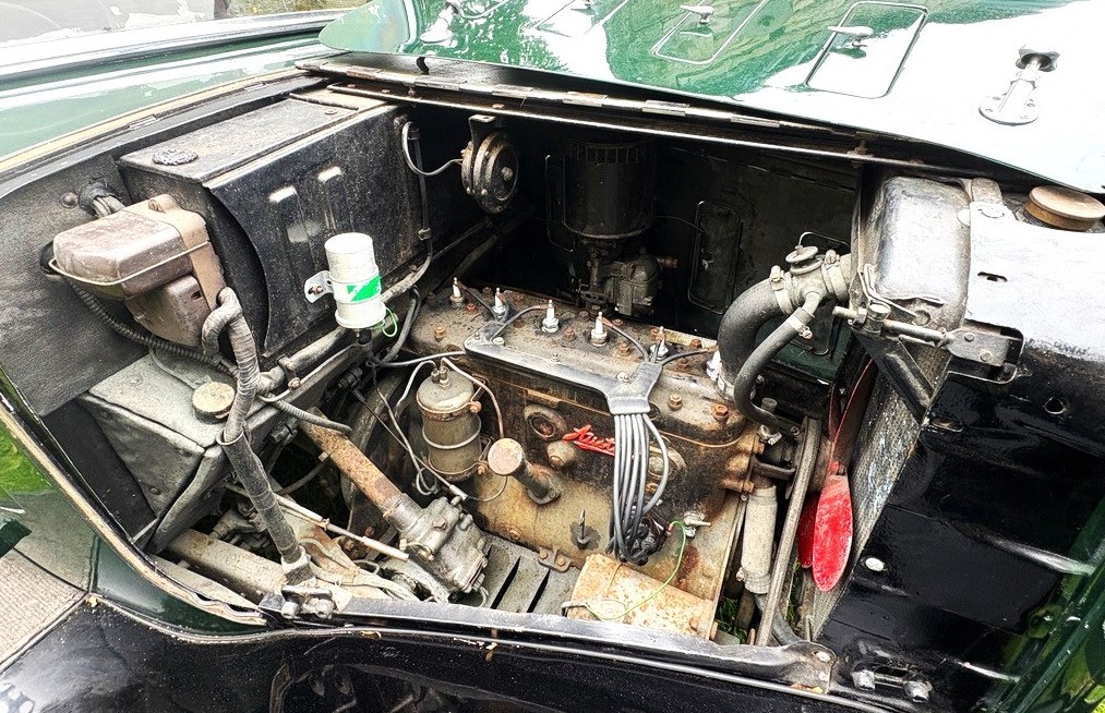 This nicely preserved example has had just two custodians in the last 25 years. In previous ownership the Austin’s coachwork was stripped of glass and refinished in the current scheme of green/black, whilst the original soft tan leather interior was preserved as opposed to renewed. All new wooden floors have been fitted, the carpets are in good order, and a smart new wool headlining has been added. The wiring has also been renewed, so as you would expect the dash instruments are in working order and all electrical systems work (even the semaphore indicators).