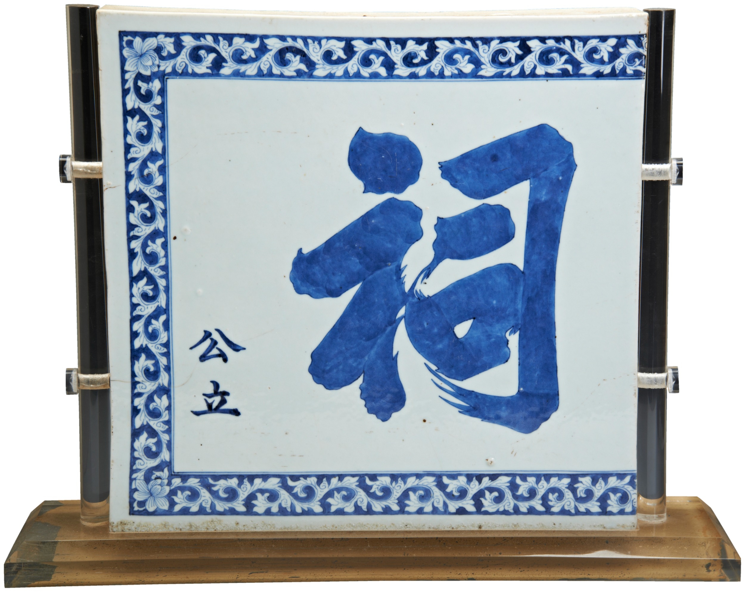 A LARGE BLUE AND WHITE 'TEMPLE' TILE