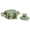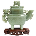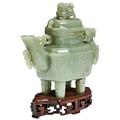 AN ARCHAISTIC CELADON JADE RITUAL WINE VESSEL AND COVER
