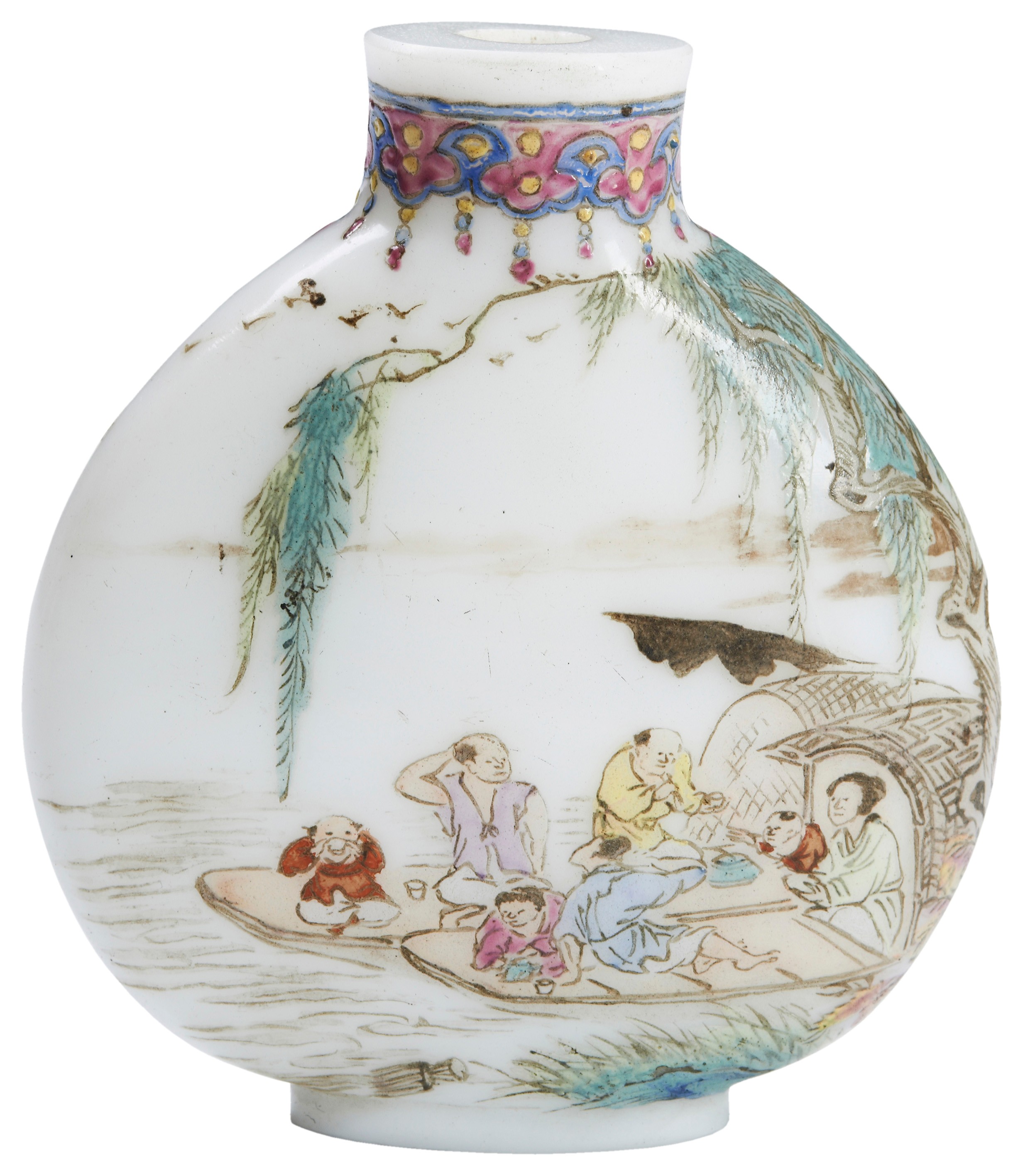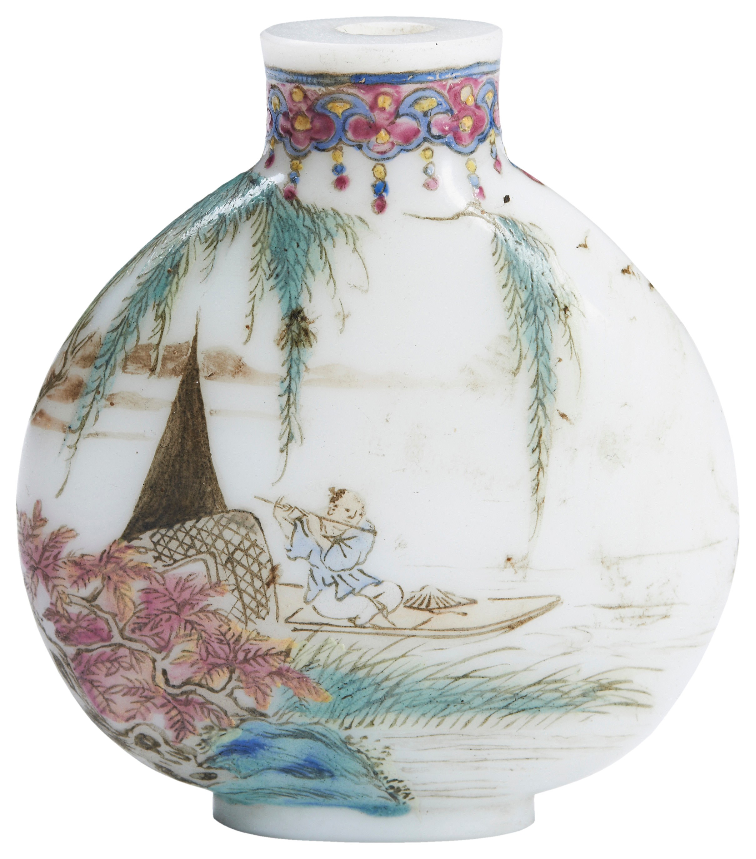 A FAMILLE ROSE ENAMEL GLASS SNUFF BOTTLE
