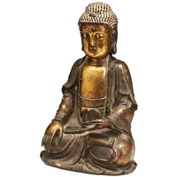 A COPPER ALLOY FIGURE OF A SEATED BUDDHA