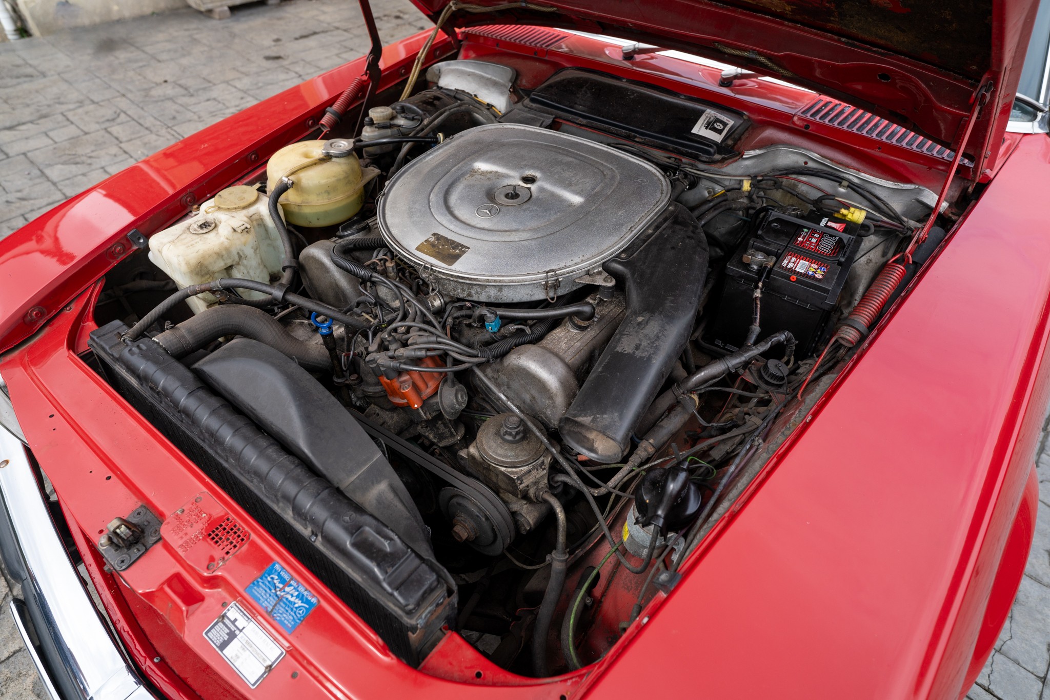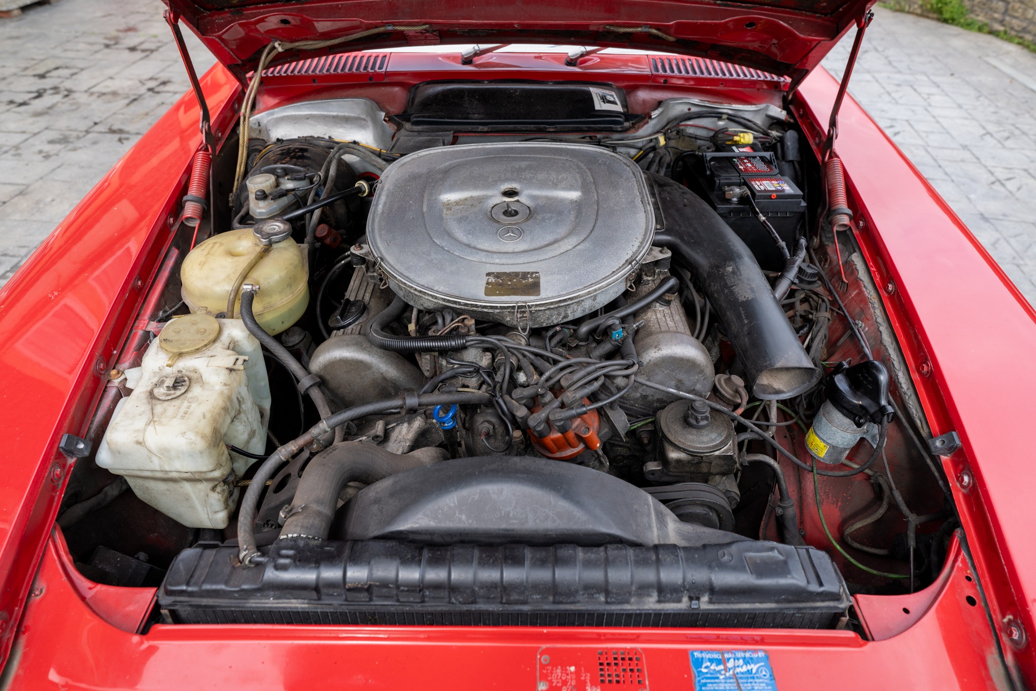This 380SL is powered by the robust M116 V8 engine, delivering a capable 215bhp, allowing for effortless cruising and a top speed of 134mph. Recently recommissioned in 2024, it has received a new fuel pump, relay, and a thorough flush and clean of the fuel tank by respected Classic specialist Autoclassico. The car has also been serviced with a new oil filter, battery, and exhaust, ensuring that it drives excellently, with both the engine and gearbox in healthy condition.