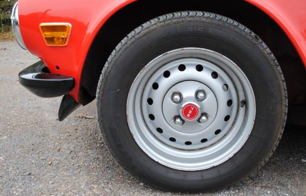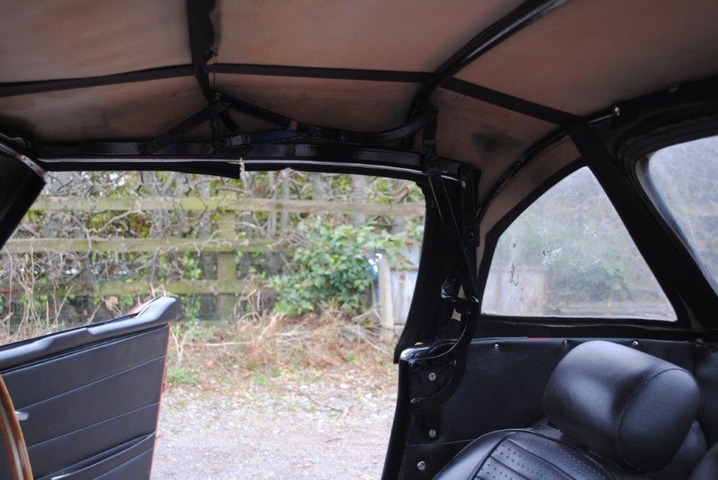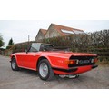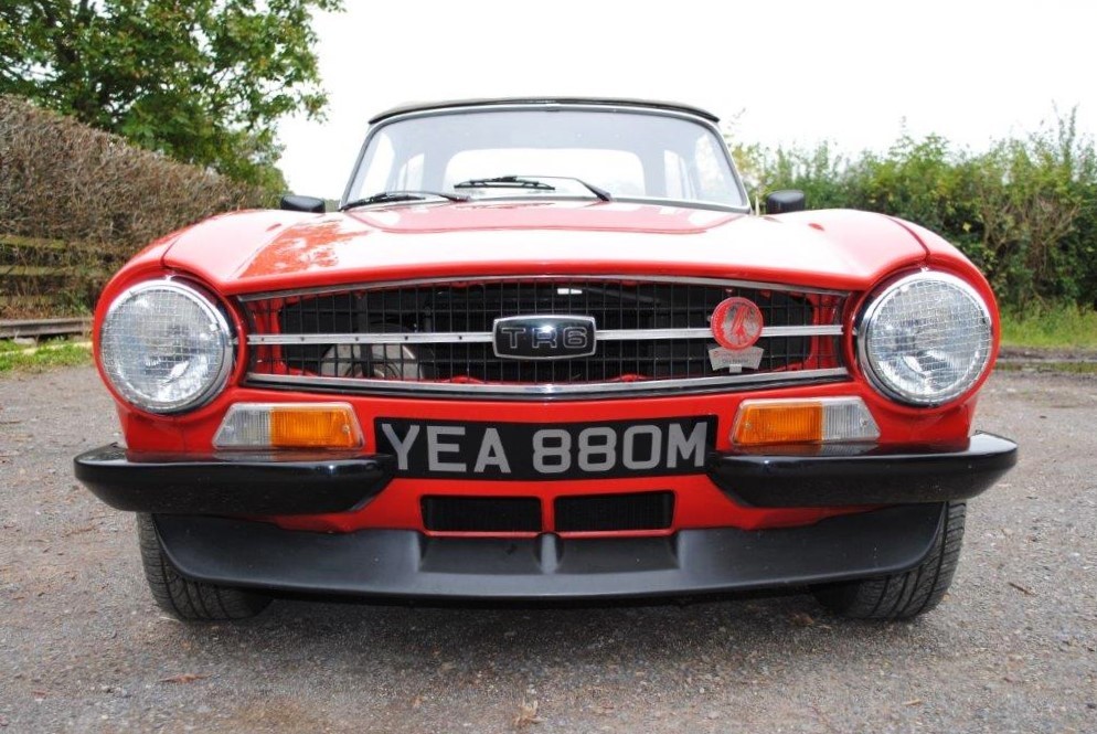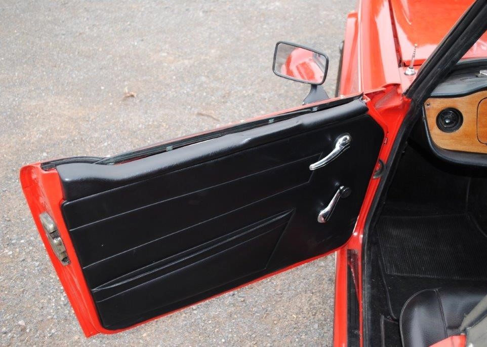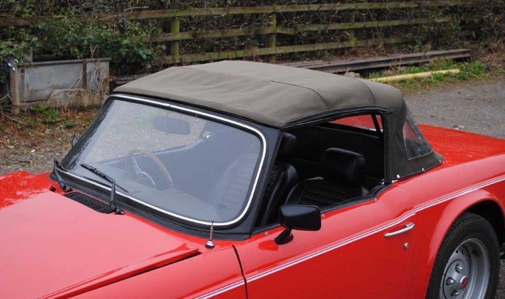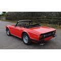 Delivered in April of 1974, this TR6 was specified in Mimosa Yellow, later being refinished in the mid-1980s in a bright shade of Pimento Red. Still presented in standard specification, the only external modification is the fitting of Racetorations quarter bumpers (the originals are included). The interior appears to be original with the exception of a slightly more modern stereo and Moto-Lita sports steering wheel. The original convertible hood has been replaced with a black mohair item. In 2018 the TR6 was subject to a rear end impact, which was fully repaired by an insurance-approved bodyshop at the time (a clear HPI report is provided with the car). The paintwork remains in generally good order, showing minor stonechips and a few minor marks/bubbles.
