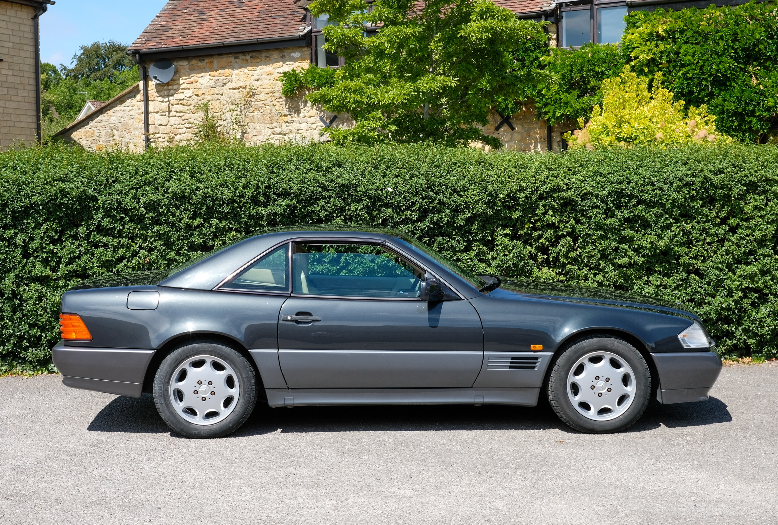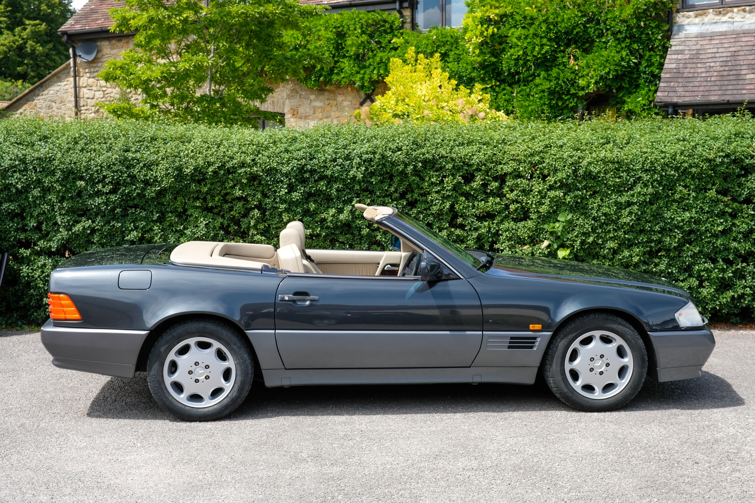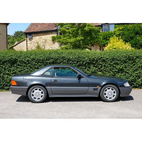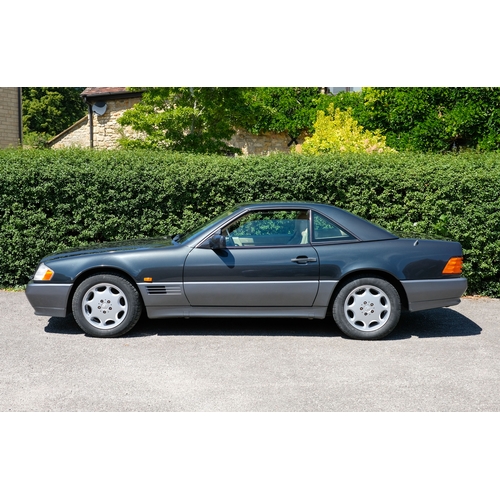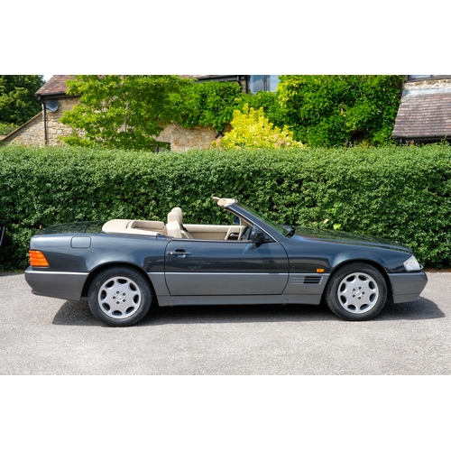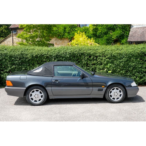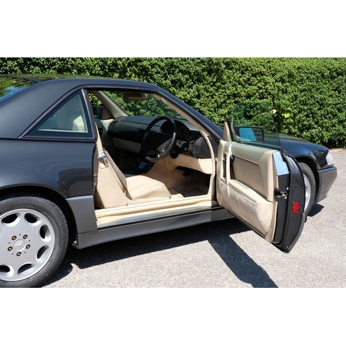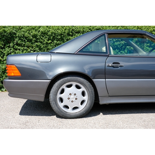 Presented in a sophisticated two-tone finish of Charcoal Grey Metallic over Pearl Grey, this 1995 Mercedes-Benz SL280 embodies the understated elegance and era-defining engineering excellence for which the Stuttgart marque is renowned. Complemented by a tan leather interior, this example is presented in a handsome, timeless combination.