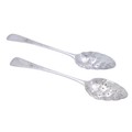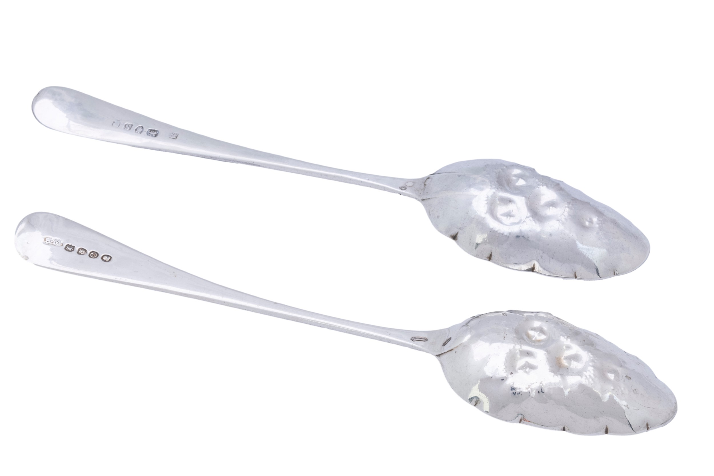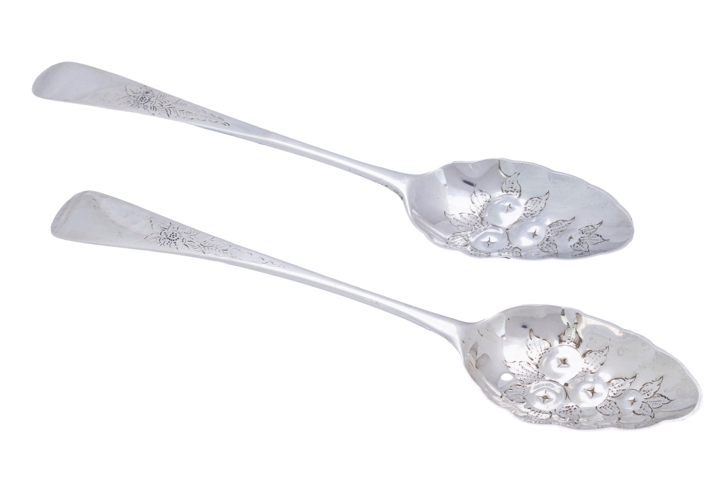 A NEAR PAIR OF GEORGE III SILVER BERRY SPOONS