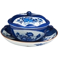 A POWDER-BLUE DECORATED TWO-HANDLED BOWL, COVER AND STAND