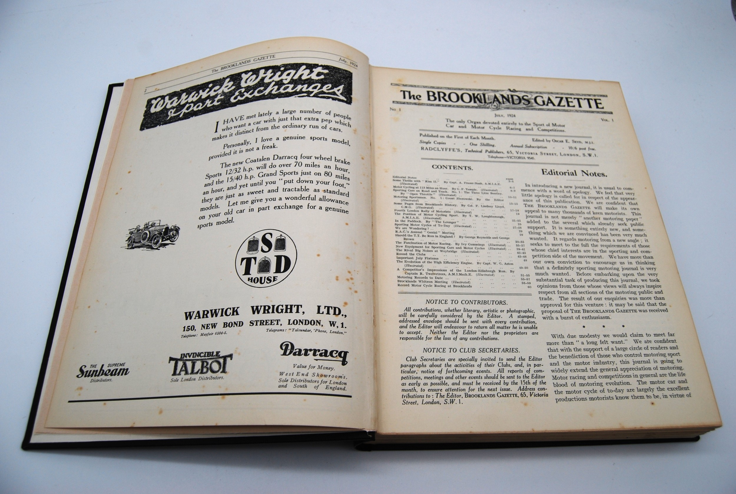 Motor Sport Volume 1Numbers 1 to 12, bound in black and gold, without covers.
