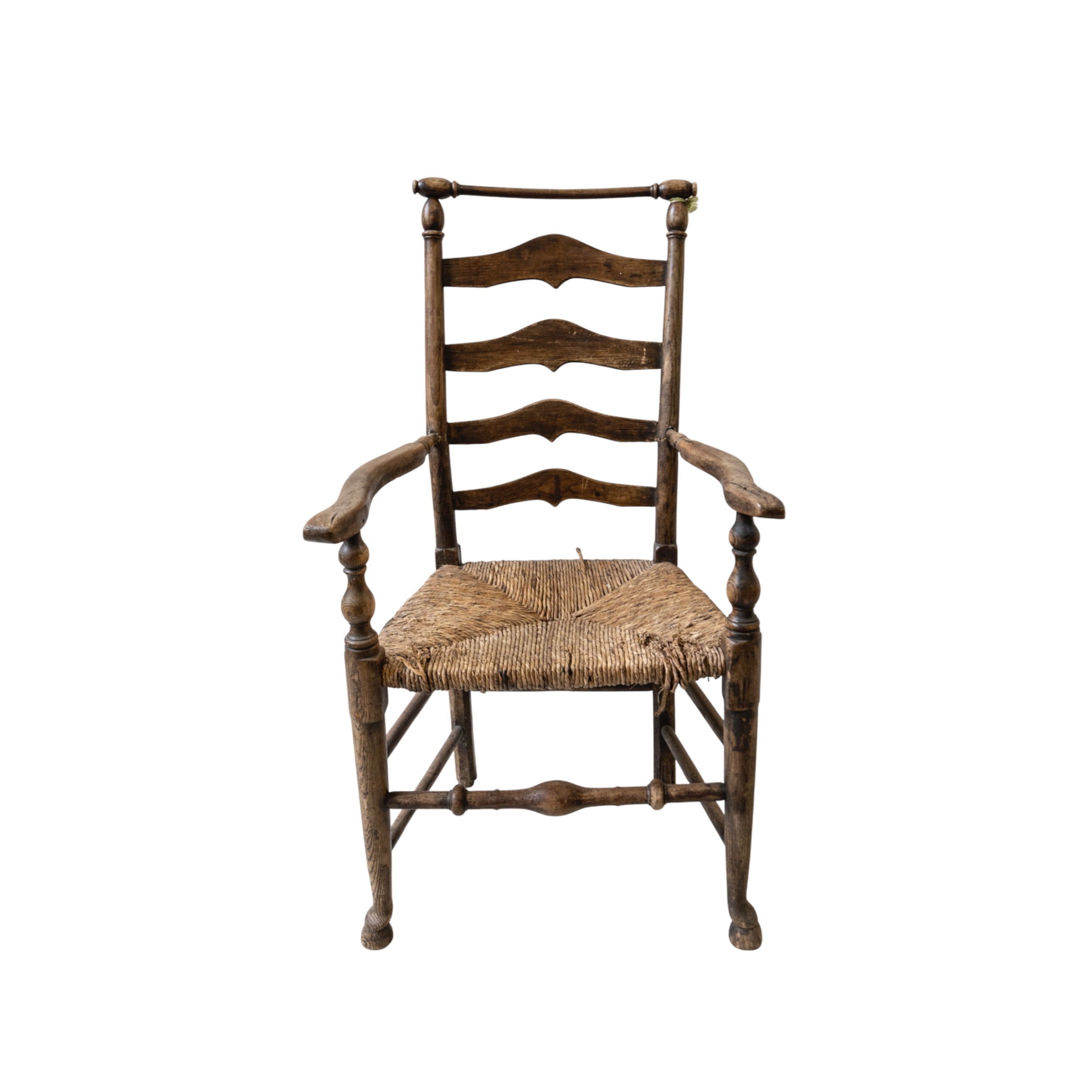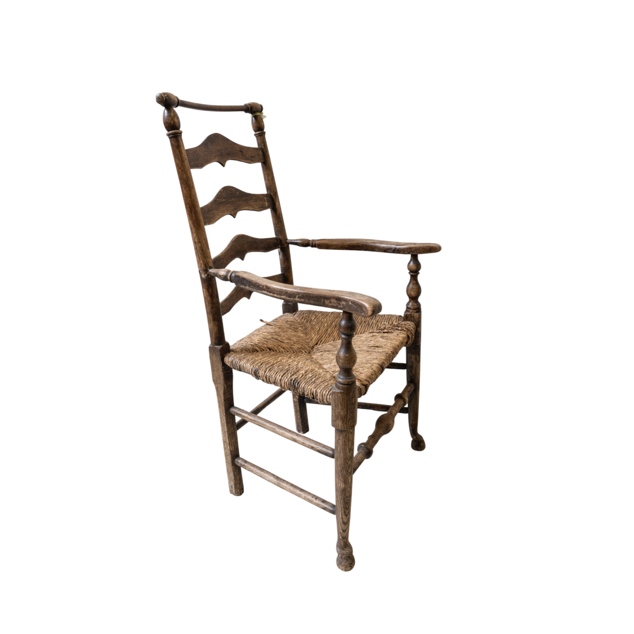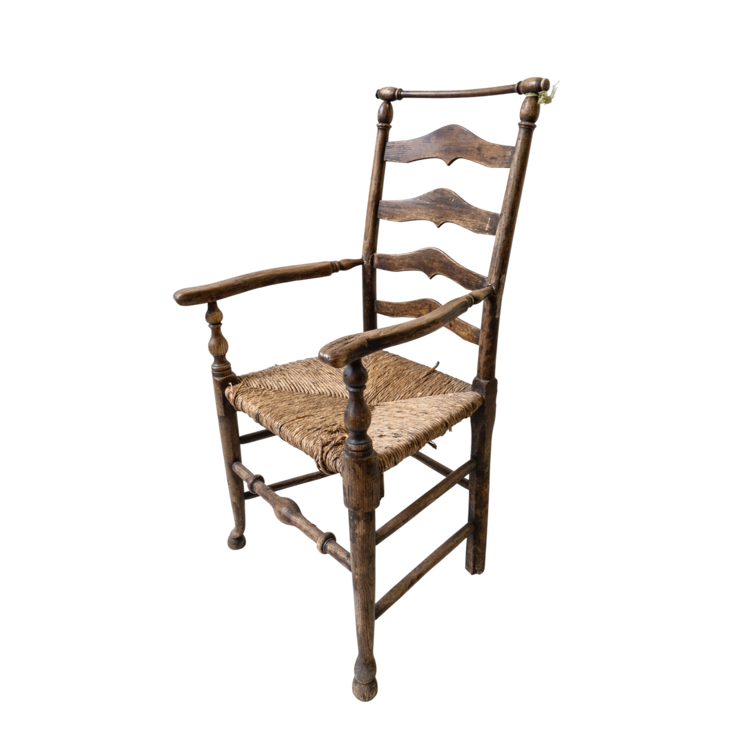 A 19TH CENTURY LADDER BACK RUSH CHAIR