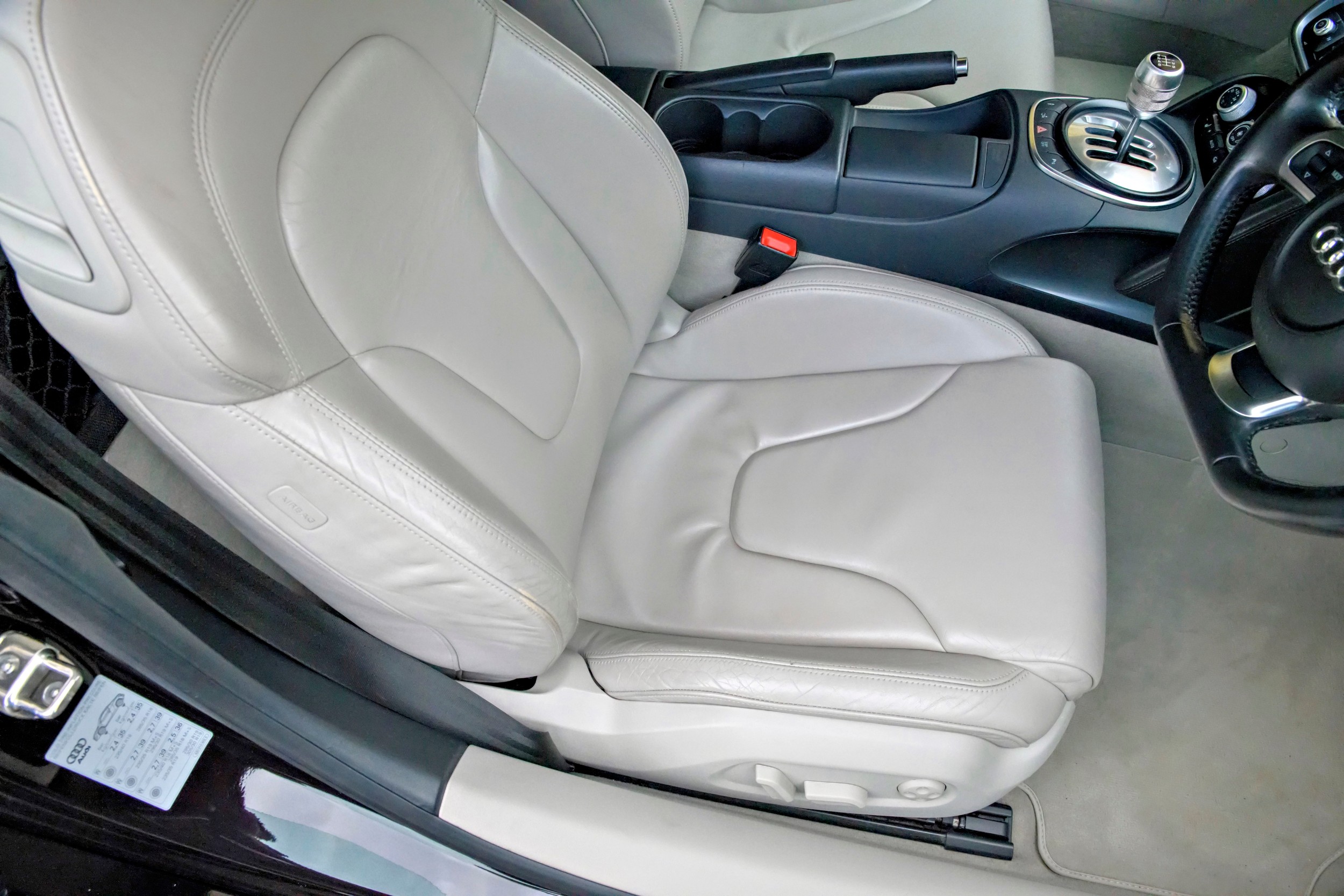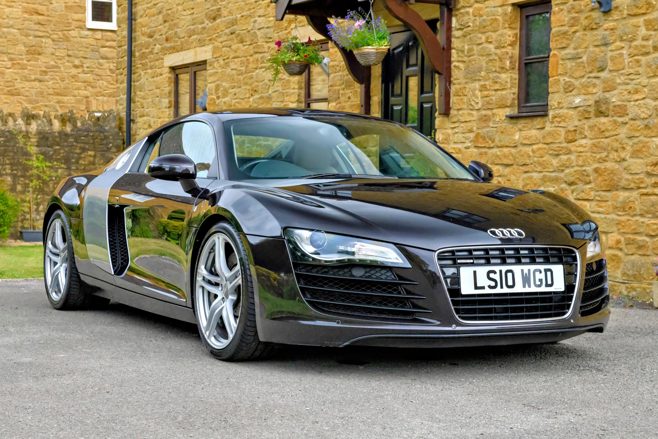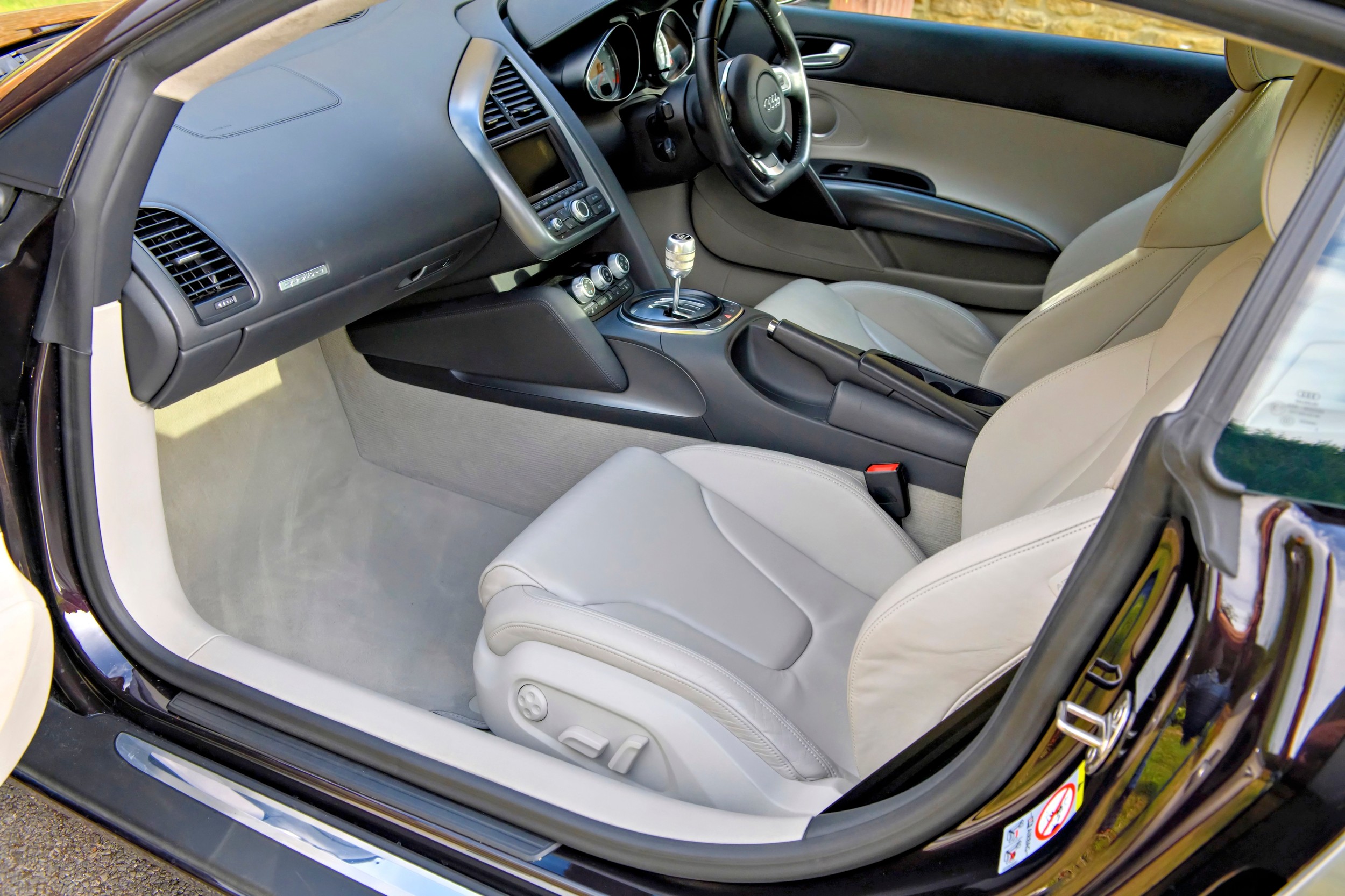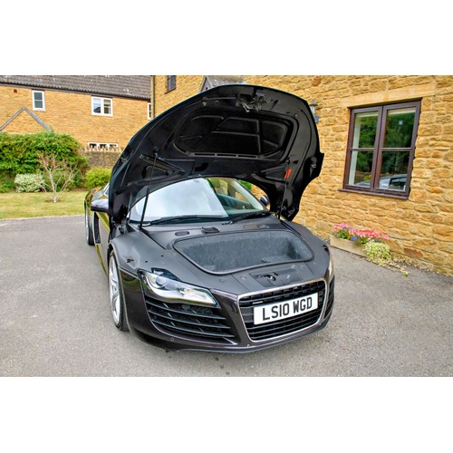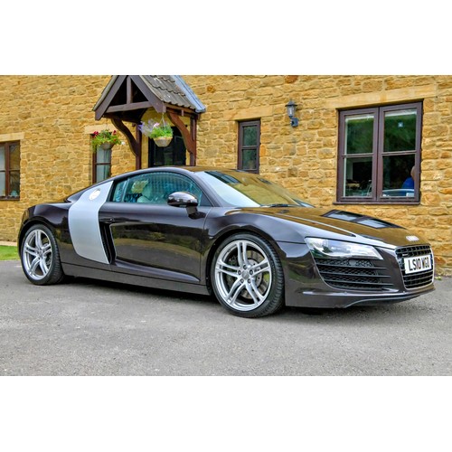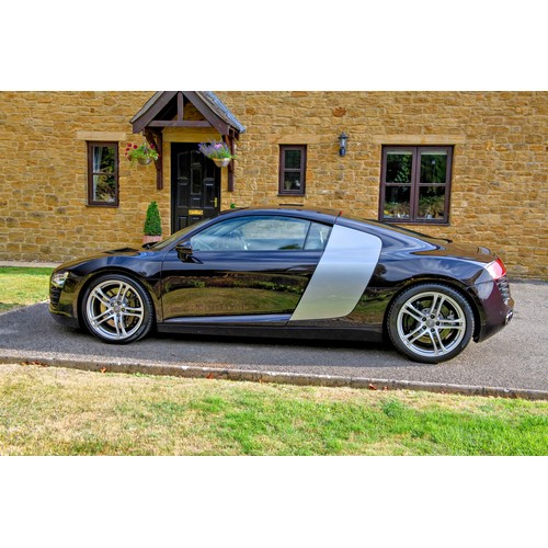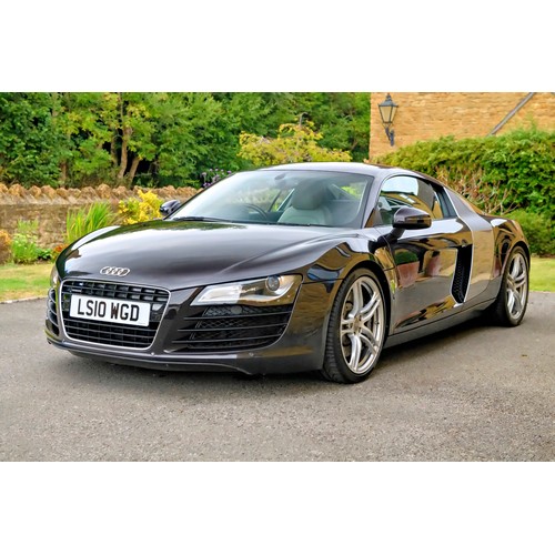 This attractive 2010 Audi R8 V8, specified with the desirable gated six-speed manual gearbox, has been in current private ownership for some 9 years. An exceptionally clean, well specified example purchased from specialist Bramley Motors in 2016, the R8 is finished in a rare shade of pearl effect metallic Audi Exclusive Cherry Black with light grey side blades, an extended light fine Nappa grey leather interior, and such options as Magnetic Ride Suspension, Navigation Plus, Audi Parking System Advanced, Bang and Olufsen Sound System, Alcantara Headlining, Electrically Adjustable Front Seating, Auto Dimming Rear View Mirrors, Light Package, Mobile Phone Preparation, CD Autochanger, Heated Front Seating, Tyre Pressure Control System, Cruise Control, Storage Package, Coloured Stitching and Audi Hill Hold Assist.