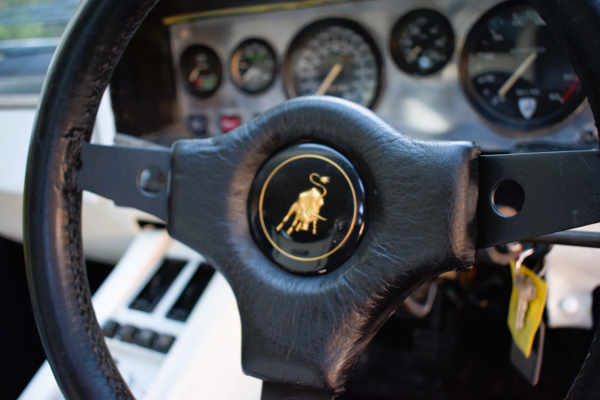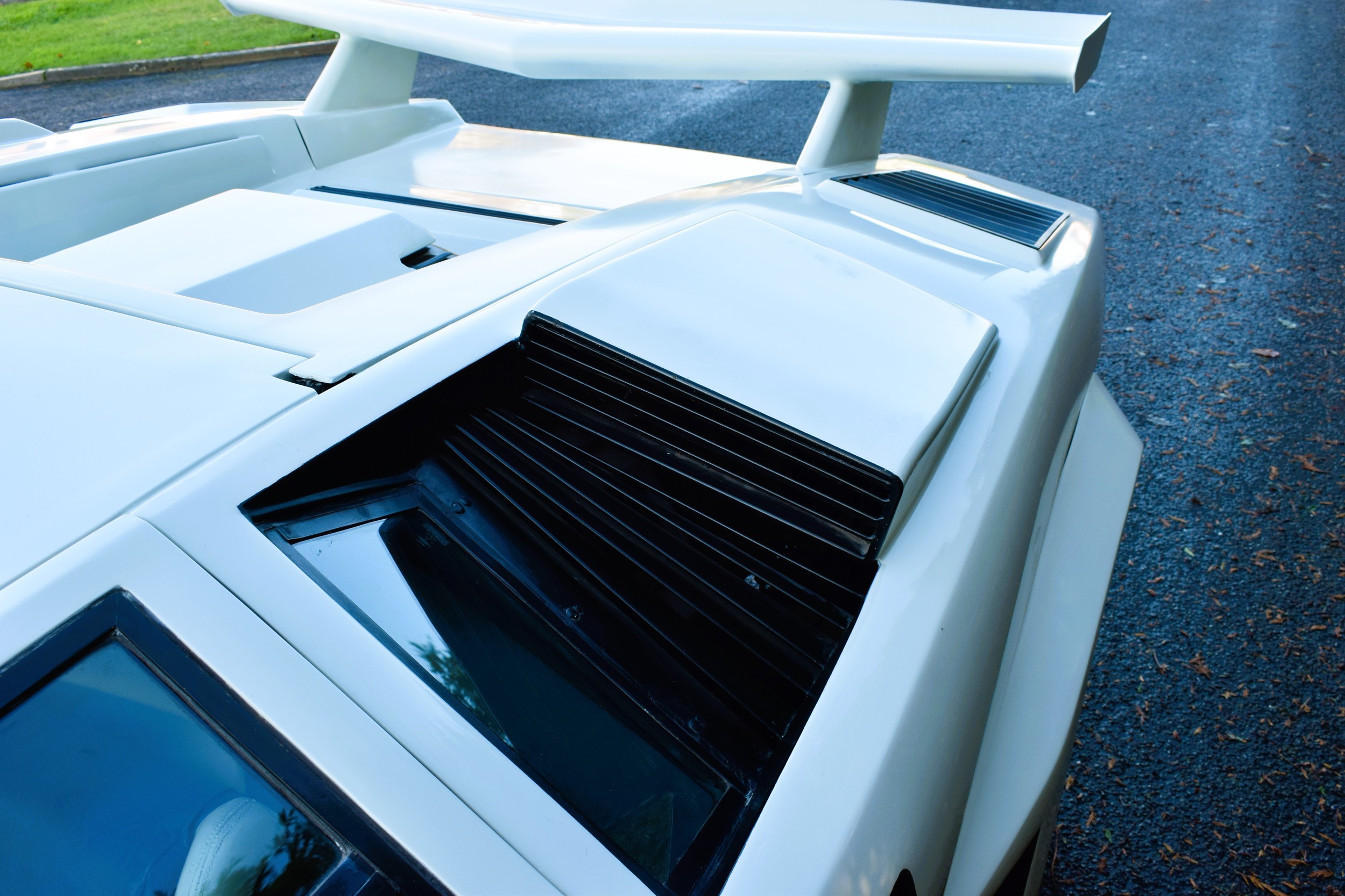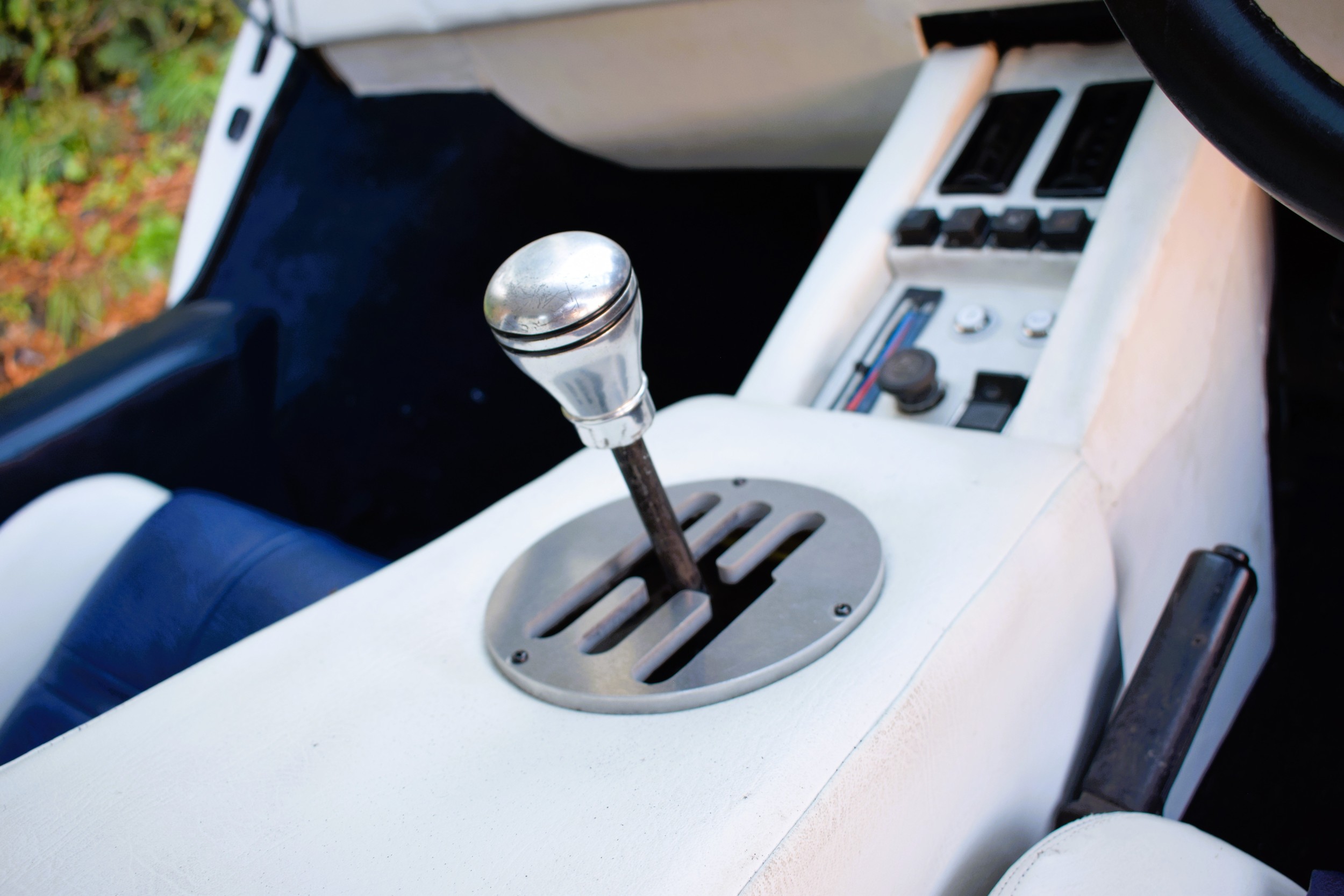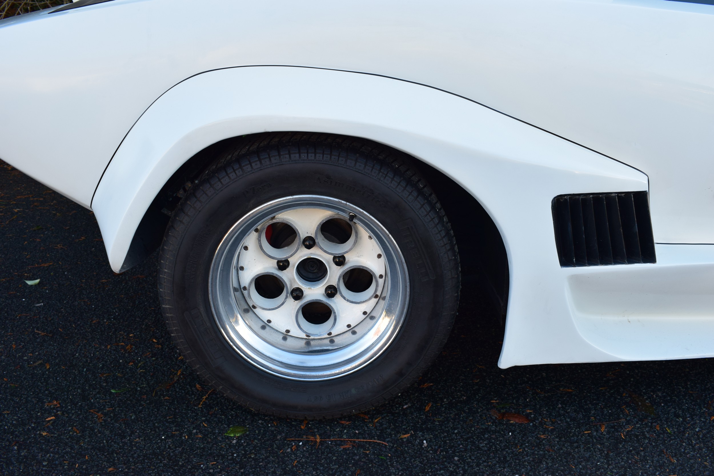 The Countach is powered by a 5.8 litre Chevrolet small block V8, rebuilt in 2010 with receipts for a crank regrind, overbore and larger pistons, and with a nominal c.2,000 miles since completion. The V8 engine is fitted with a Holley four barrel double pumper carburettor, electric choke, sports inlet manifold, Mallory 123 ignition, tubular exhaust headers and correct ANSA four-tip tail pipes, giving 350+ bhp to the rear wheels. Power is transmitted via a manual five-speed Porsche (986) gearbox.