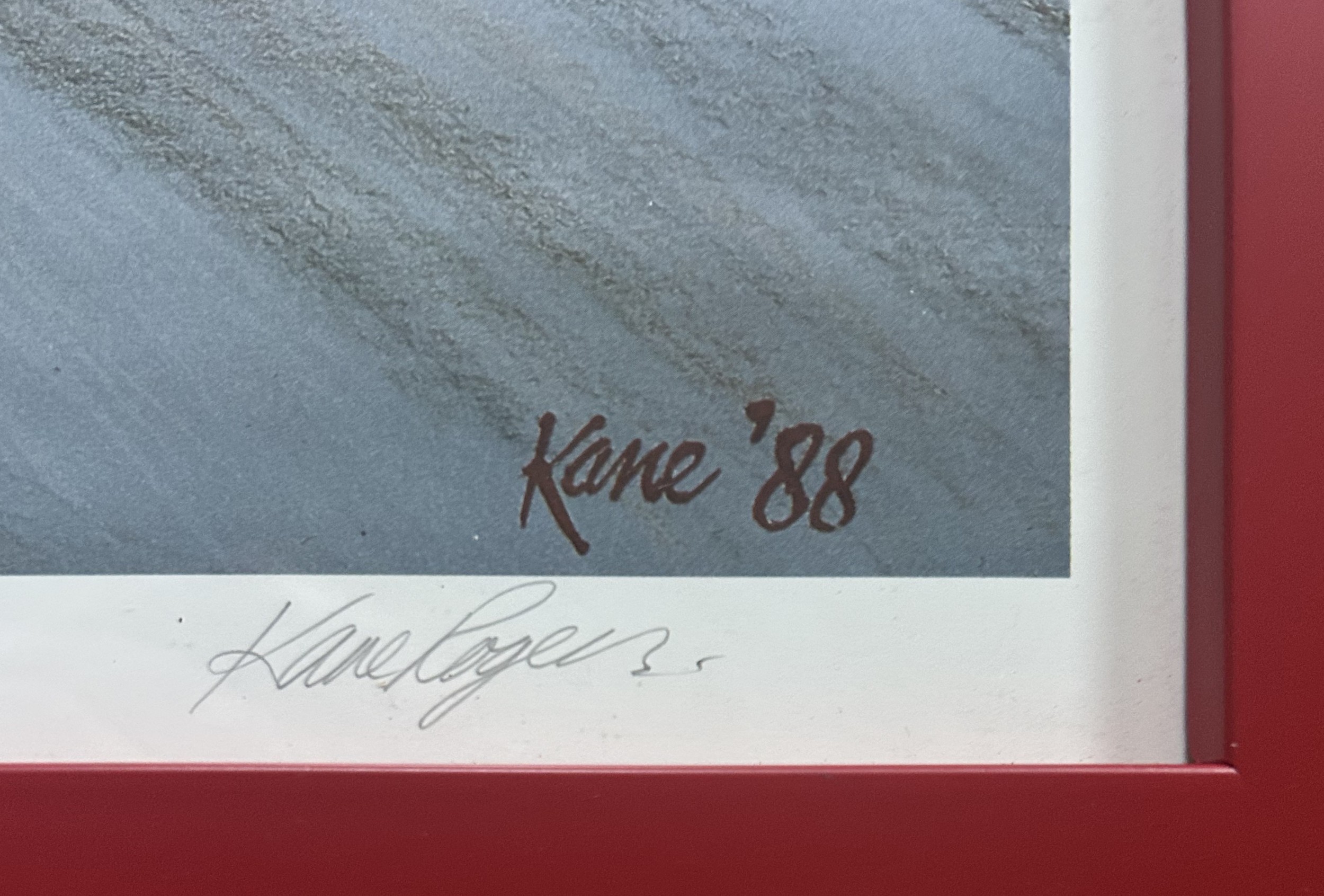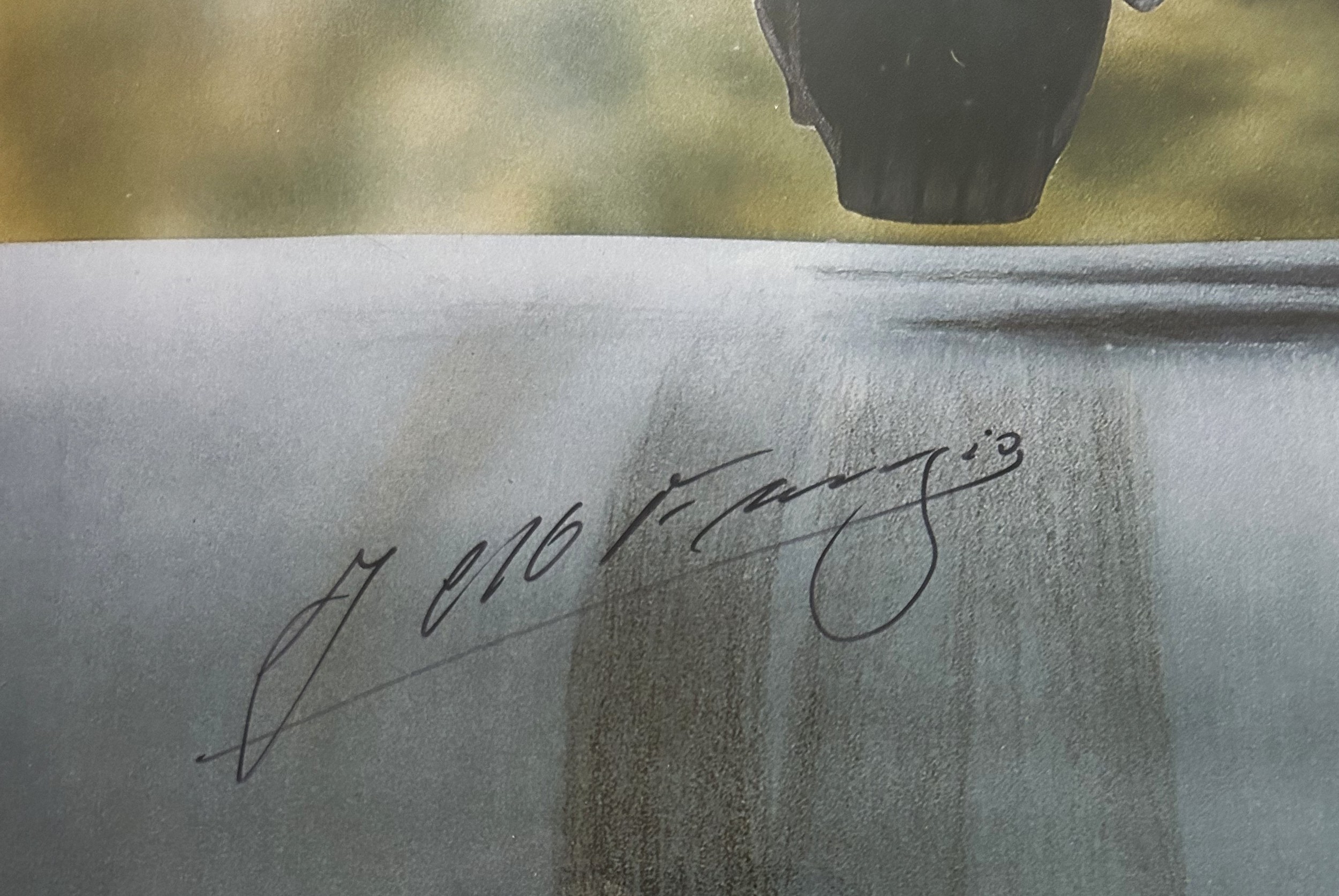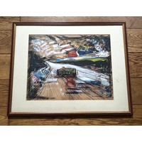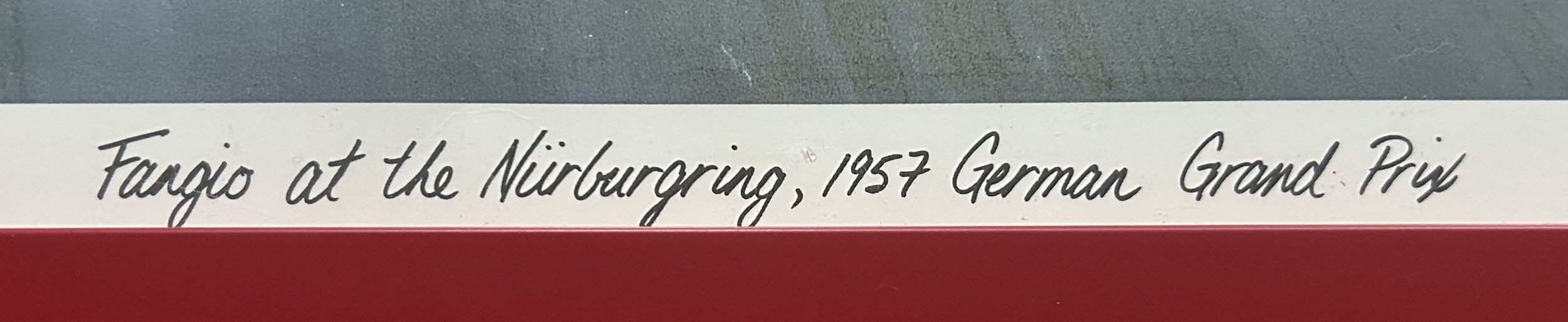 Signed by the artist and by Fangio. Framed and glazed, 65 x 52cm wide including frame.