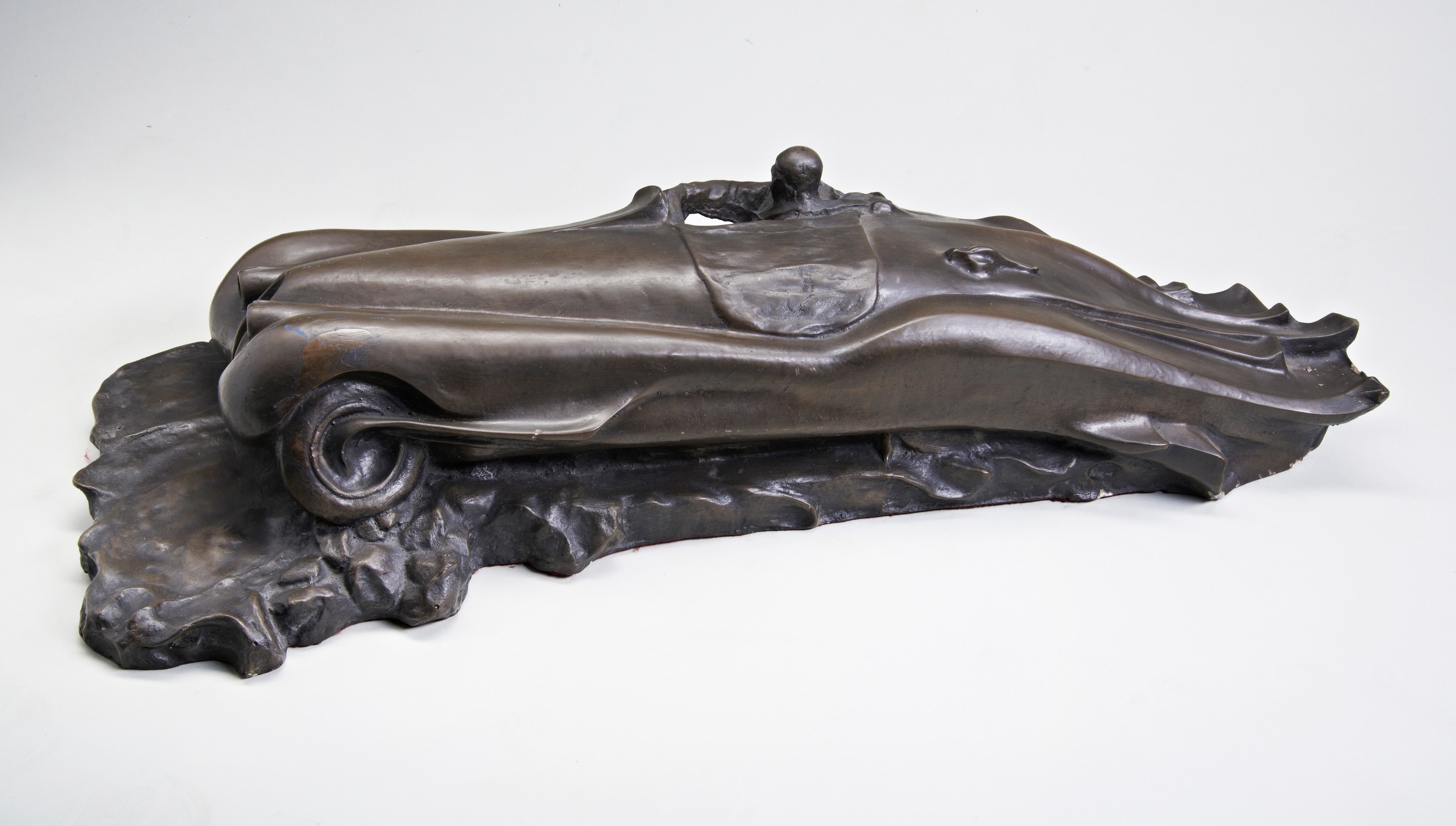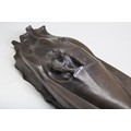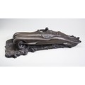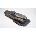 ART-DECO STYLE SCULPTURE OF A JAGUAR XK120, MADE FROM RESIN AND BRONZE COMPOSITE, 70CMS LONG