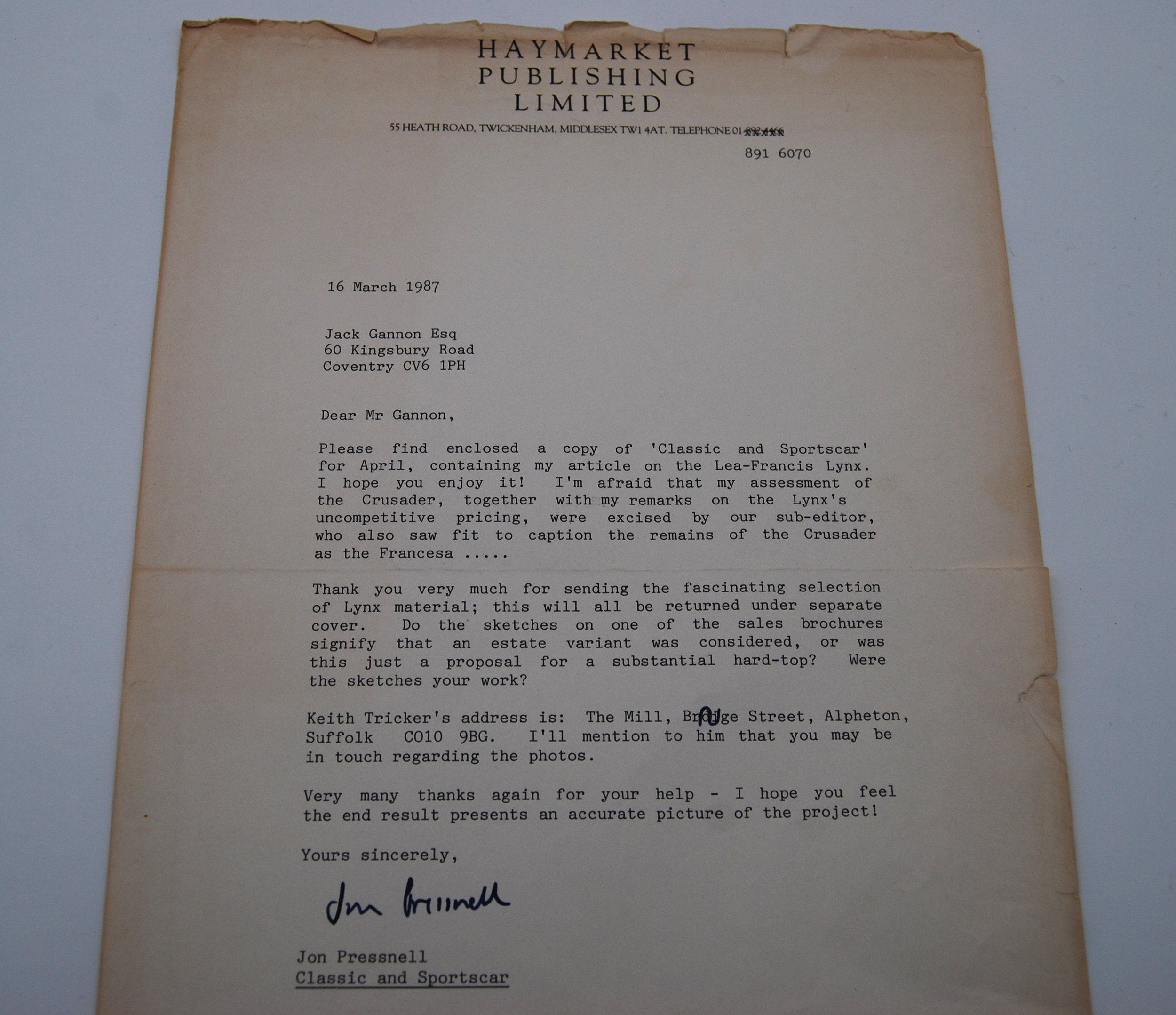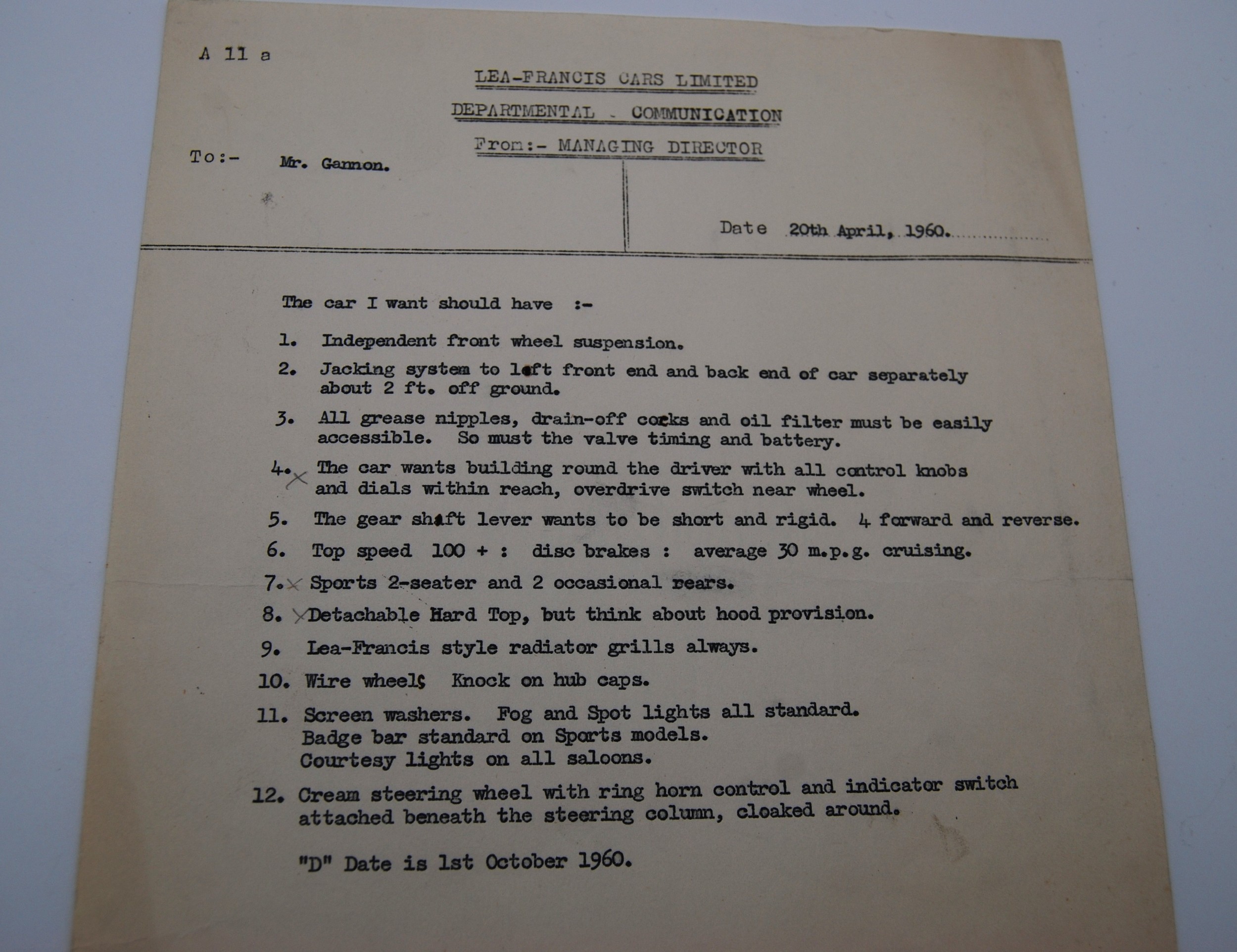 A number of promotional items for the Lea Francis Lynx Model of 1960, comprising brochure, letters, eleven Blue Prints, six other items.