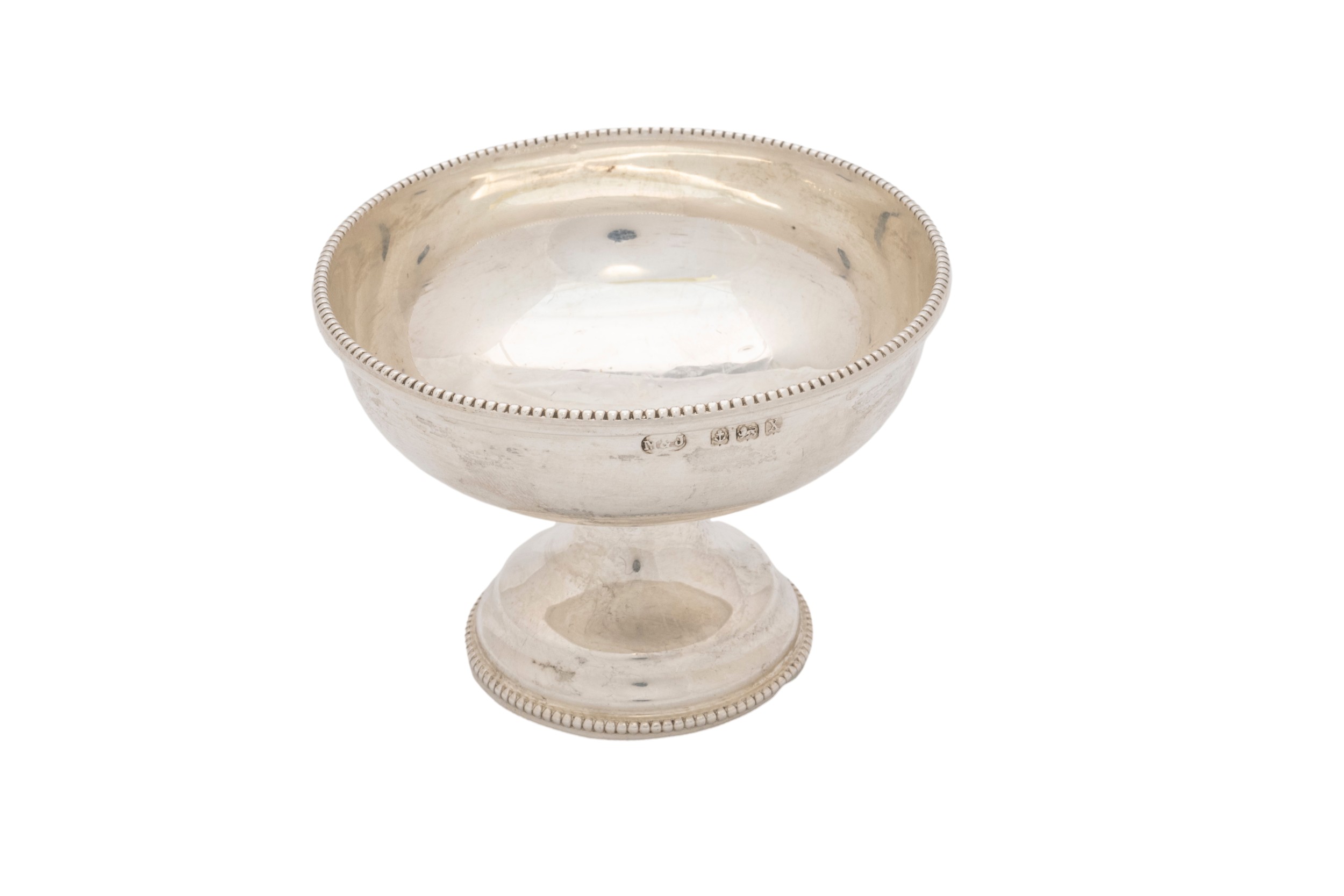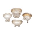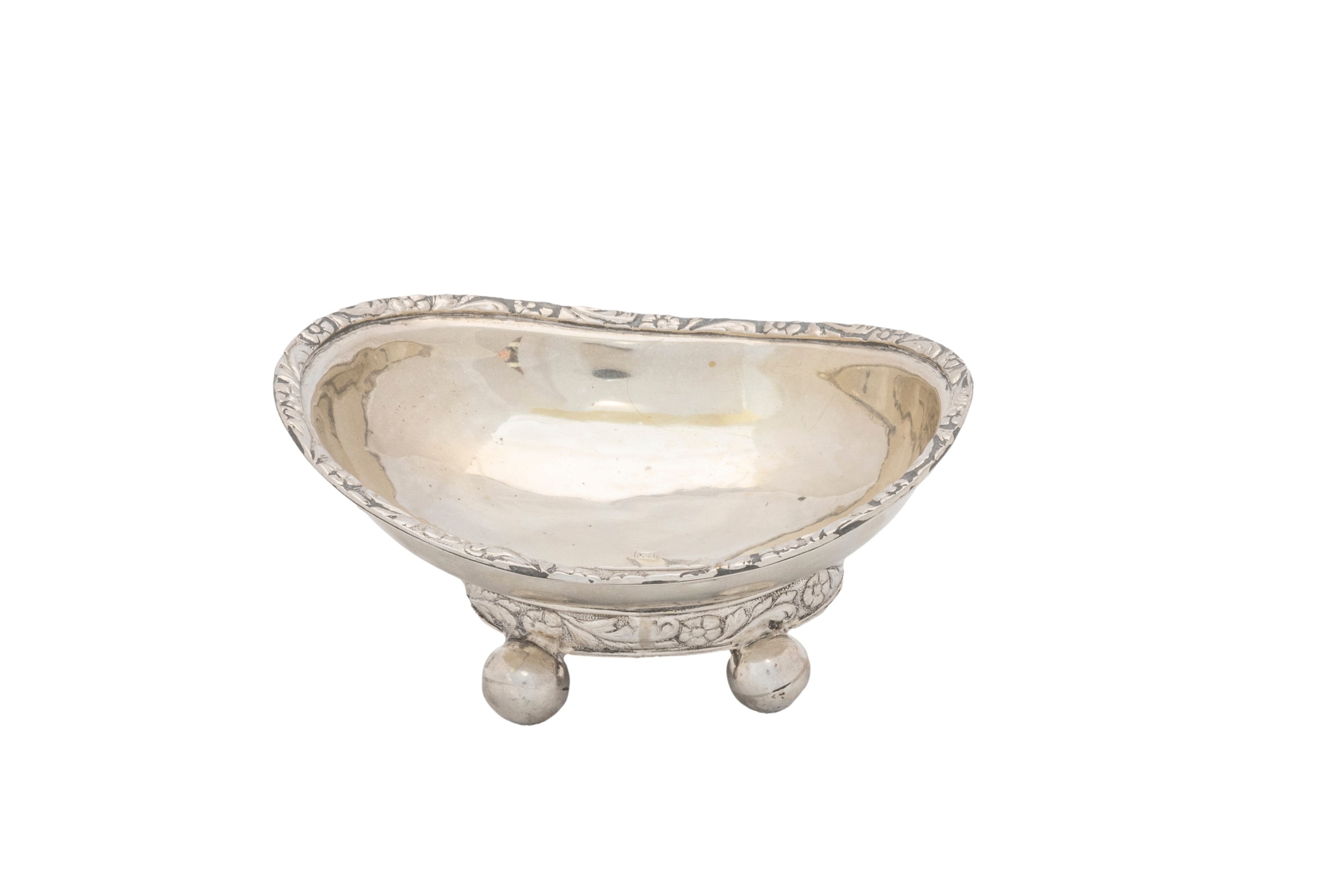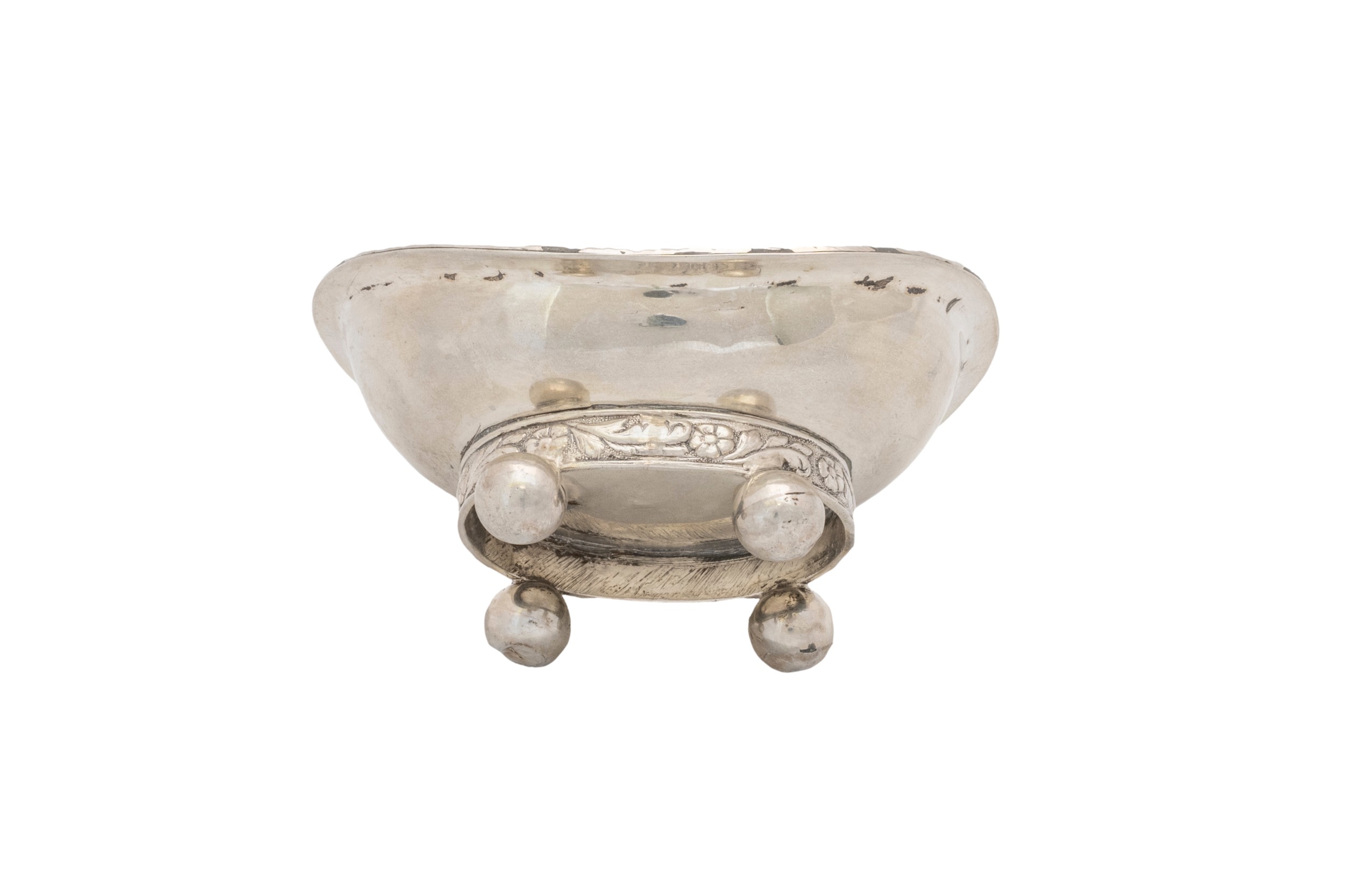 Birmingham, 1932, a small silver bowl with raised feet, an 800 standard silver salt and a small loaded silver bowl, approx. 240g weighable silver.