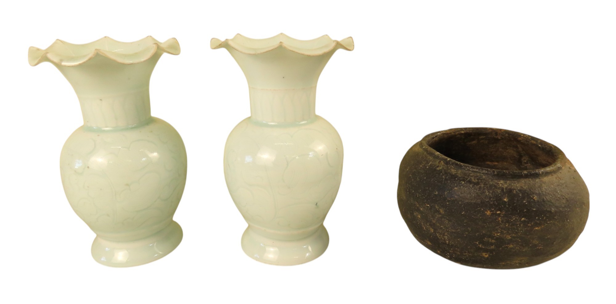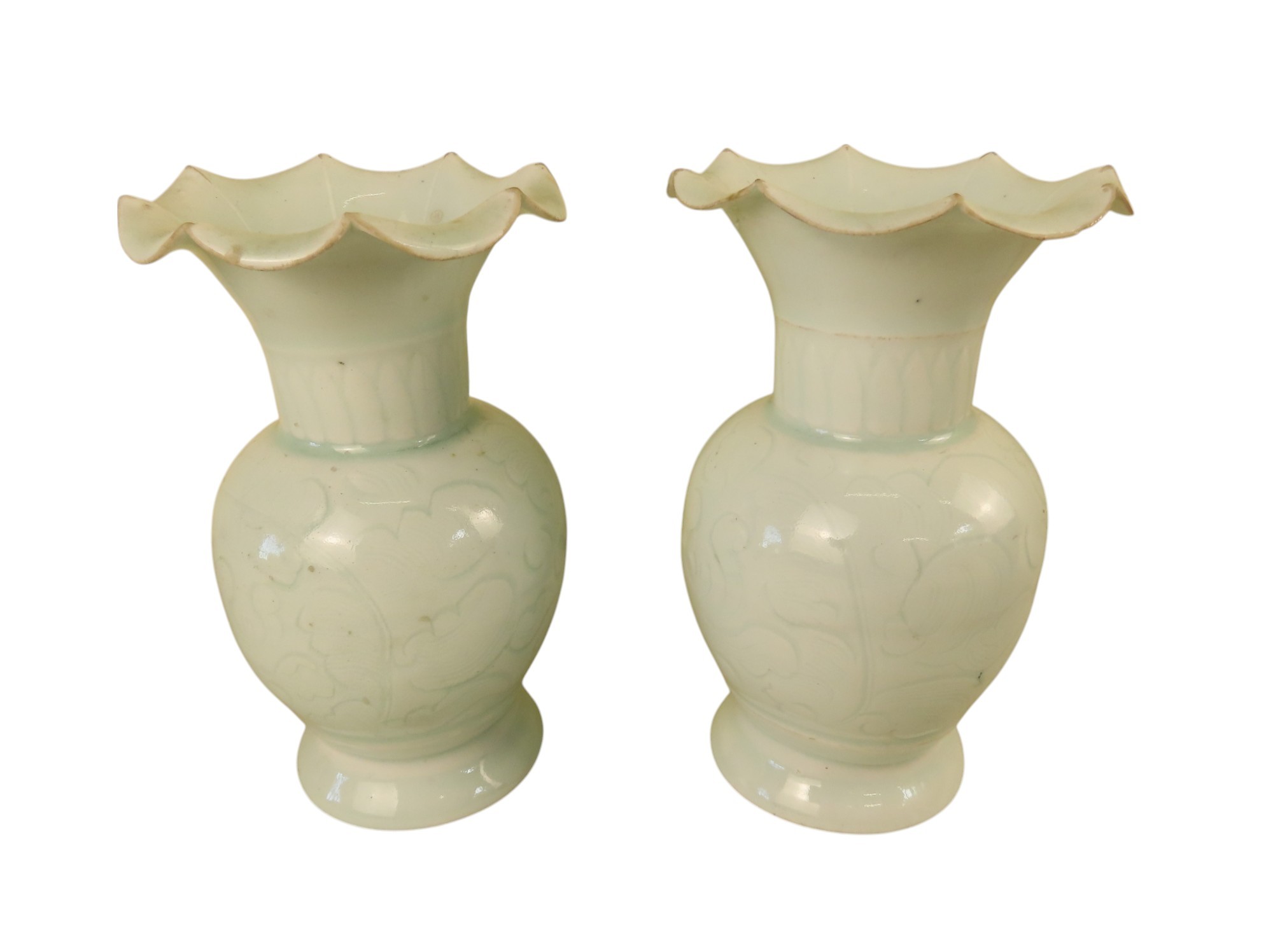 A PAIR OF QINGBAI 'FLORAL' VASES