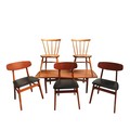 together with three vinyl seat dining chairs