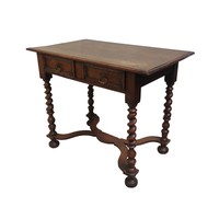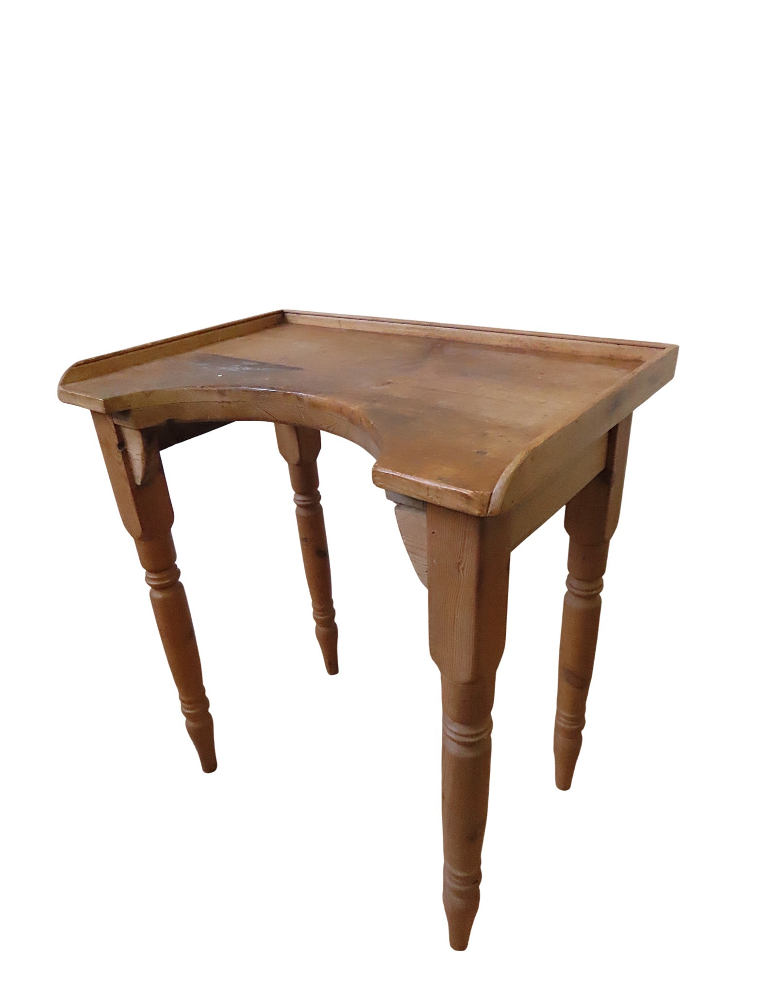 rectangular top with three quarter gallery and concave edge, raised on ring turned legs