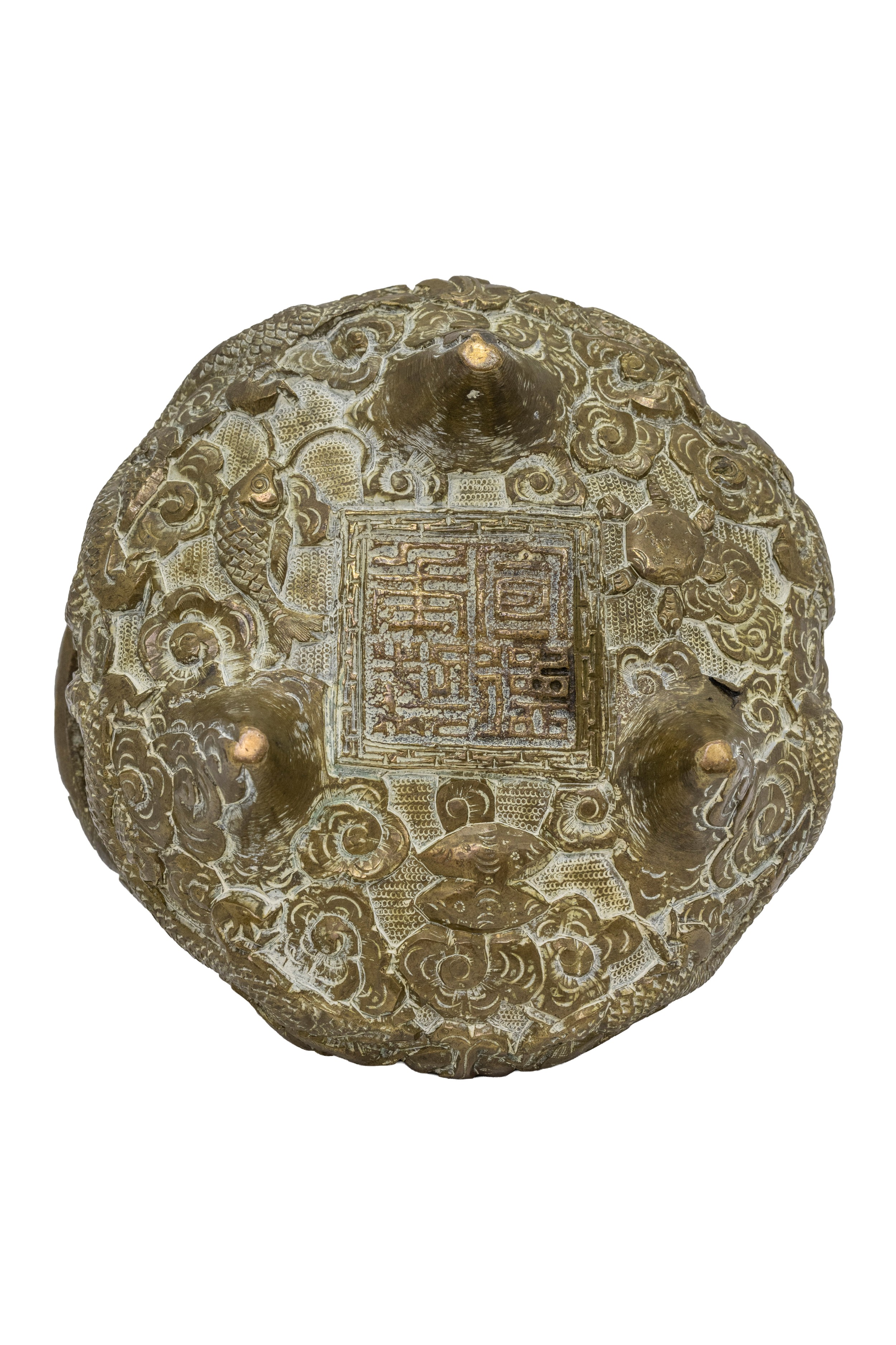 A LARGE CHINESE BRONZE TRIPOD CENSER AND COVER