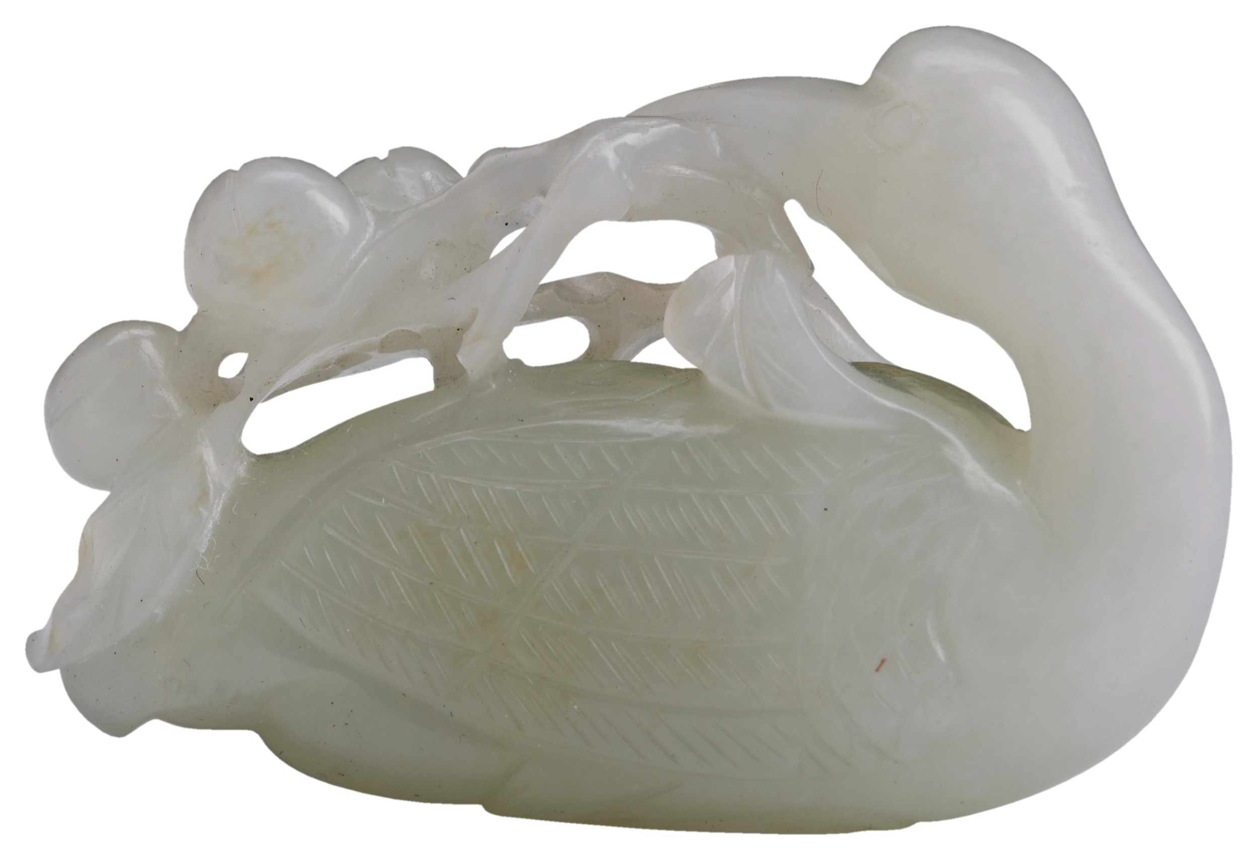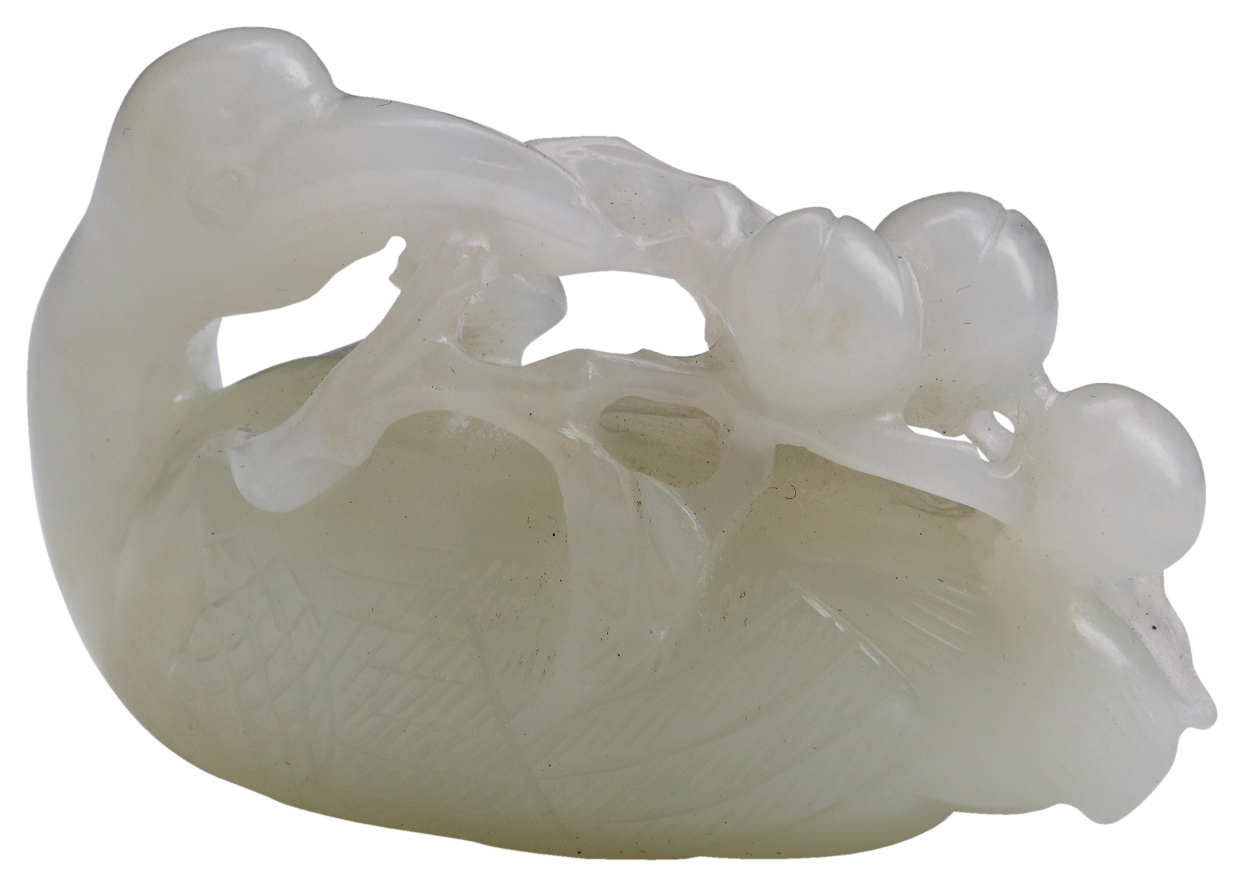 A PALE CELADON JADE CARVING OF A CRANE