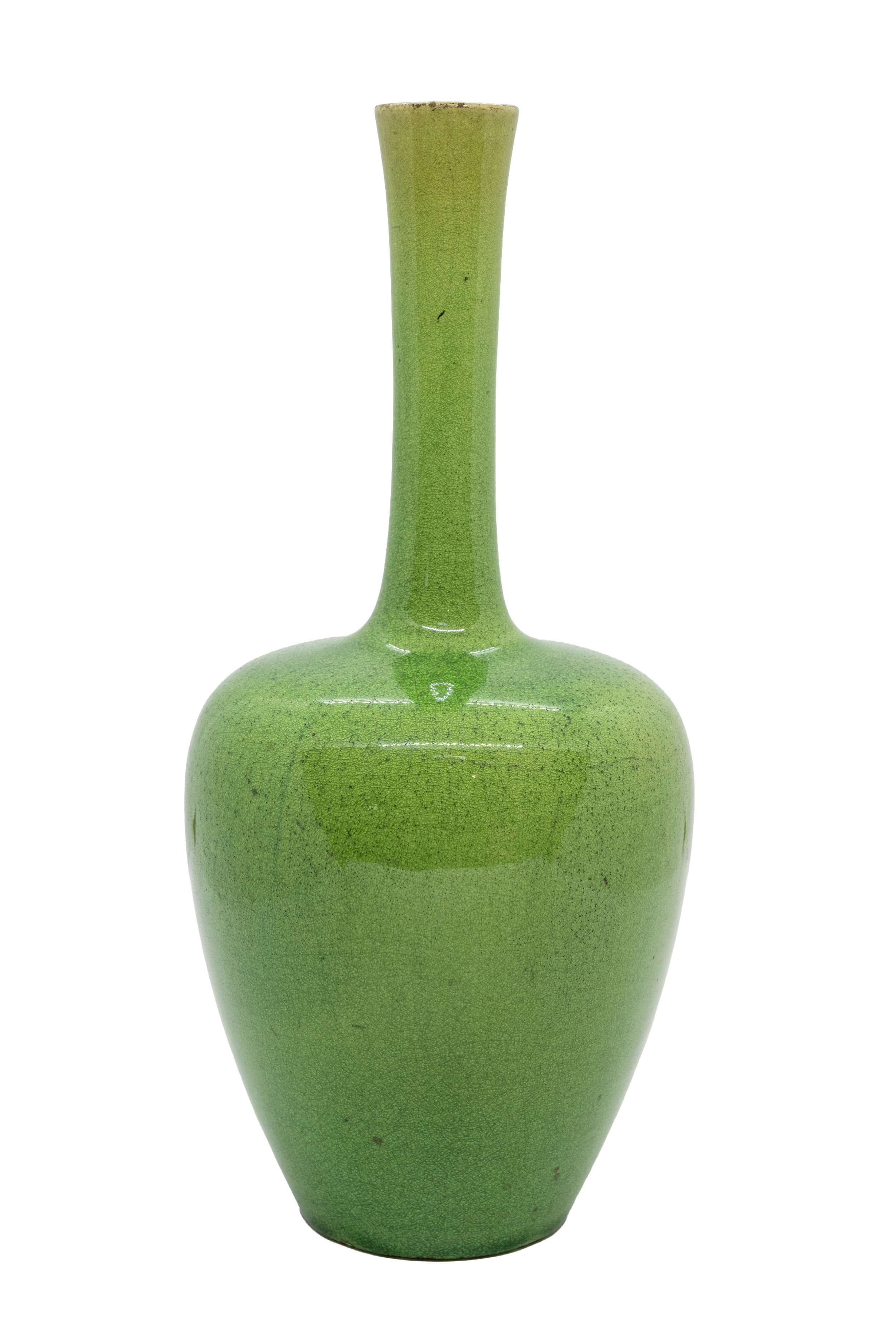 AN APPLE-GREEN CRACKLE GLAZE BOTTLE VASE