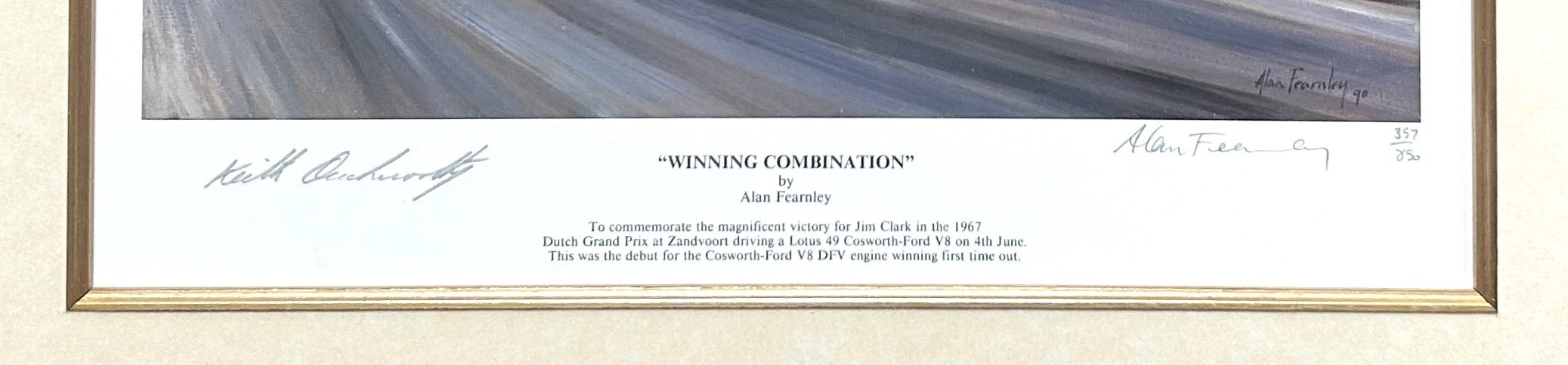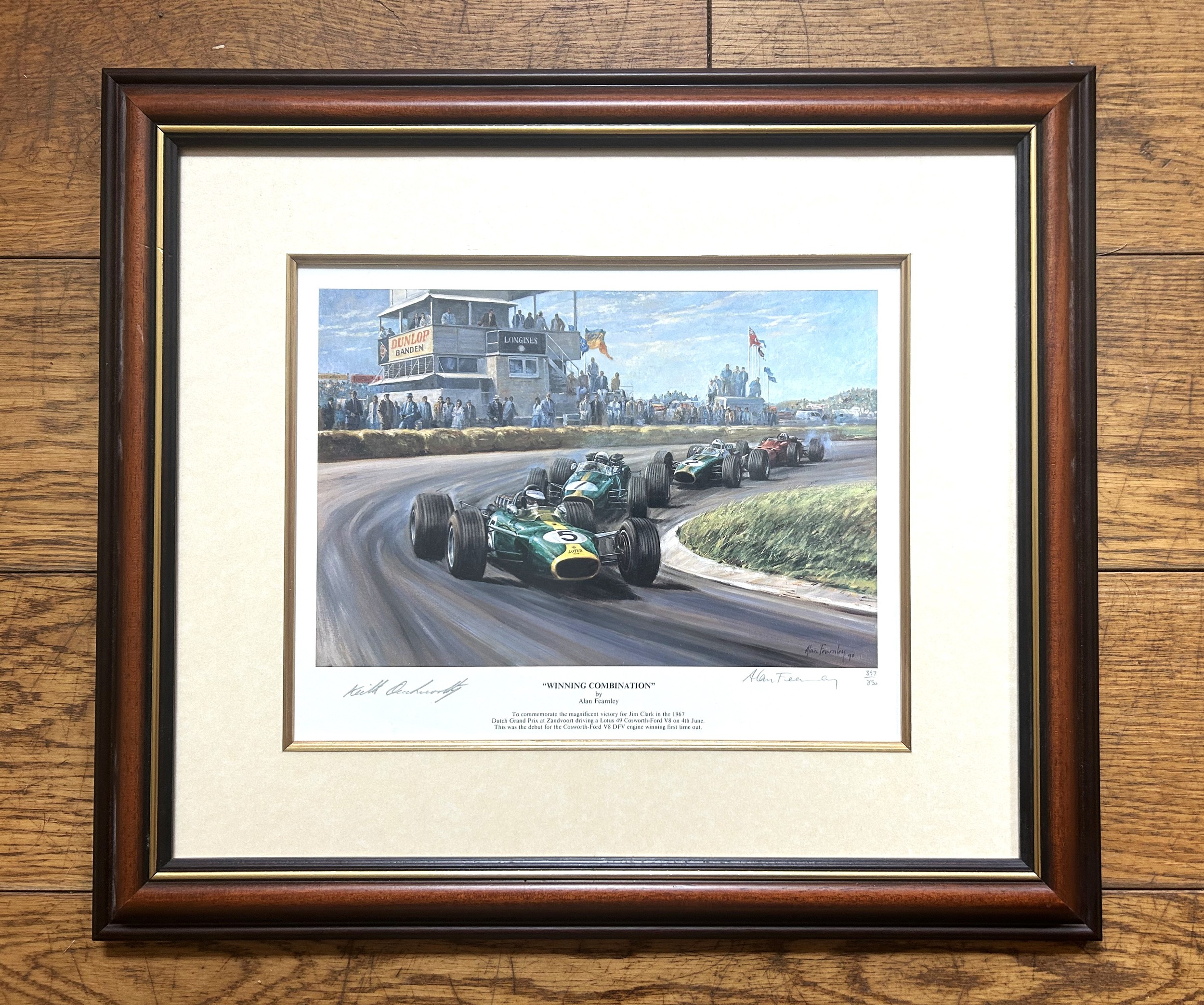 'Winning Combination' limited edition print by Alan Fearnley. Commemorating Jim Clark's win in the 1967 Dutch Grand Prix.