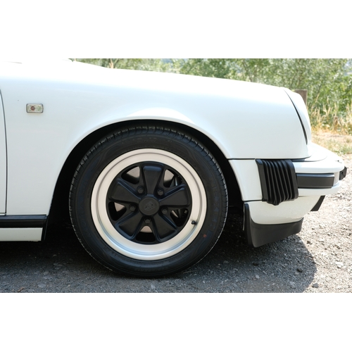 Presented in Grand Prix White over a black leather and cloth interior, this 1984 Porsche 911 Carrera 3.2 Cabriolet is a superb example of the first year of production for this collectible, impact bumper-era 911. With its striking colour combination, factory spoilers, and Fuchs alloys, this example remains true to its era and specification.