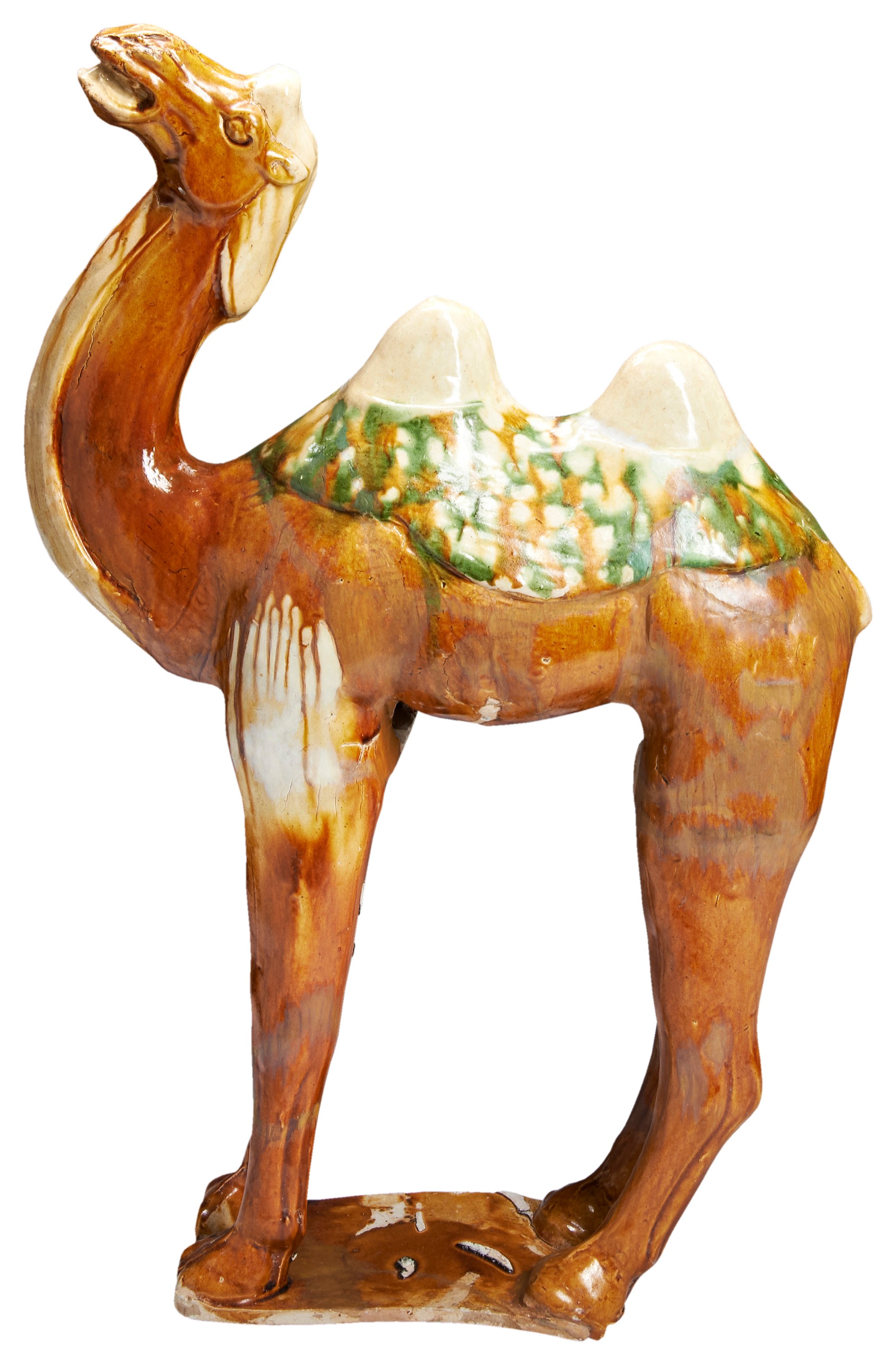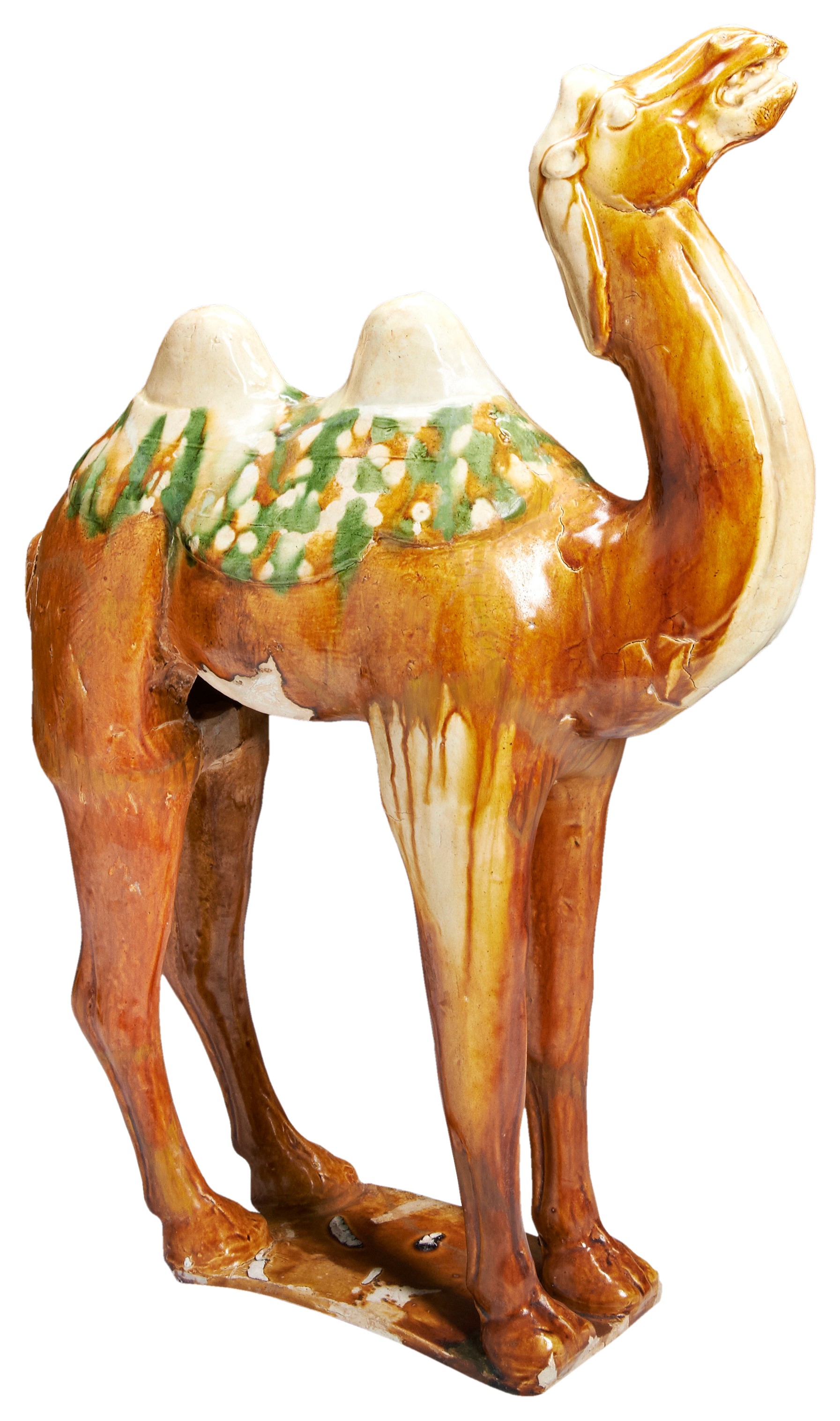 A LARGE SANCAI-GLAZED POTTERY BACTRIAN CAMEL