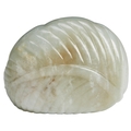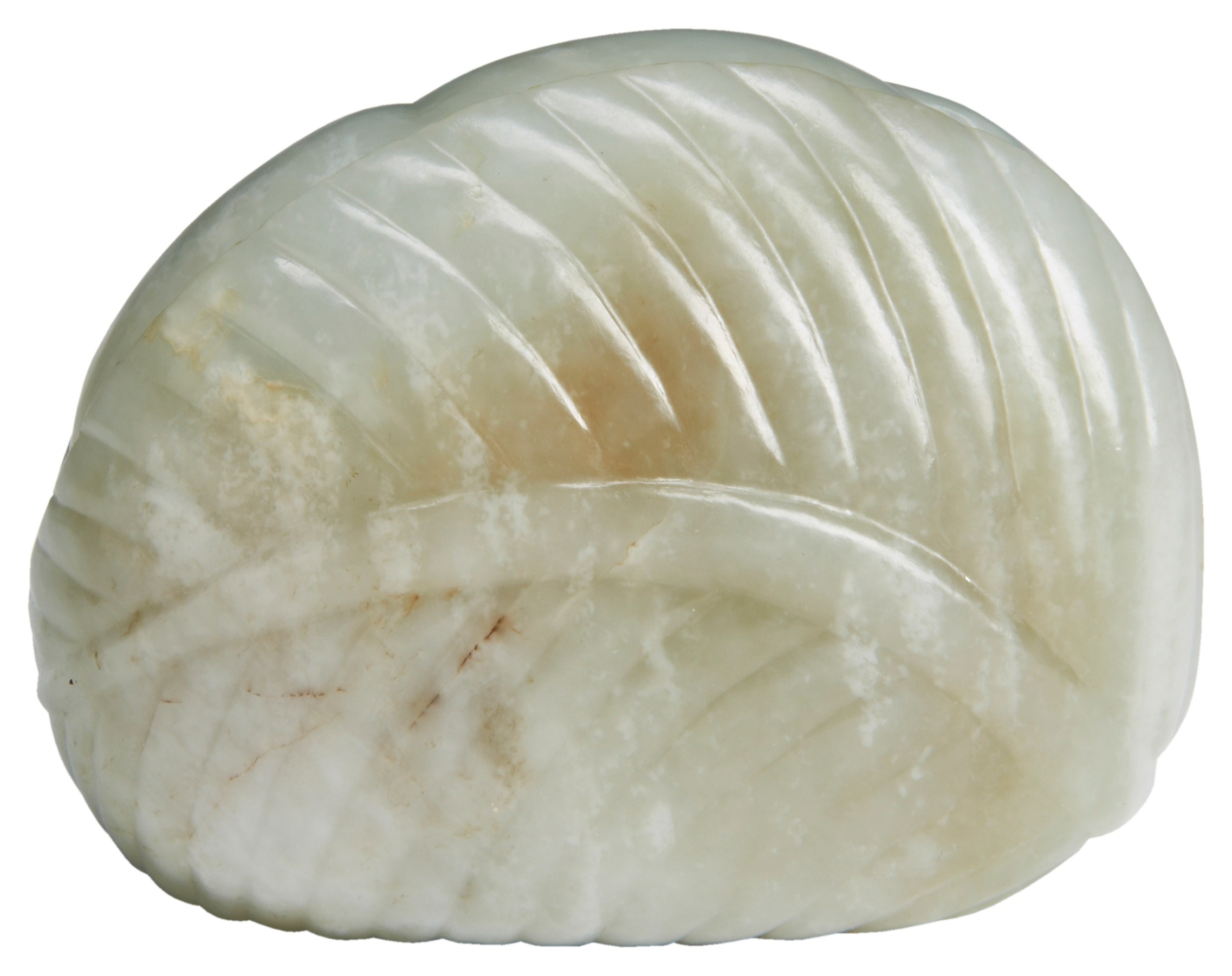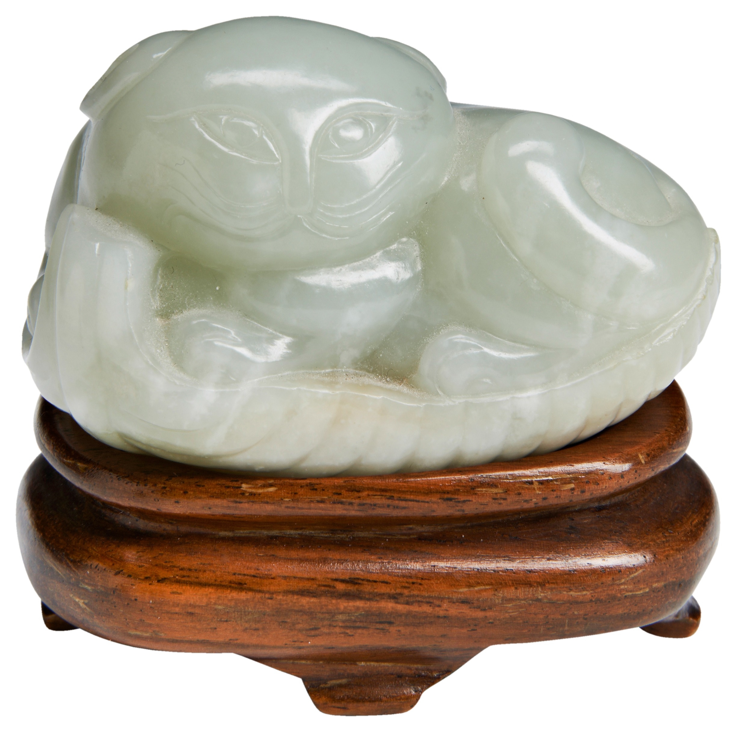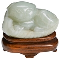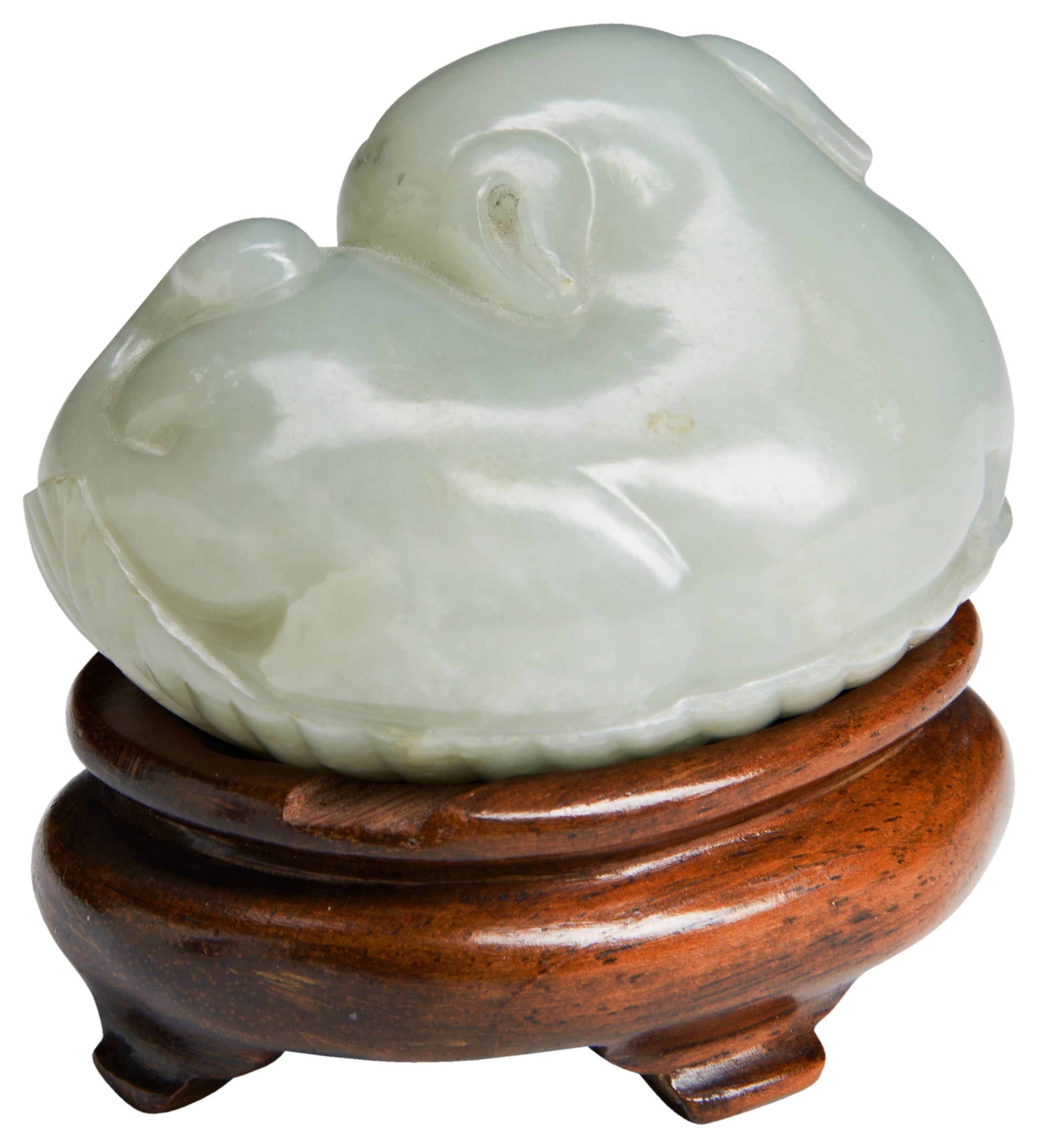 modelled recumbent resting on a lotus leaf, with a fitted hardwood stand