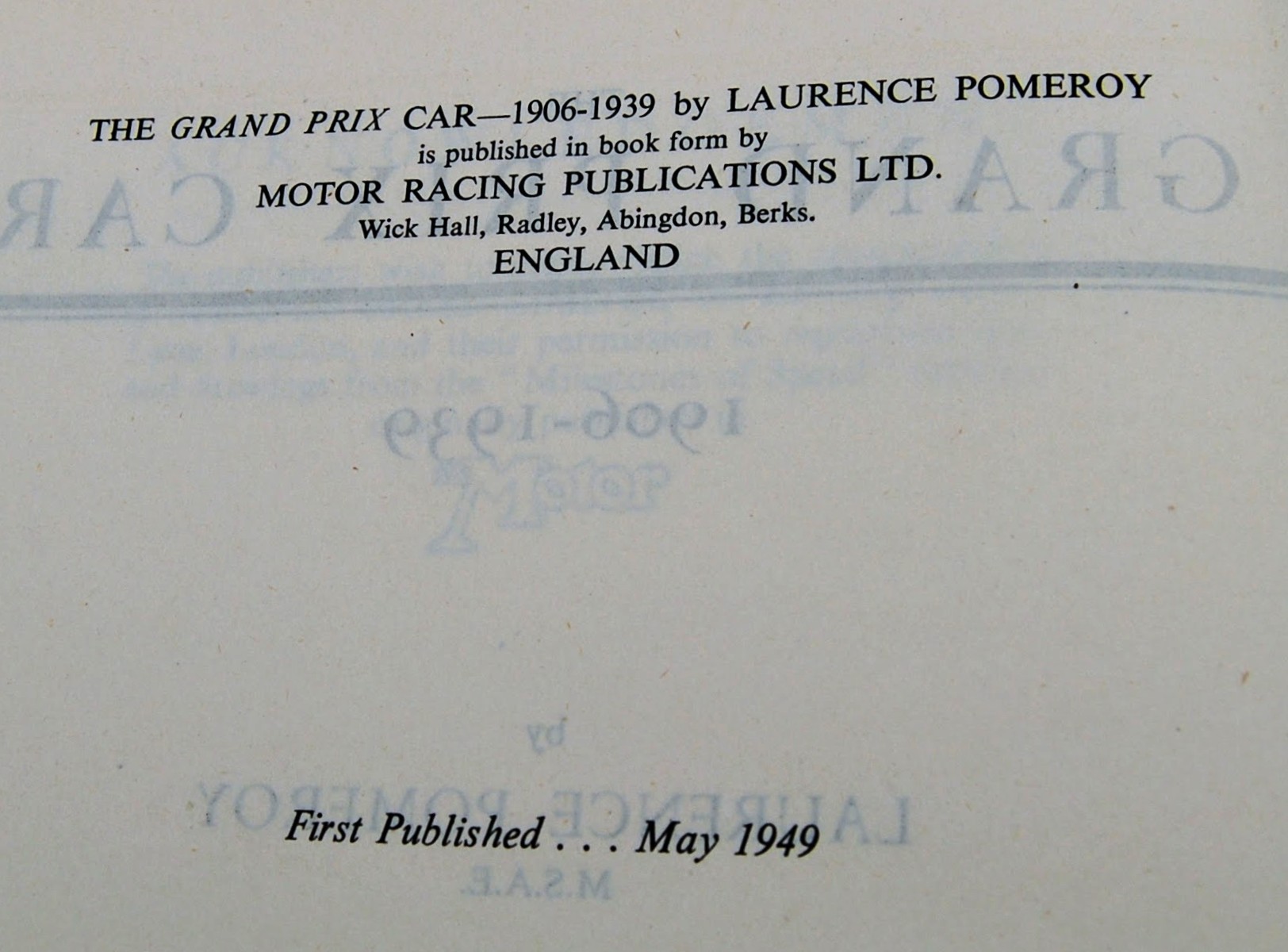 Grand Prix Car 1906-1939 by Laurence Pomeroy