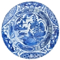 青花花鸟克拉克纹盘 万历 1537-1619