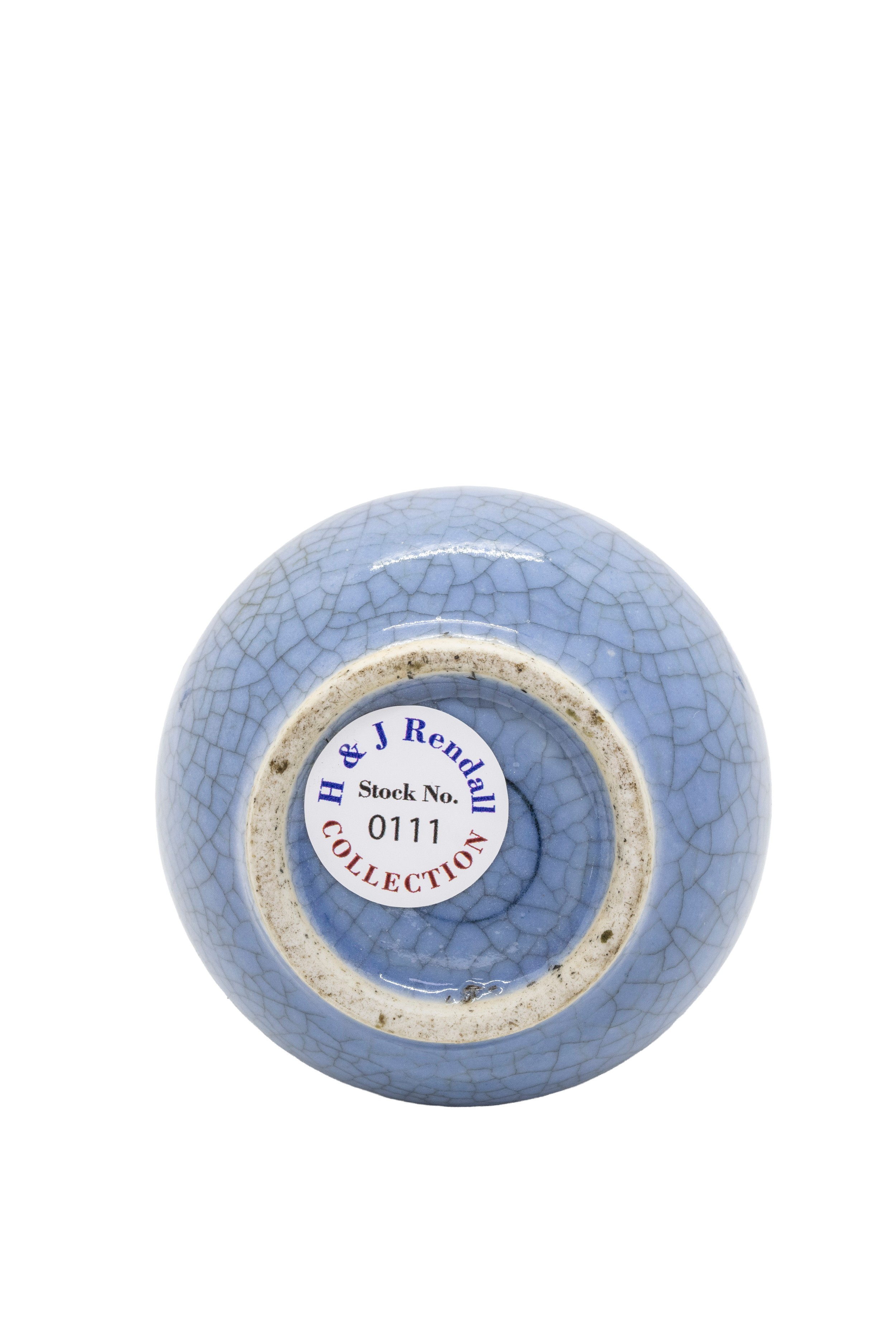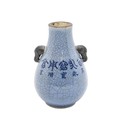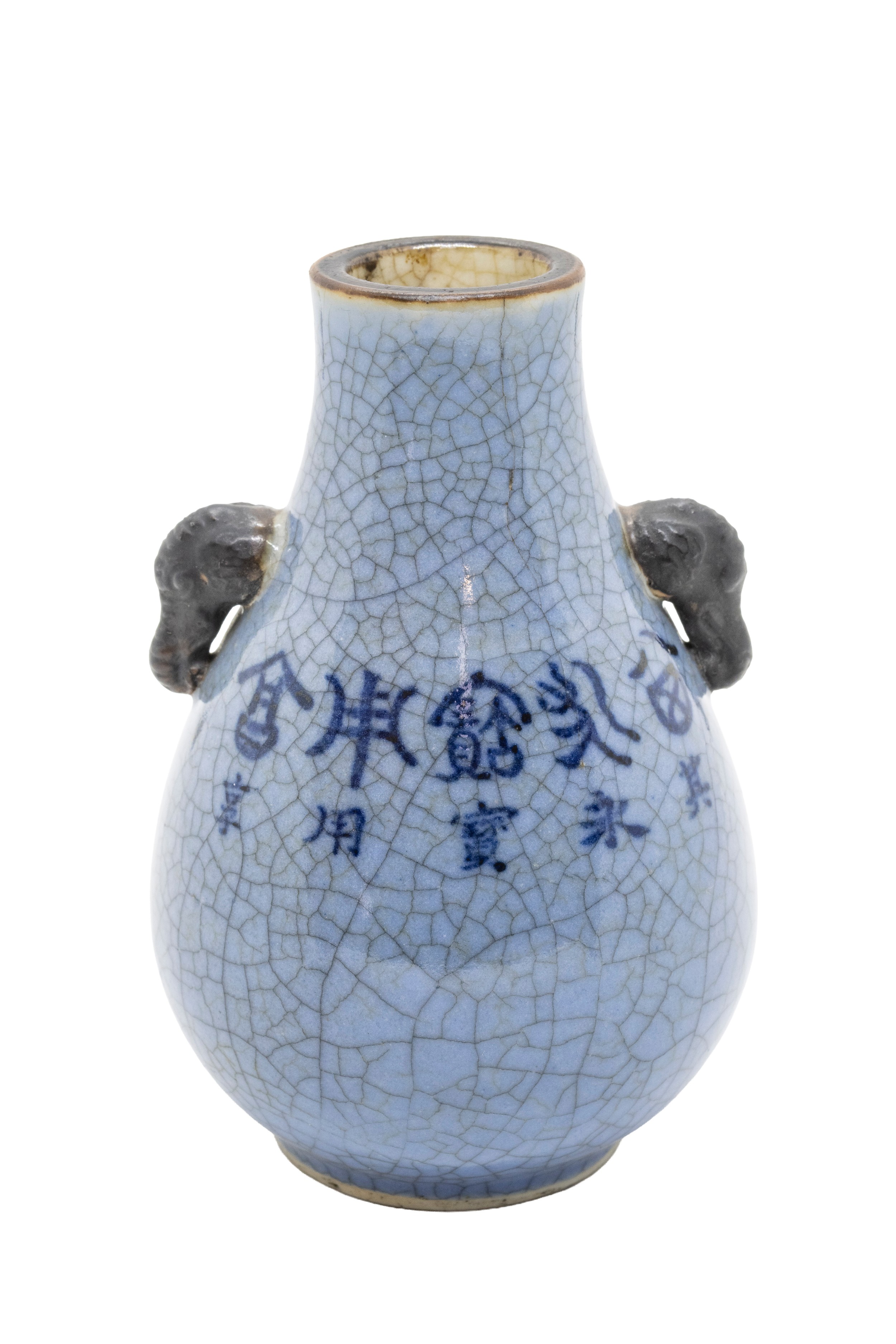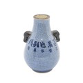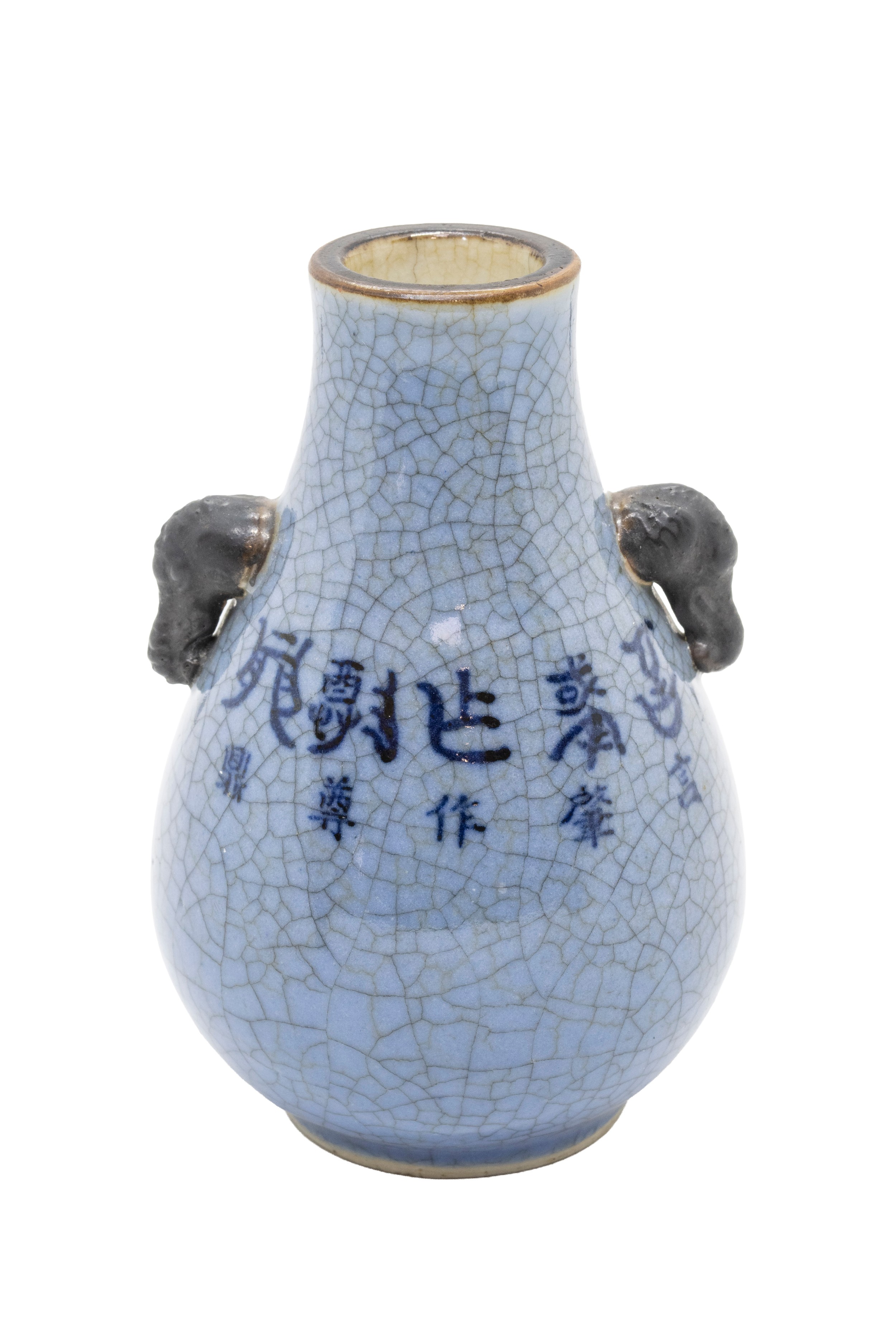 A SMALL LAVENDER-CRACKLE-GLAZED INSCRIBED VASE, HU