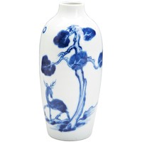 painted in tones of underglaze blue with panels of figures and stylised plants