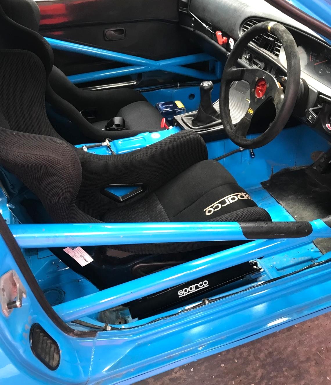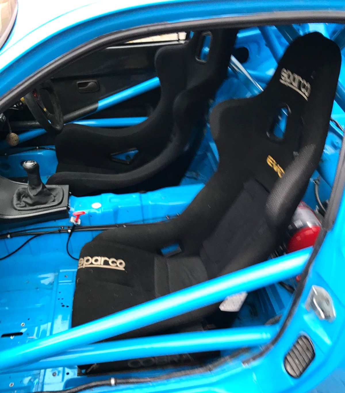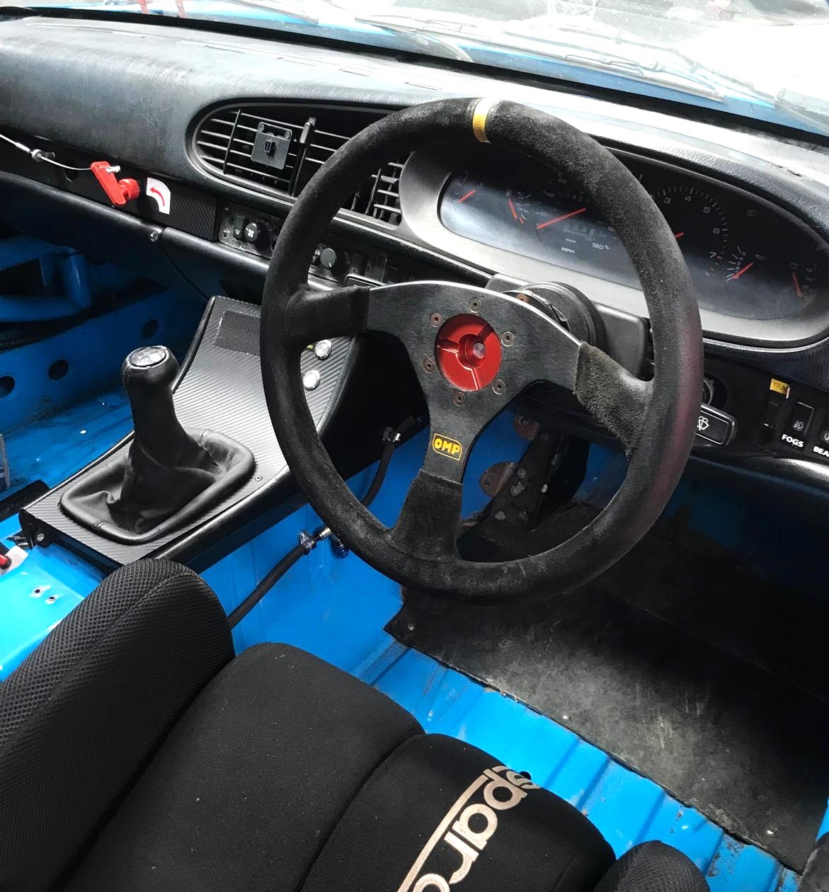 This (C16) Right Hand Drive 968 Club Sport was delivered via the UK Porsche dealer network in February 1994, finished in the now desirable shade of Riviera Blue. The car was later to be stripped of interior fittings and converted for pure track use. A Mater Motorsport cage was installed (similar to that adopted in the 968 turbo), with a Kaaz differential feeding power to the rear wheels. Handling is improved with the fitting of adjustable gas shocks, stopping is taken care of by 993 Turbo discs and Pagid 29 pads. The interior is fitted with two lightweight race seats, a Krontec removable steering wheel, and new fire extinguisher. The chassis has been lightened with the fitting of fibreglass front wings, bonnet, lightweight rear window (the original 968 CS rear window and spoiler are included). In 2024 Porsche specialist Williams Crawford fitted a replacement water pump, thermostat, auxiliary drive belt, and front brake discs.