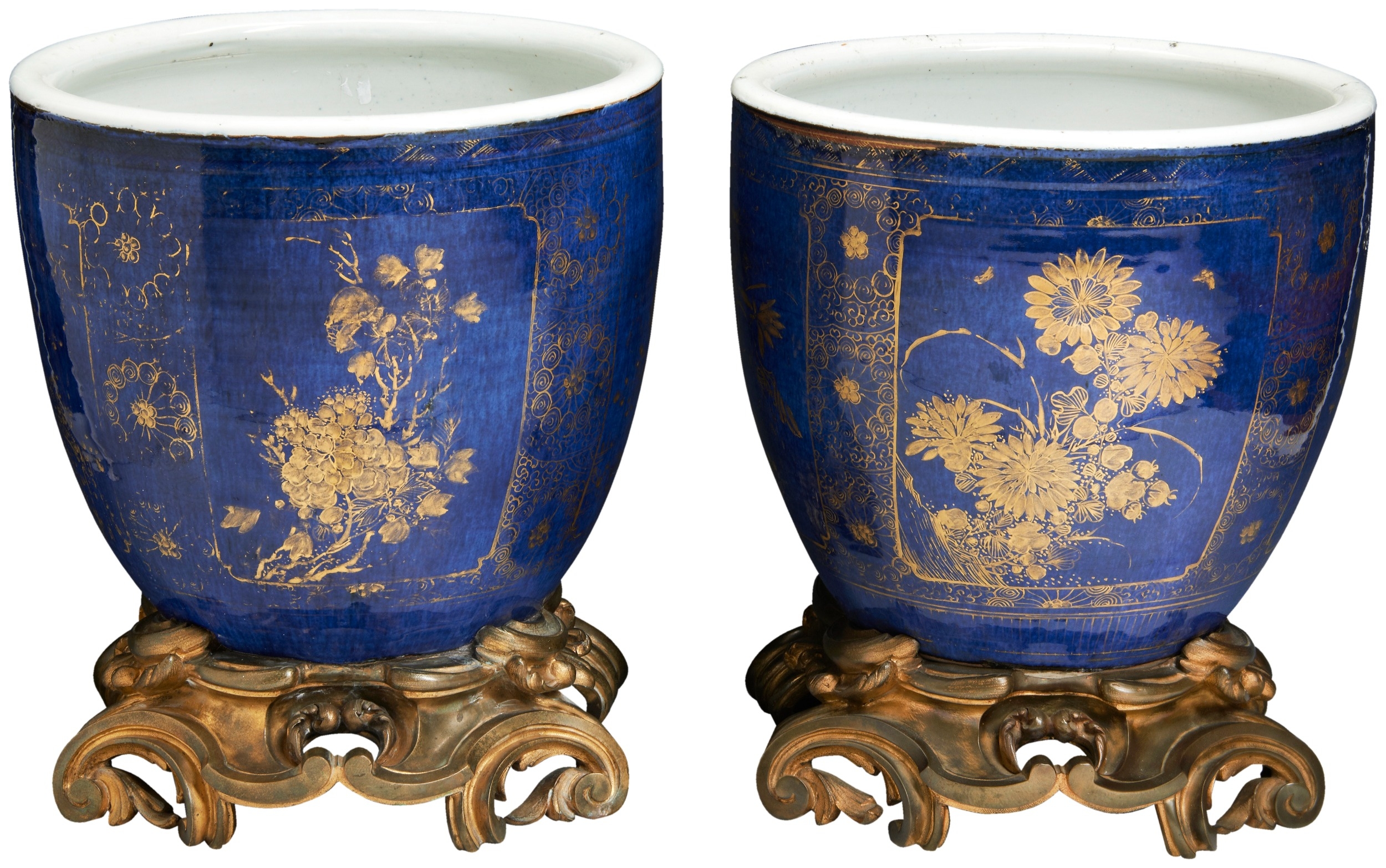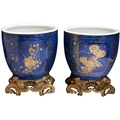 蓝釉描金花盆一对 康熙 1662-1722
