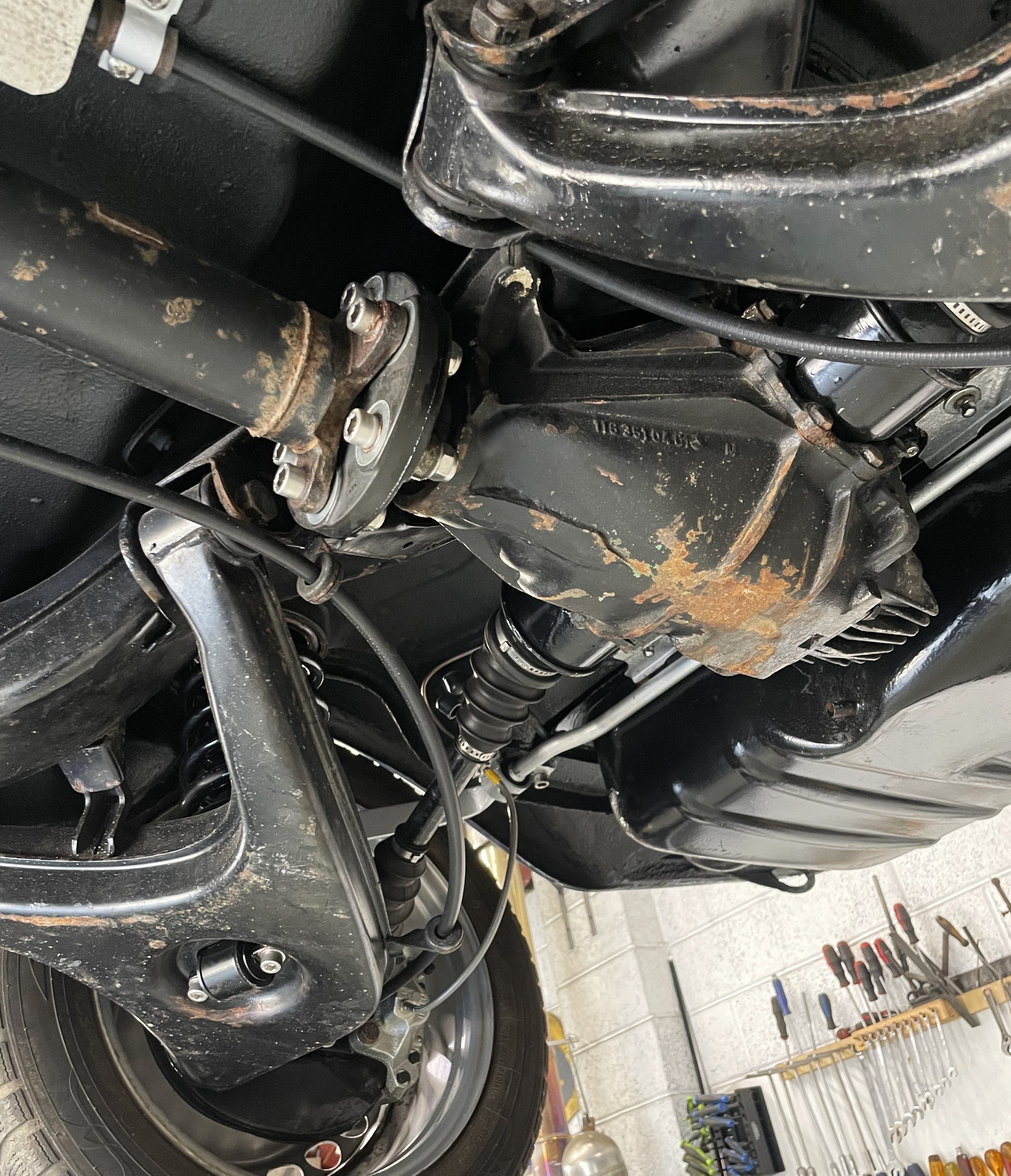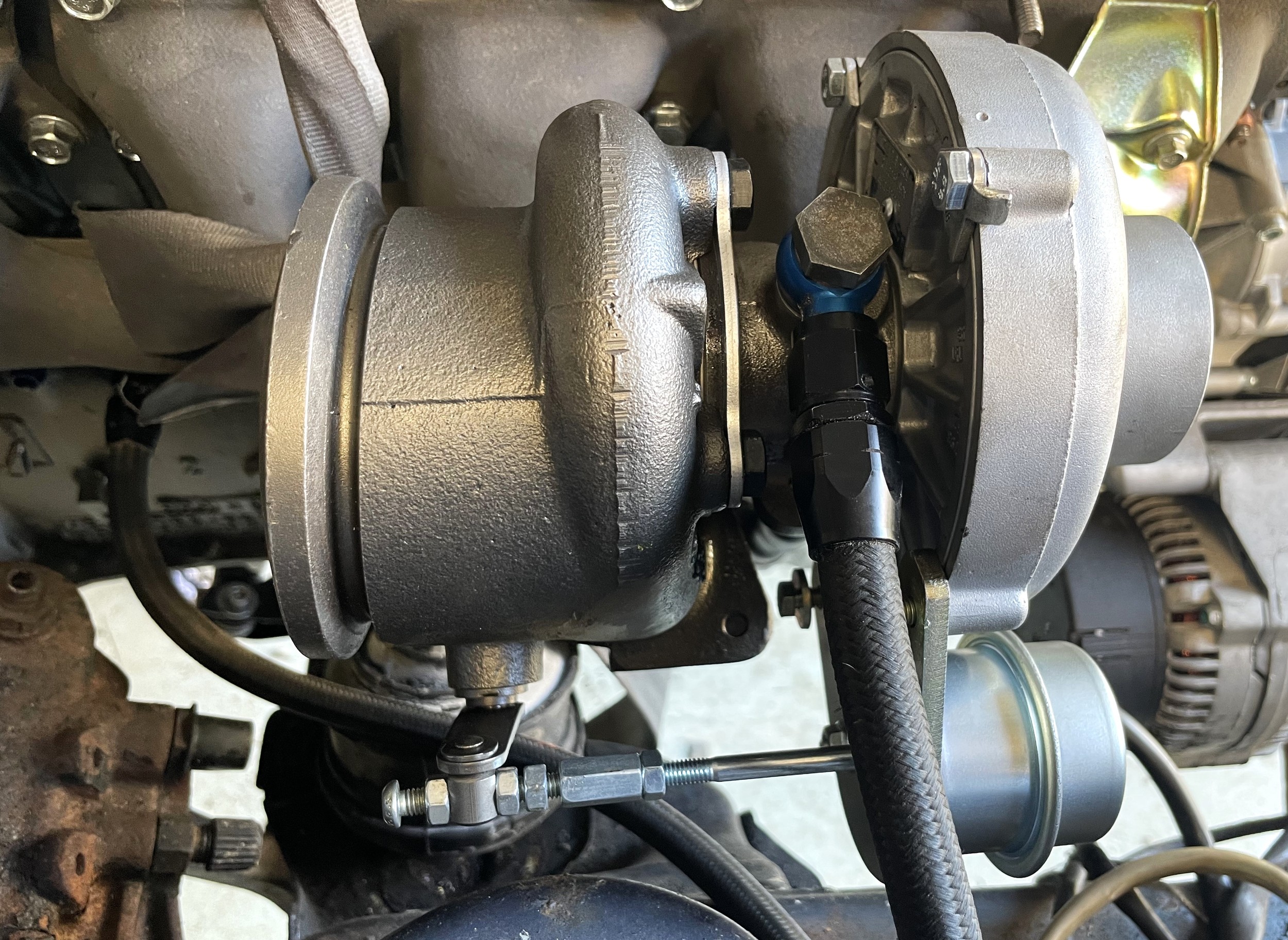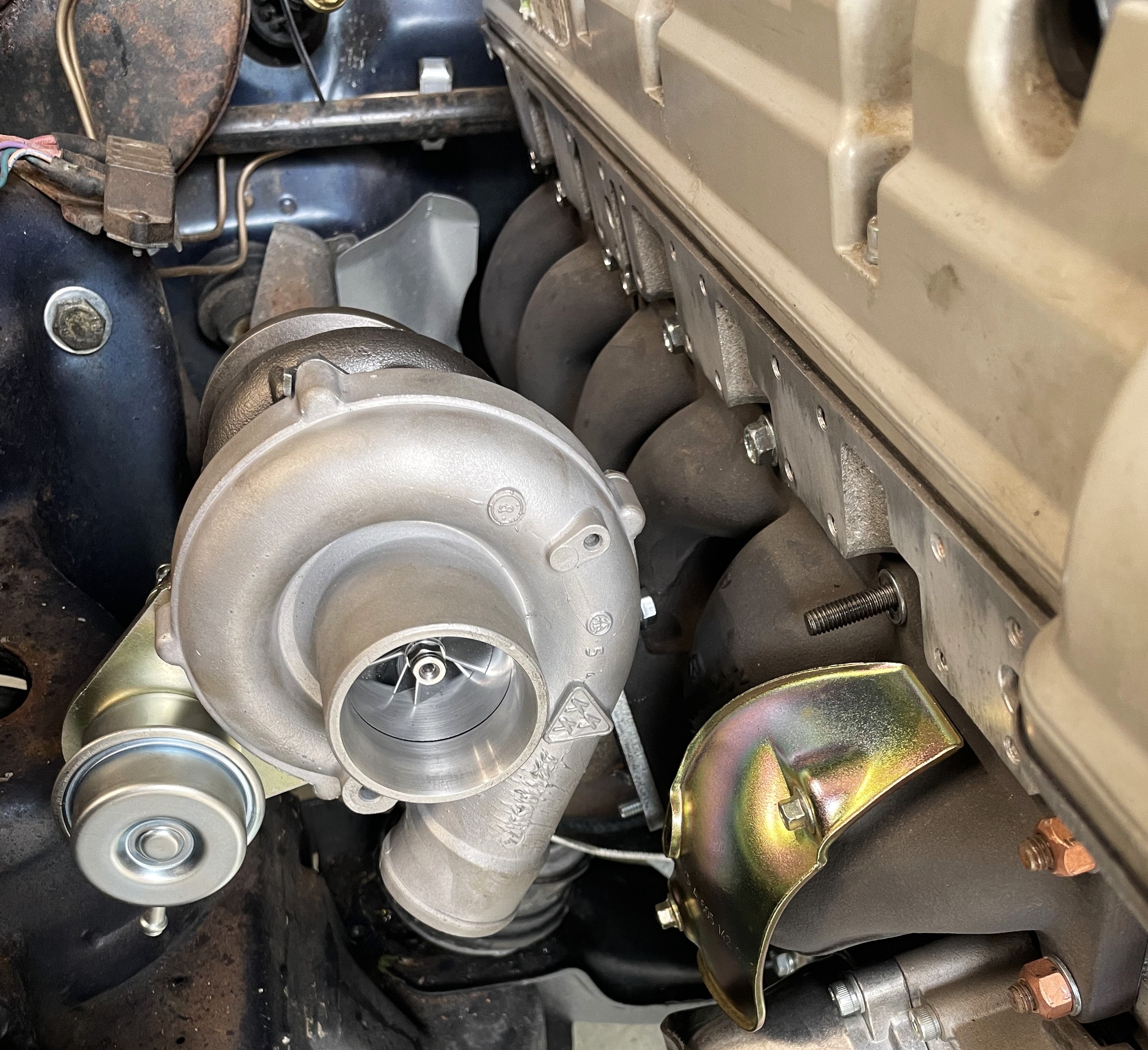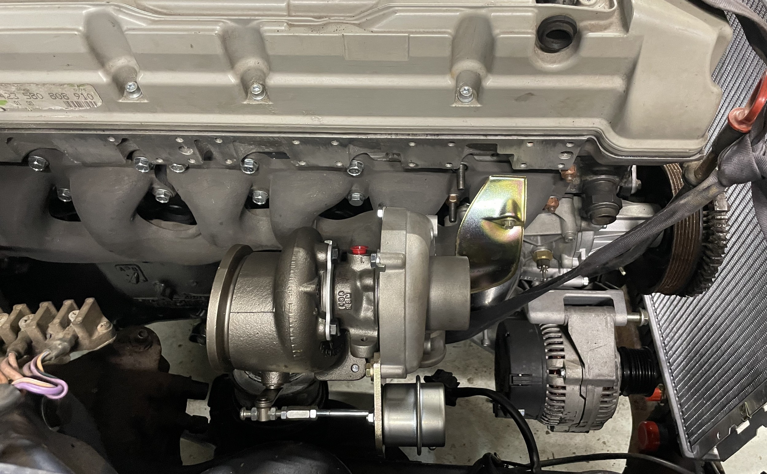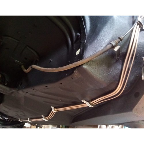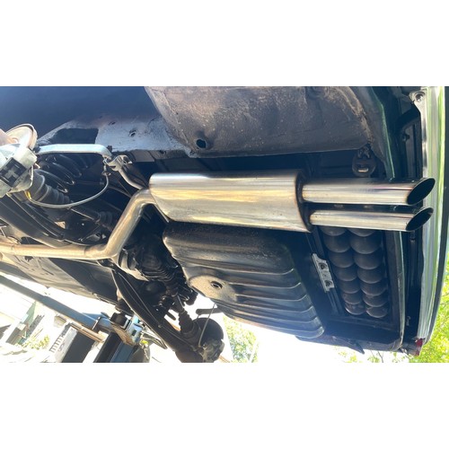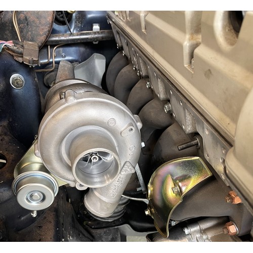 The original 2.8 litre petrol engine was removed and replaced with a 3 litre Mercedes-Benz OM 606 TD unit (with a low 70,000 miles recorded), mated to a 6-speed manual Mercedes-Benz gearbox, new flywheel and clutch. A custom-made stainless exhaust is fitted, as is an intercooler system with custom aluminium radiator and twin electric fans to keep things cool. Power and running is improved with a new 7.5 mm Dieselmeken pump and hybrid turbo, and all new ancillaries. All running gear was restored with new components such as springs, shock absorbers, and bushes. The braking has been improved with larger W126 front discs, and new lines. A replacement fuel tank has been fitted, as have new fuel lines. The original speedometer is fitted still, with a rare factory rev. counter, also a Speedhut GPS unit and Sony double DIN Bluetooth Apple Play stereo. With a 500SL rear axle and high ratio differential, the TE is geared for a top speed of 140 mph, with 70mph at a comfortable 2,000 rpm.